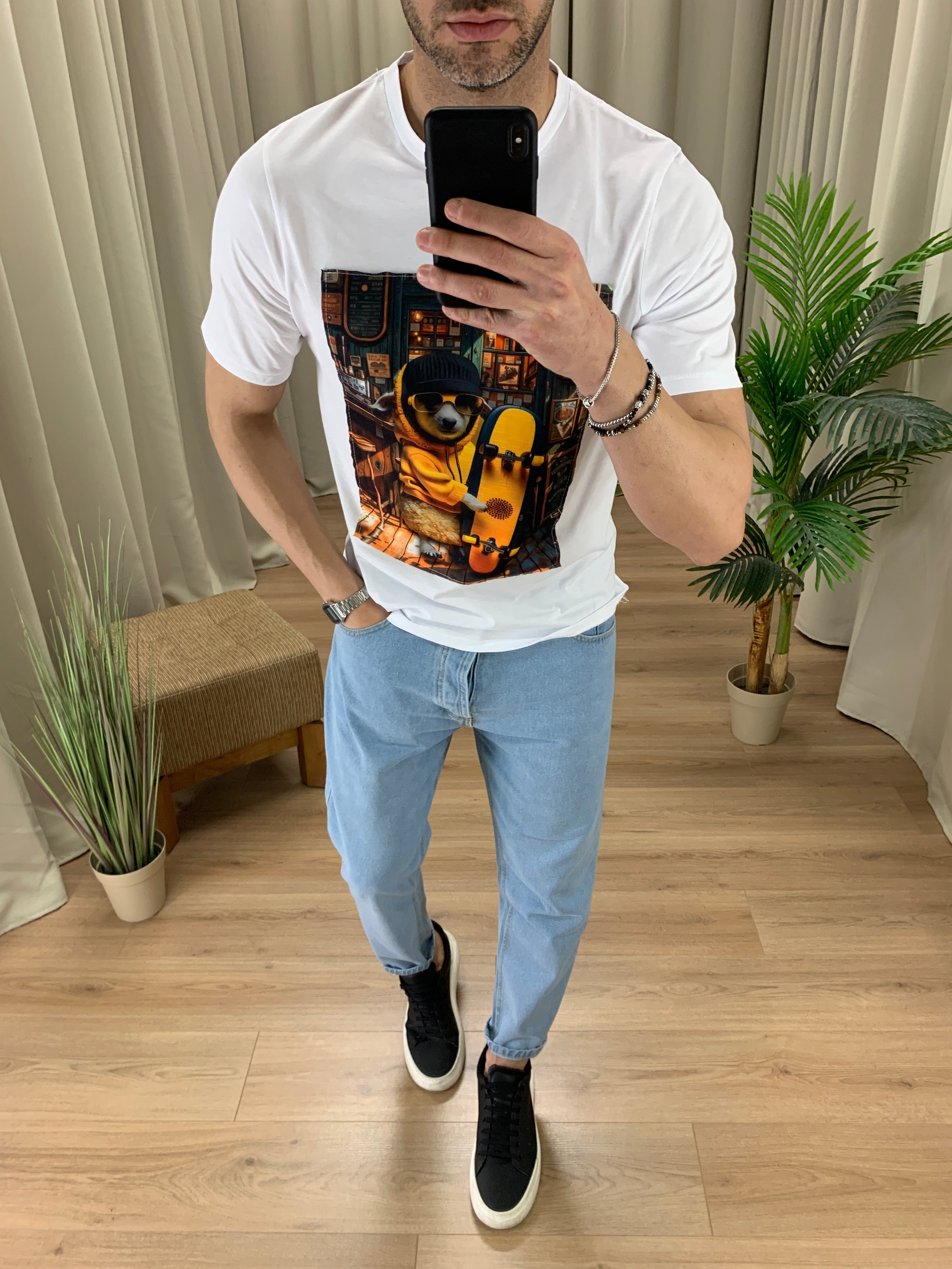 T-shirt Orsetto Effe con Stampa col. Bianco