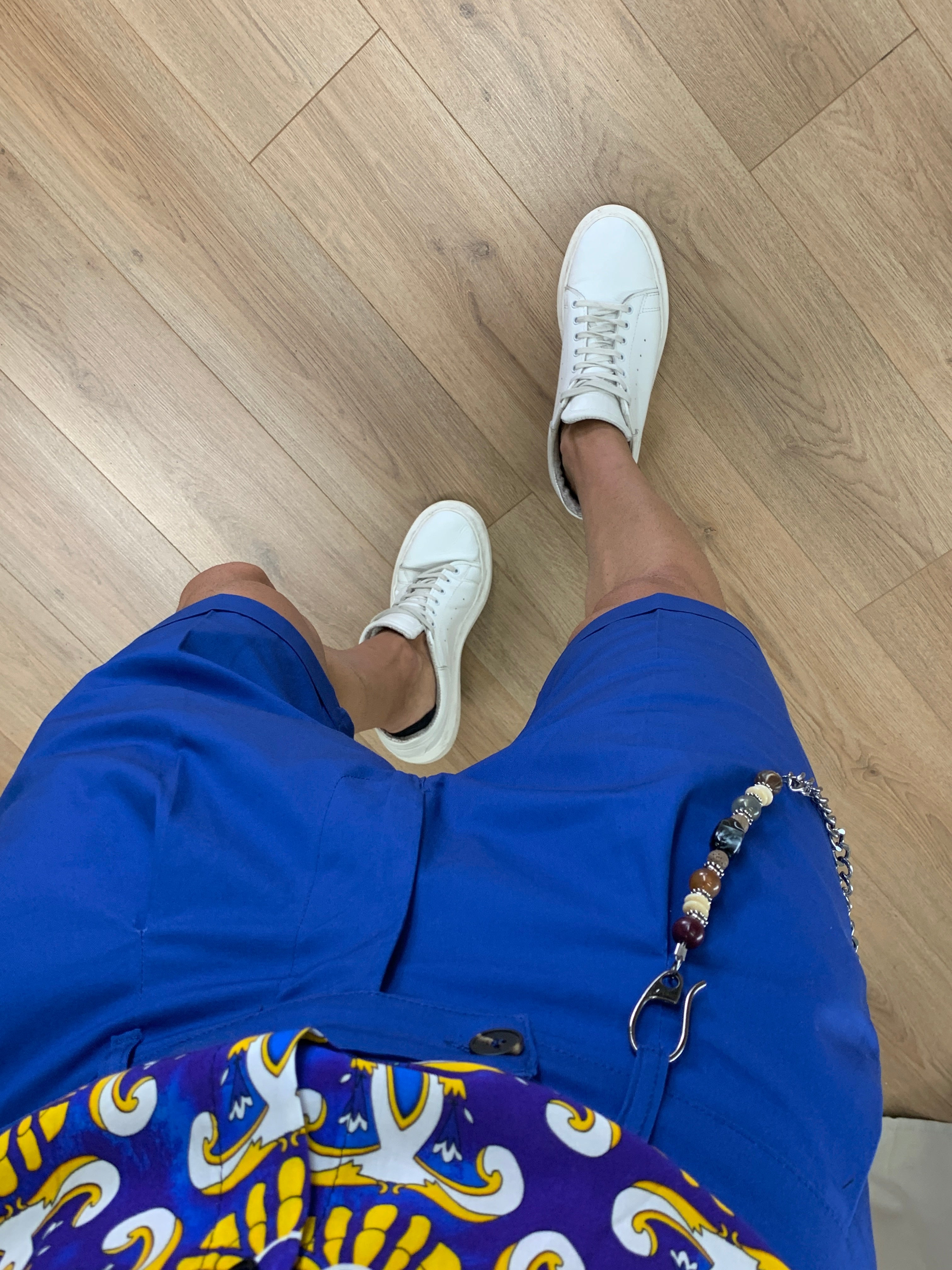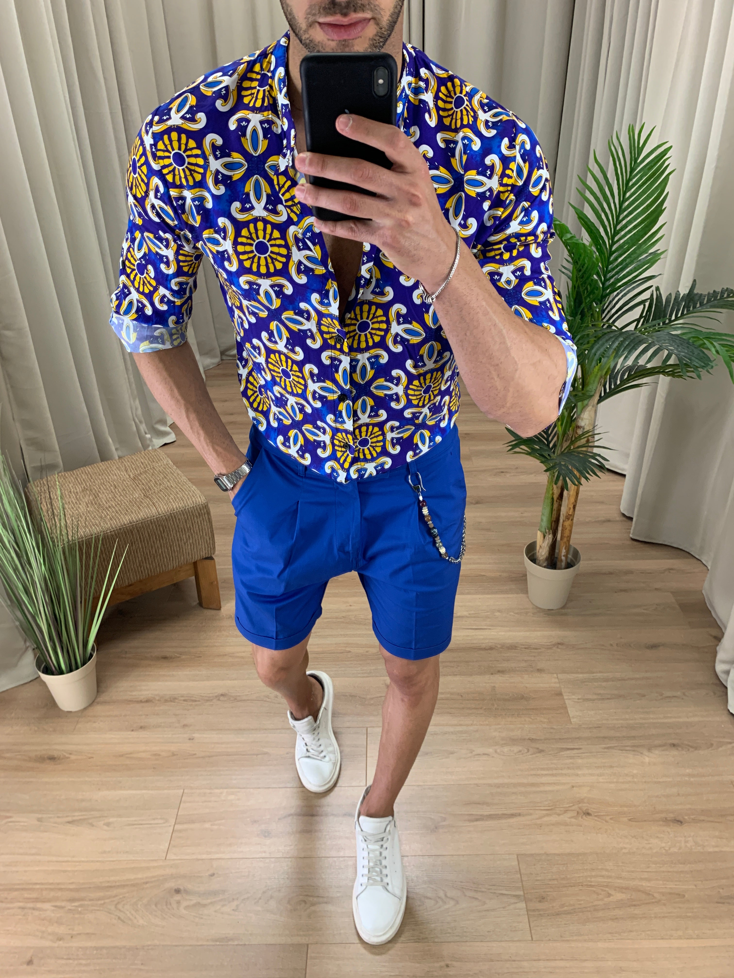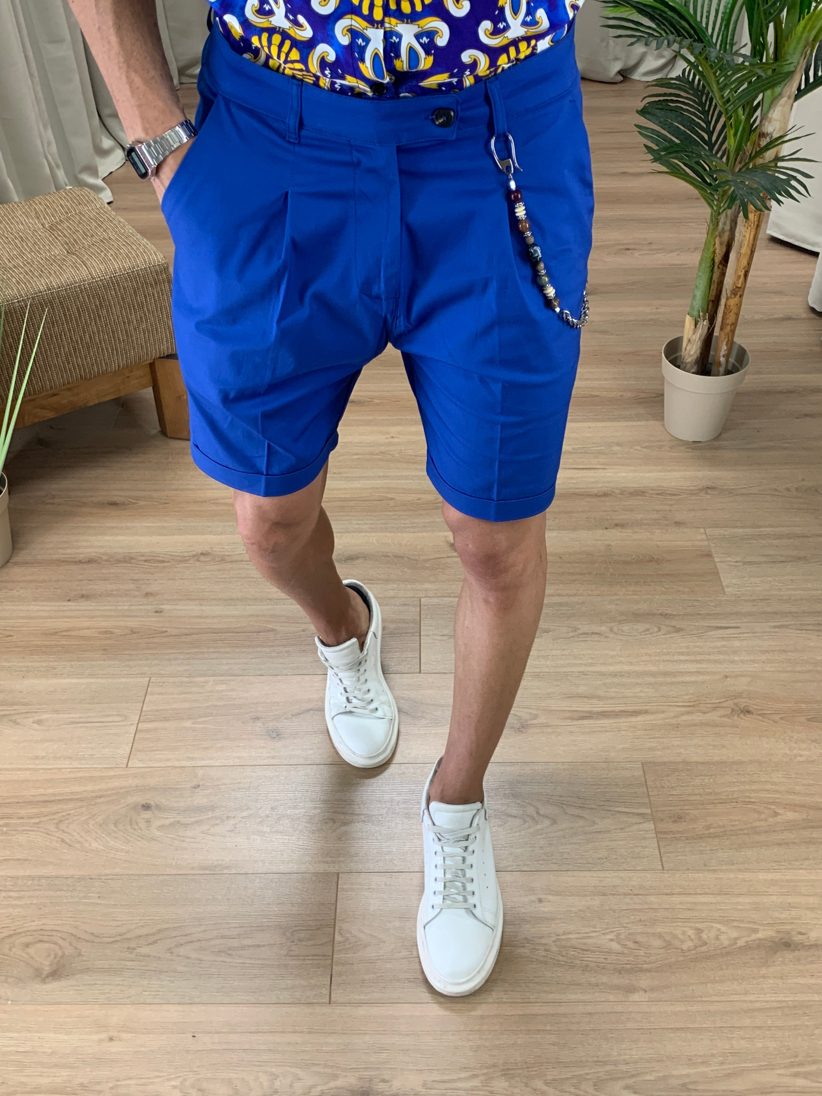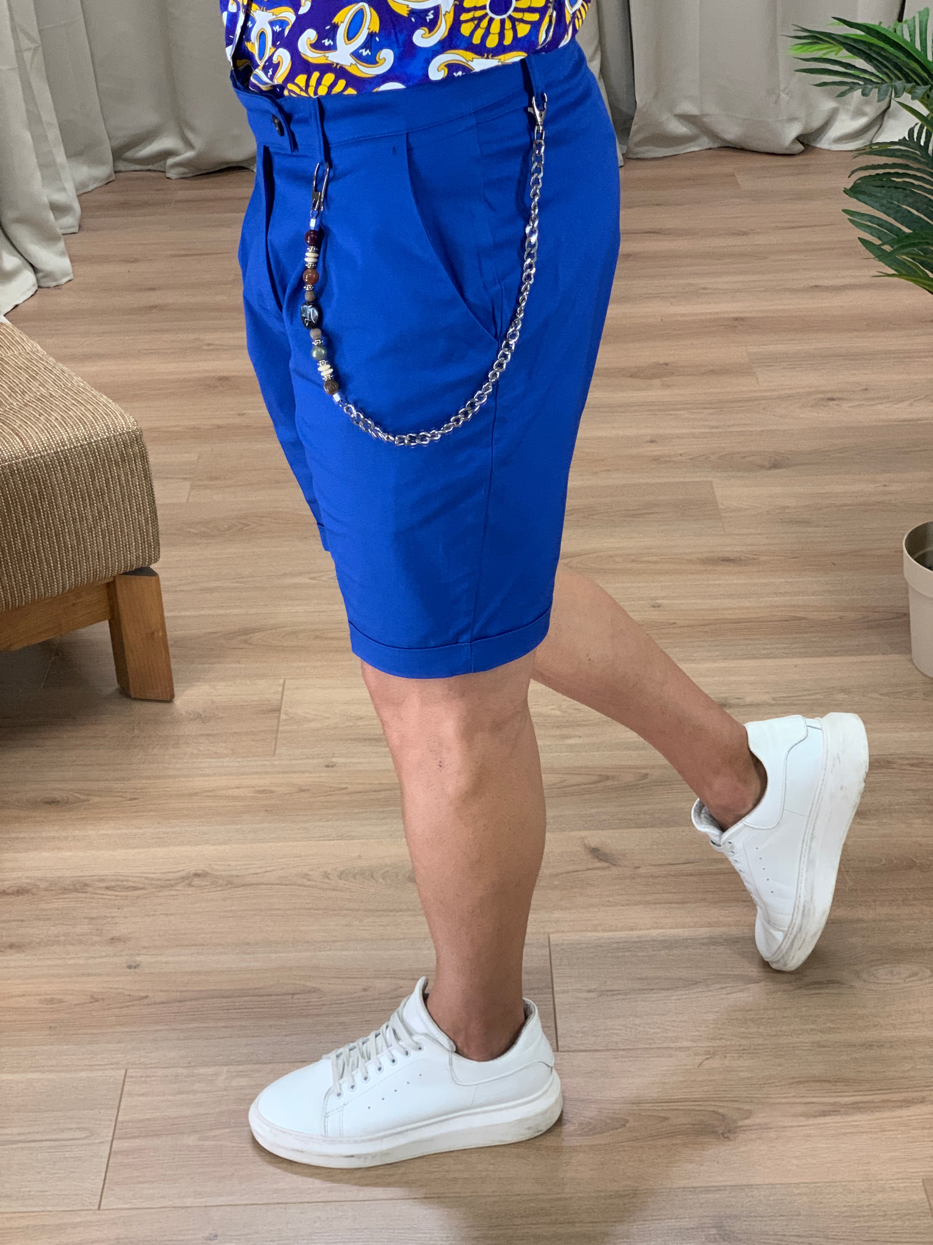 Bermuda con Risvolto, Pinces e Catena col. Blu Royal