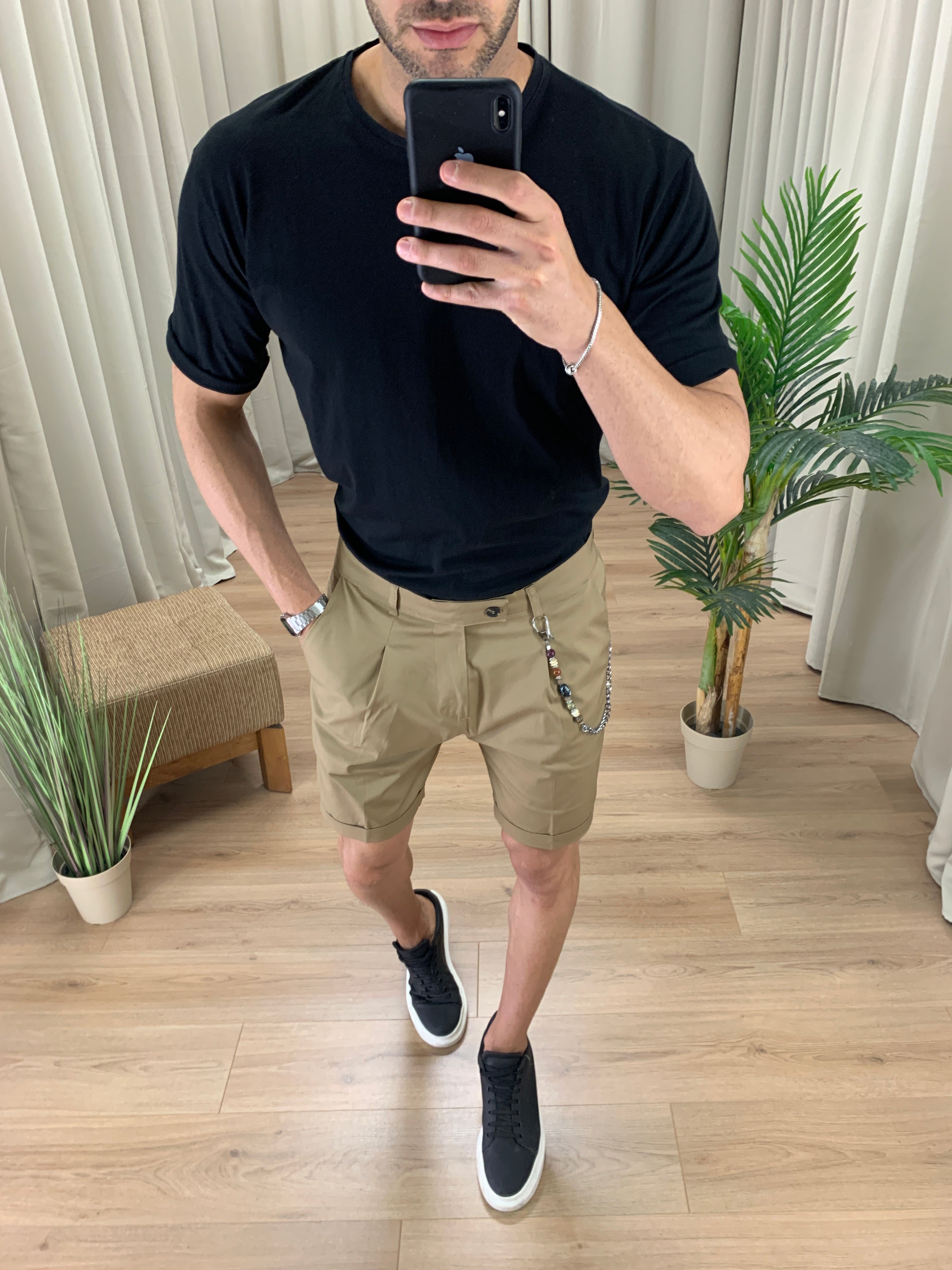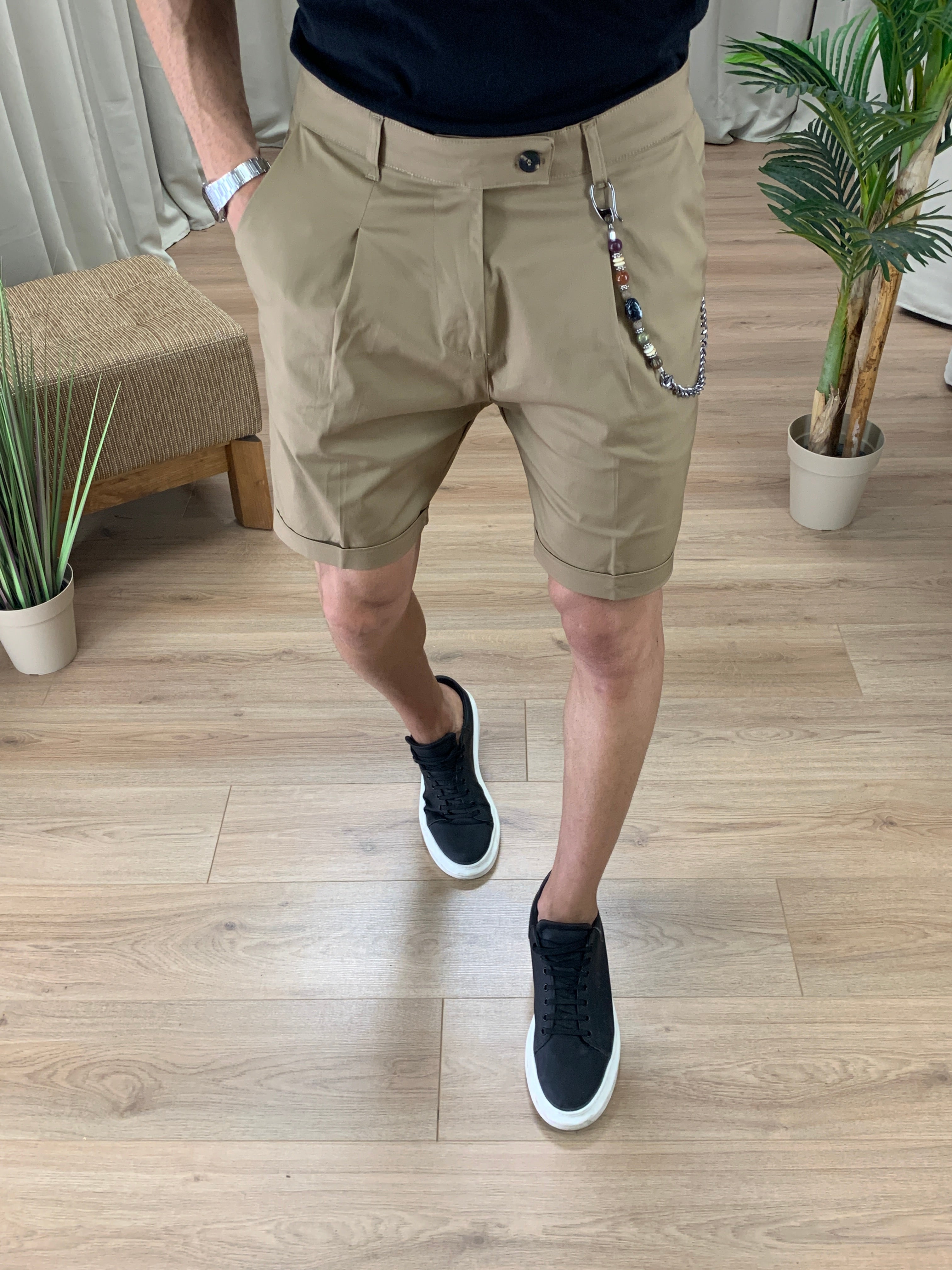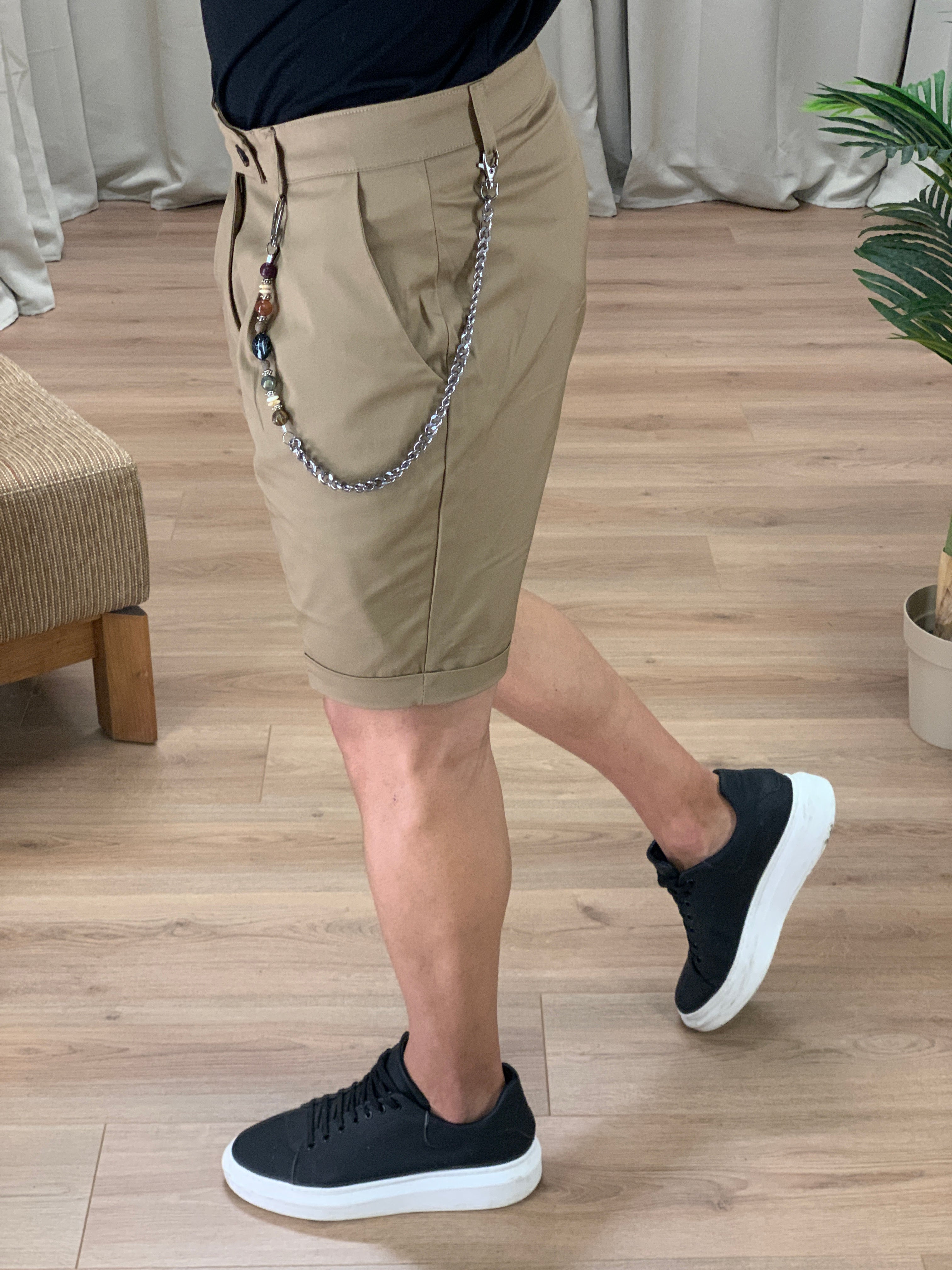 Bermuda con Risvolto, Pinces e Catena col. Cammello