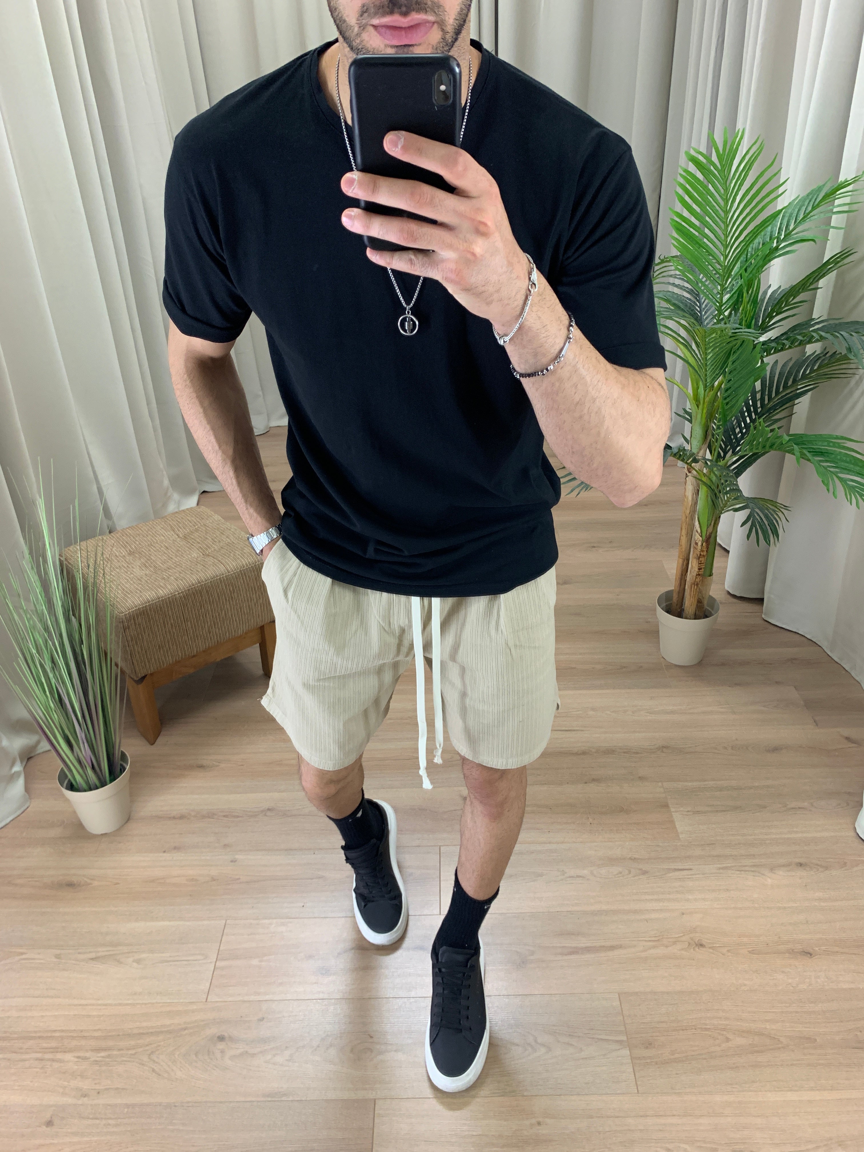 Il modello è alto 189 cm e pesa 89 Kg. Indossa la taglia XL