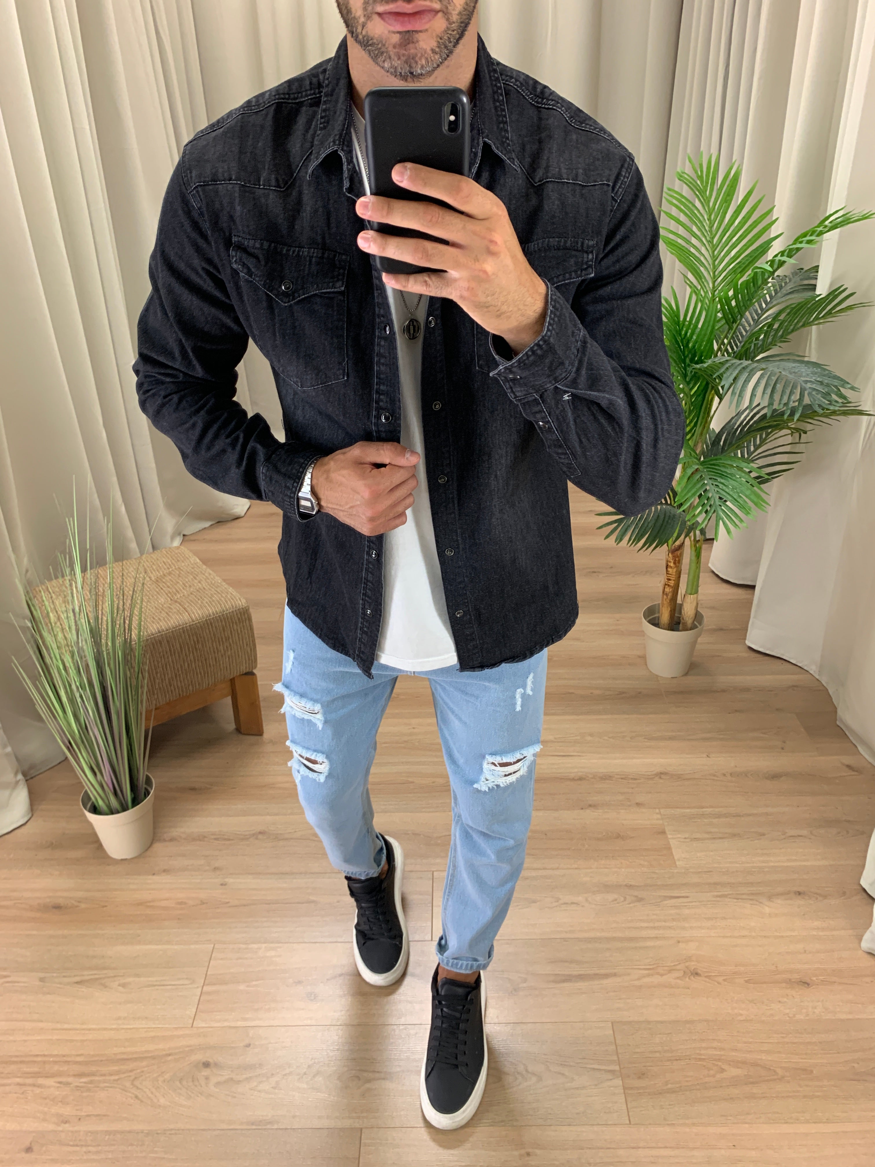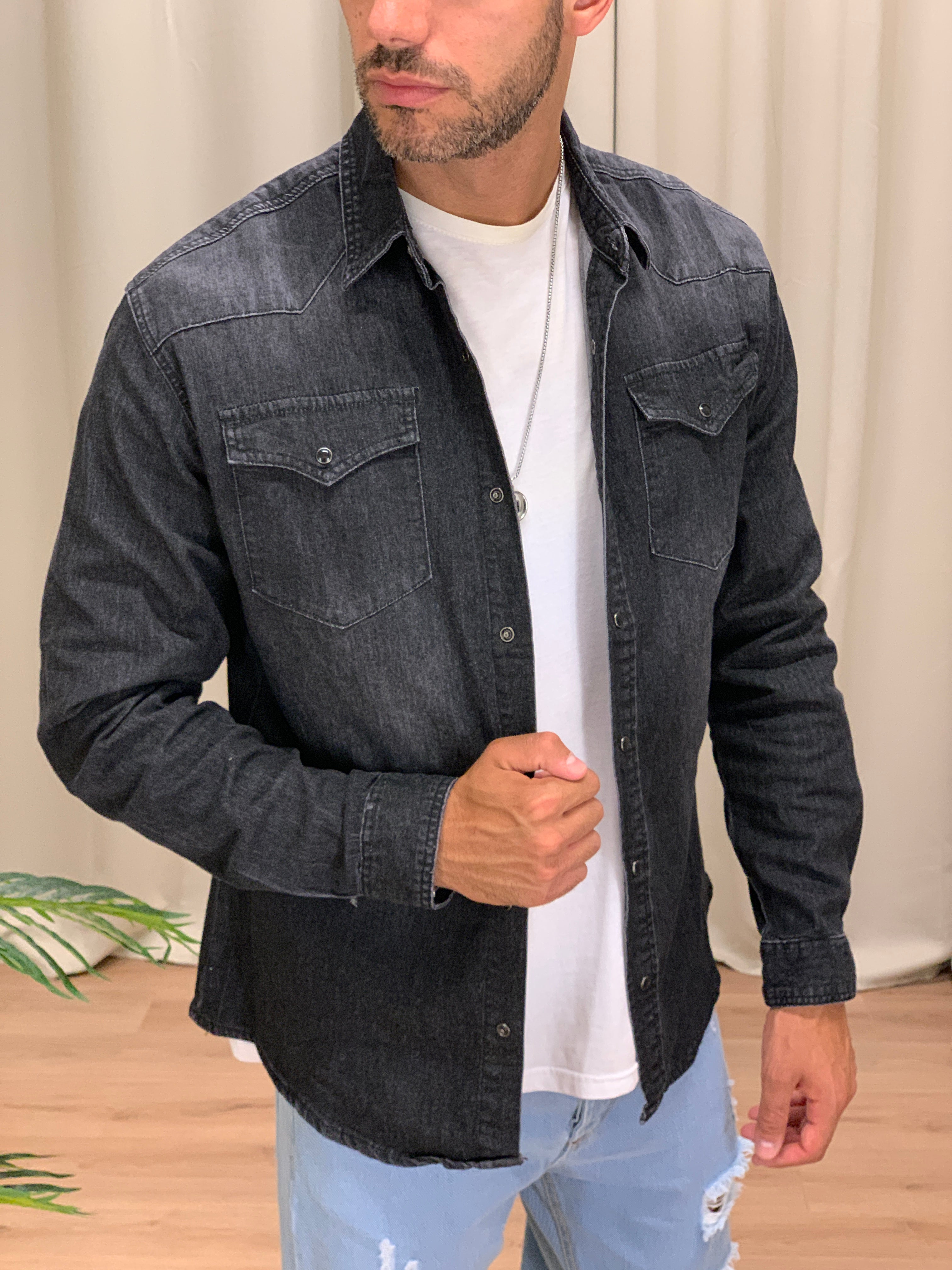 Camicia di Jeans Cayenne con Taschini col. Nero