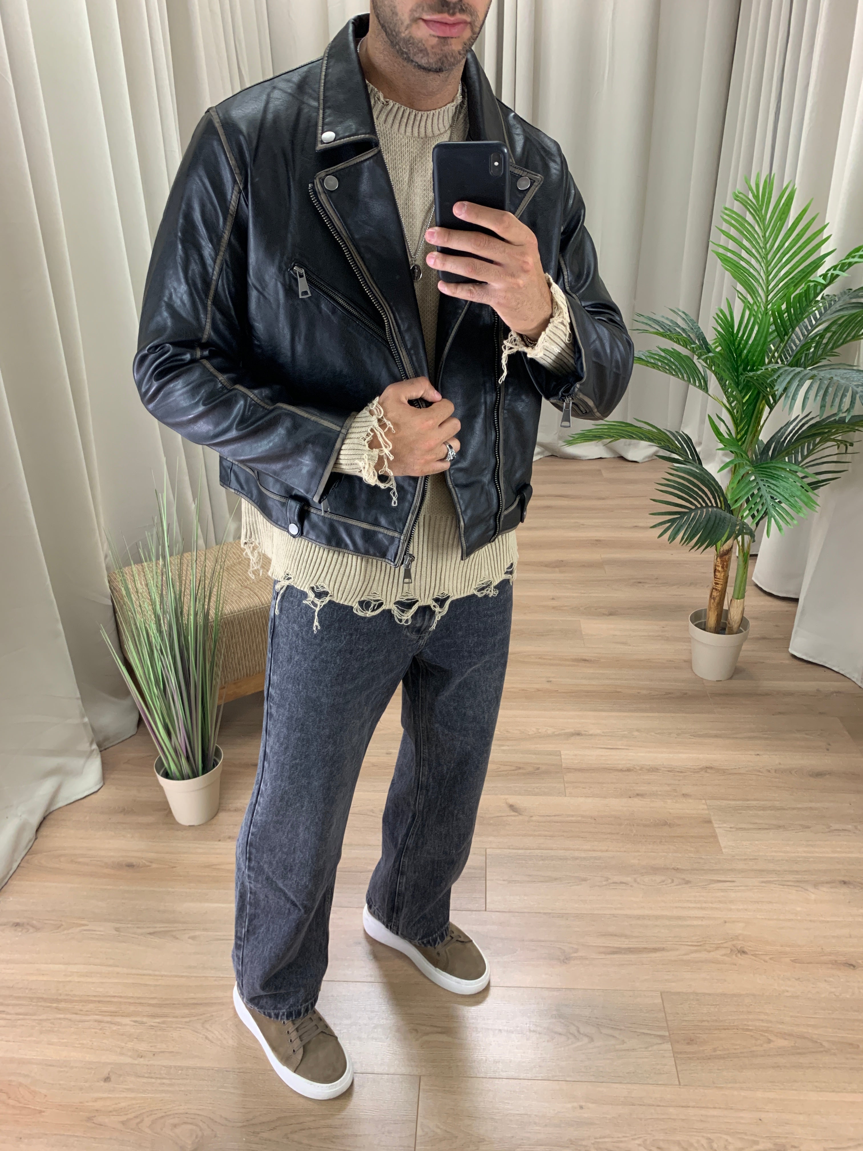 Chiodo Crop Vintage effetto Pelle col. Nero