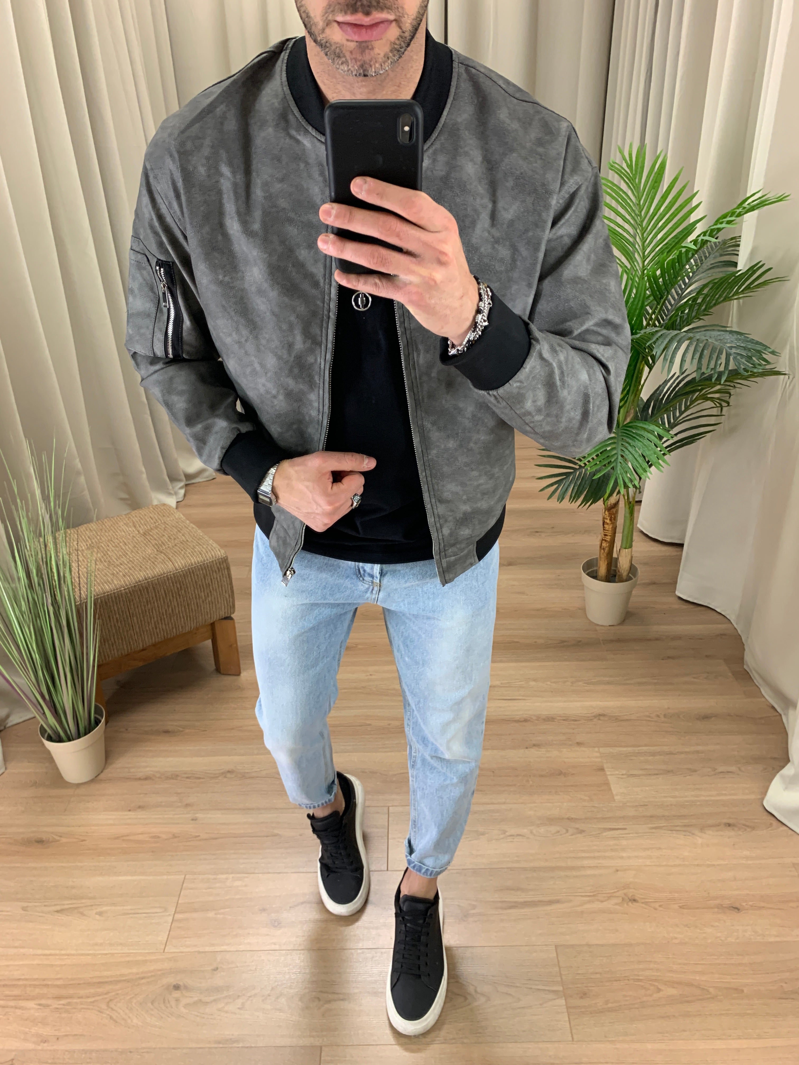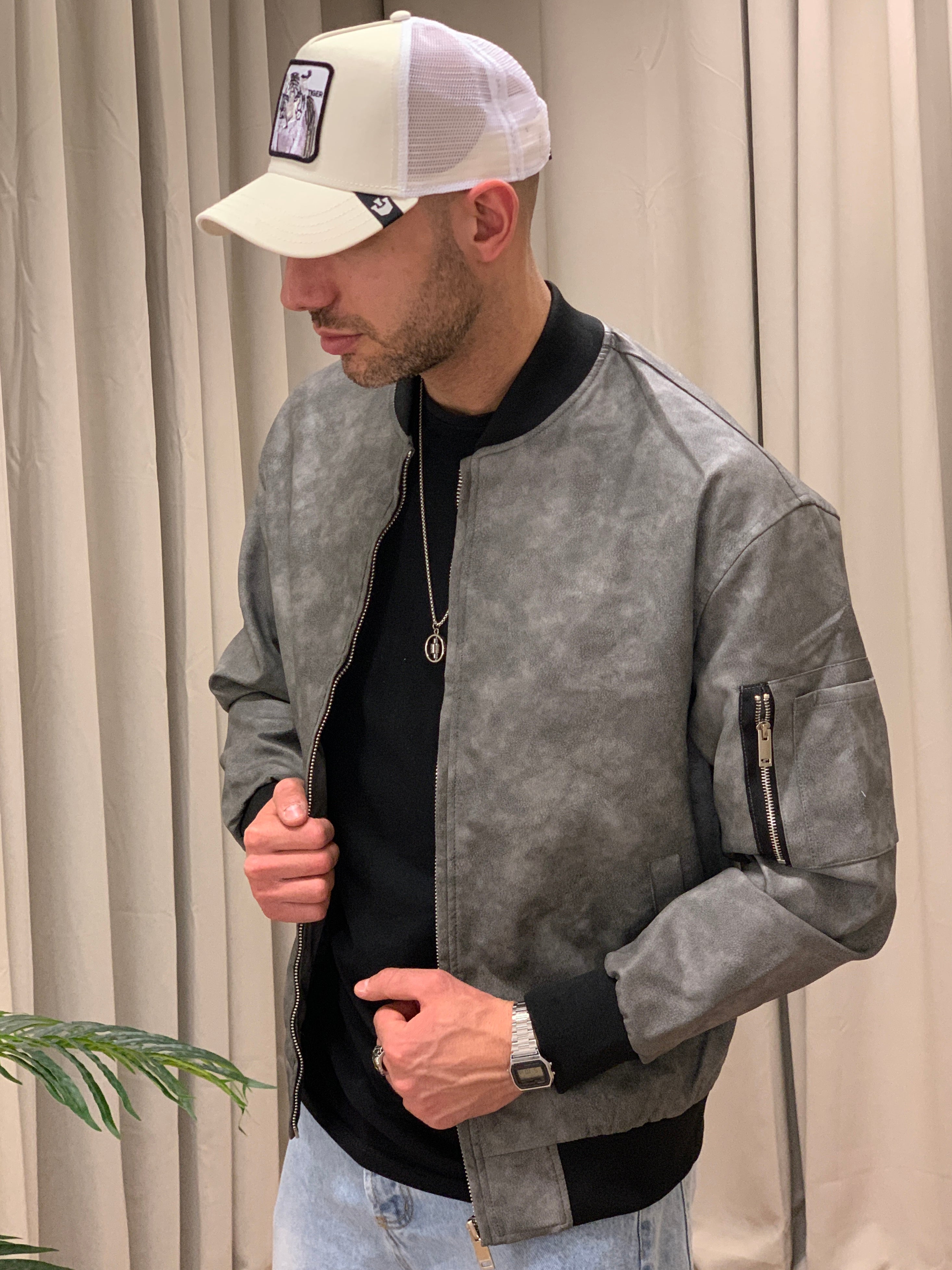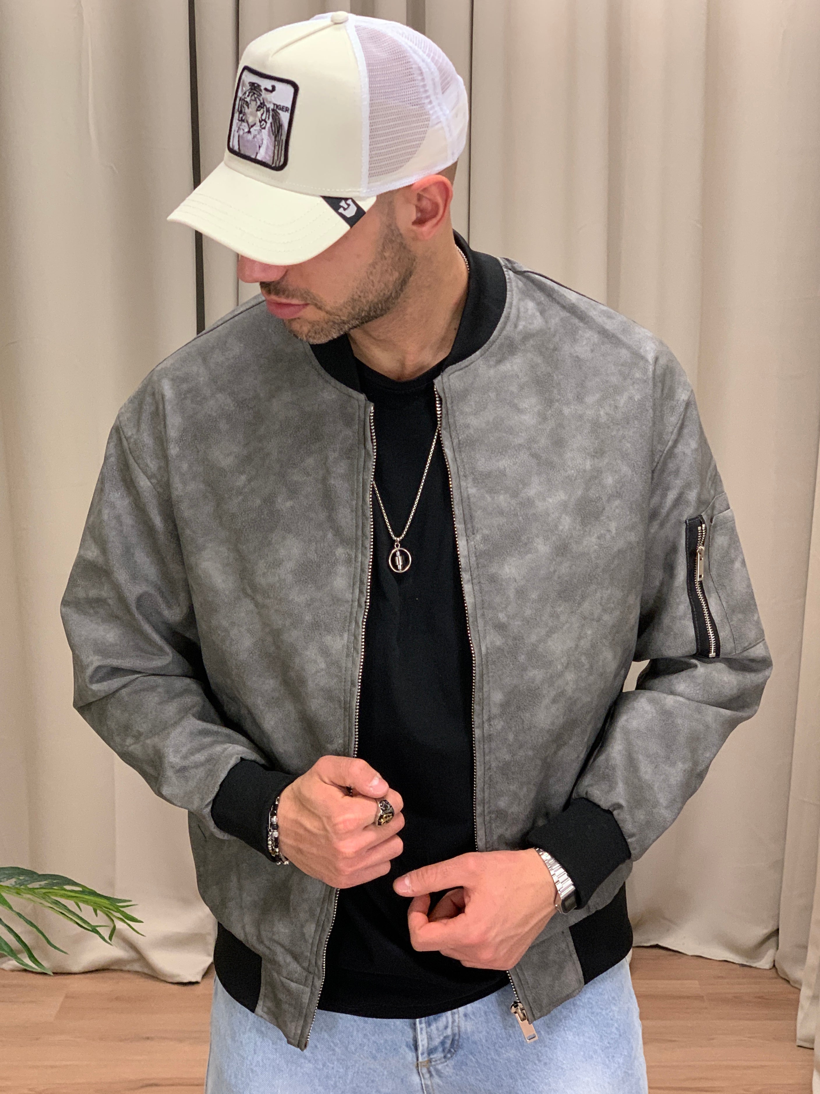 Giacca Harley Effetto Pelle Tamponata col. Grigio