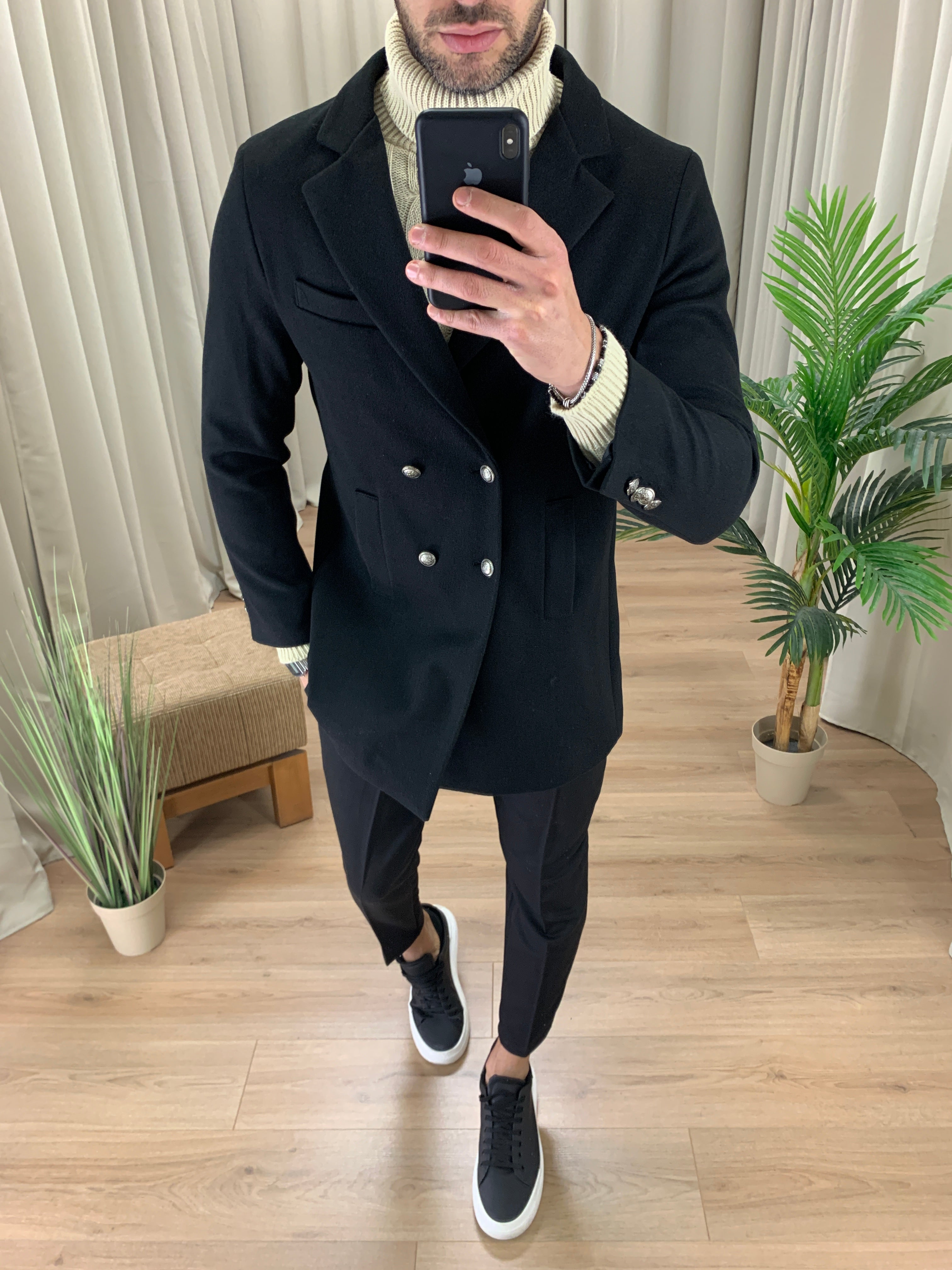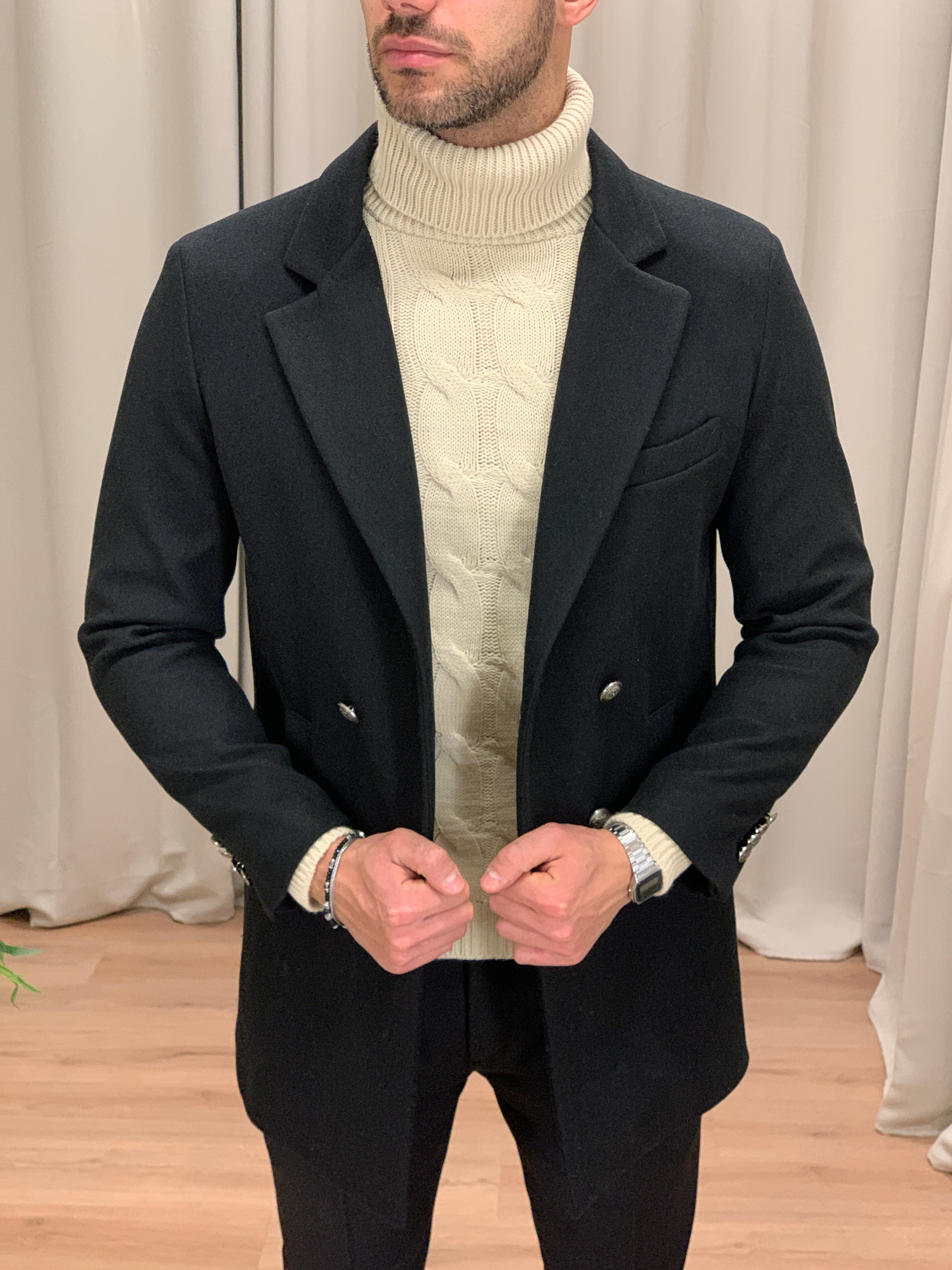 Cappotto Kavon doppiopetto con Bottoni col. Nero