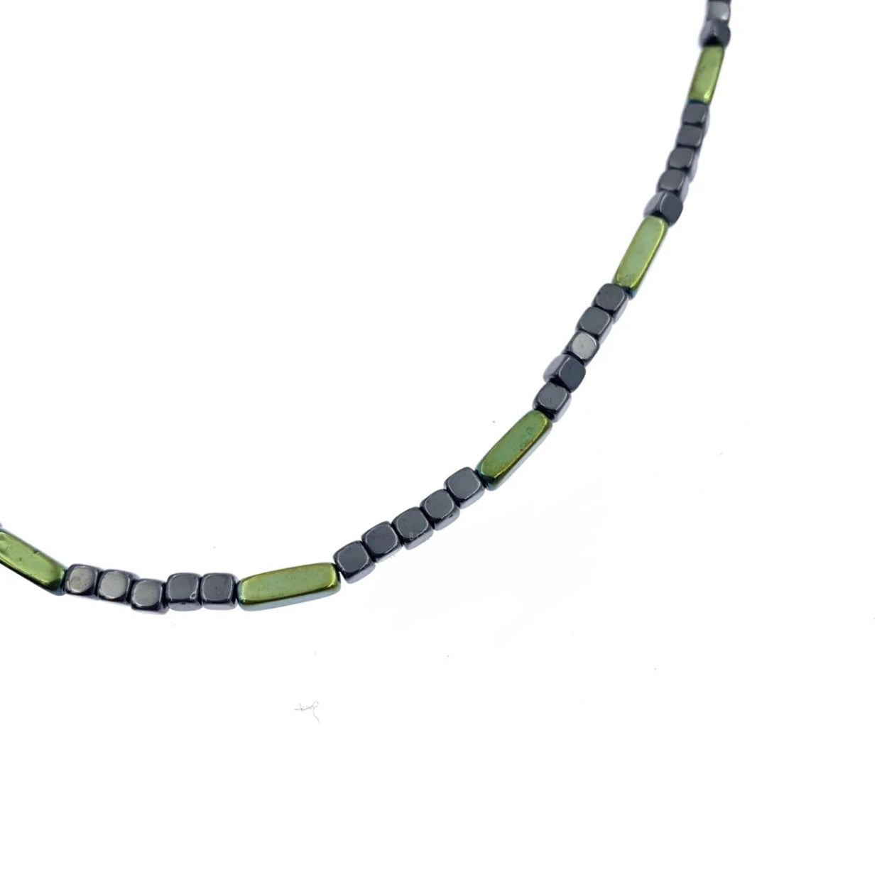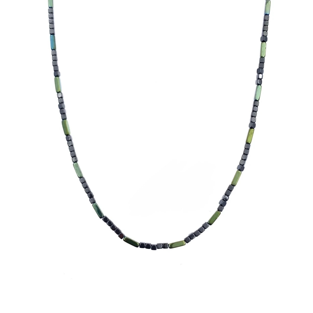 Collana Catena Ematite in Acciaio Inossidabile col. Dark Silver/Green