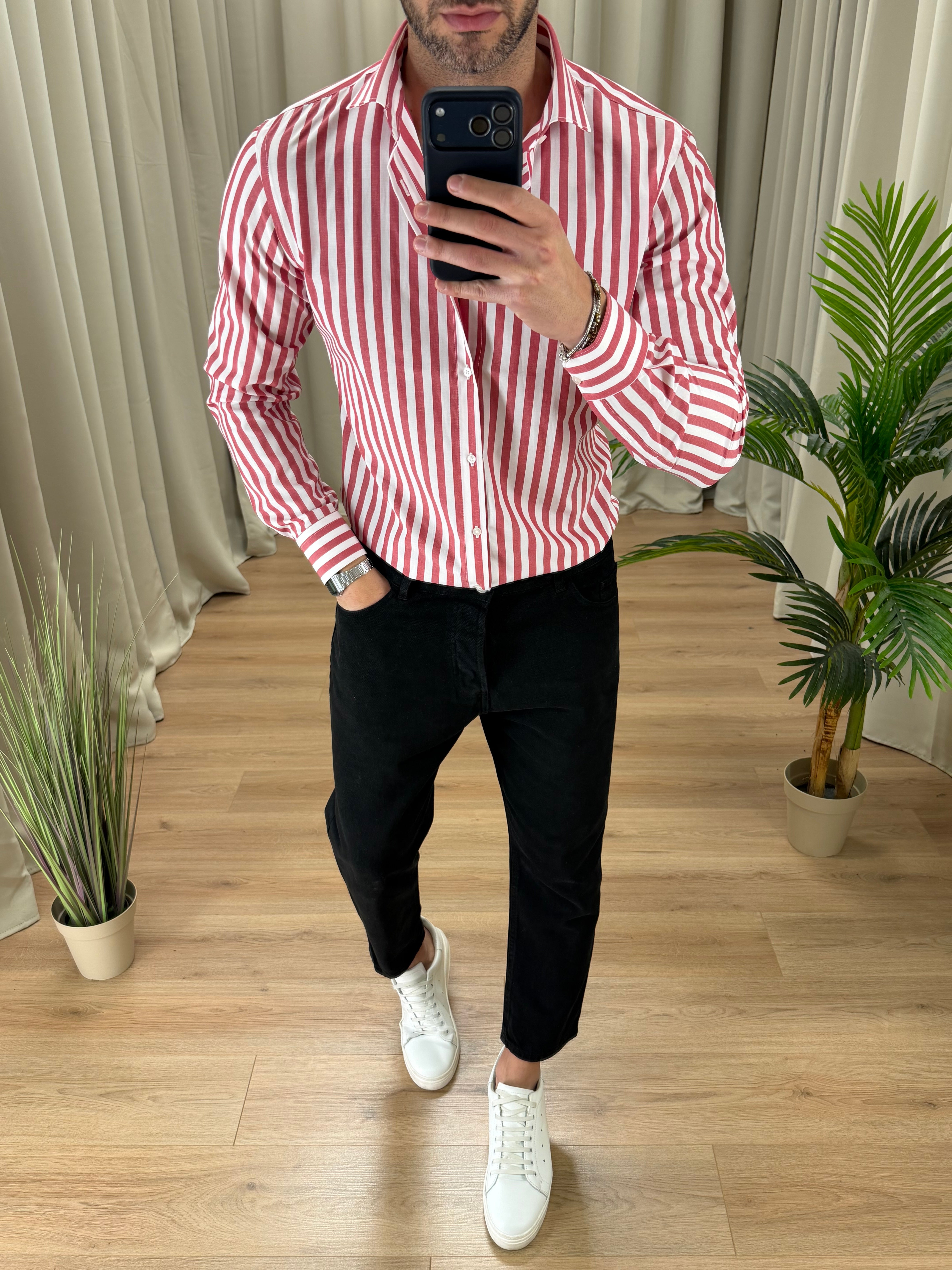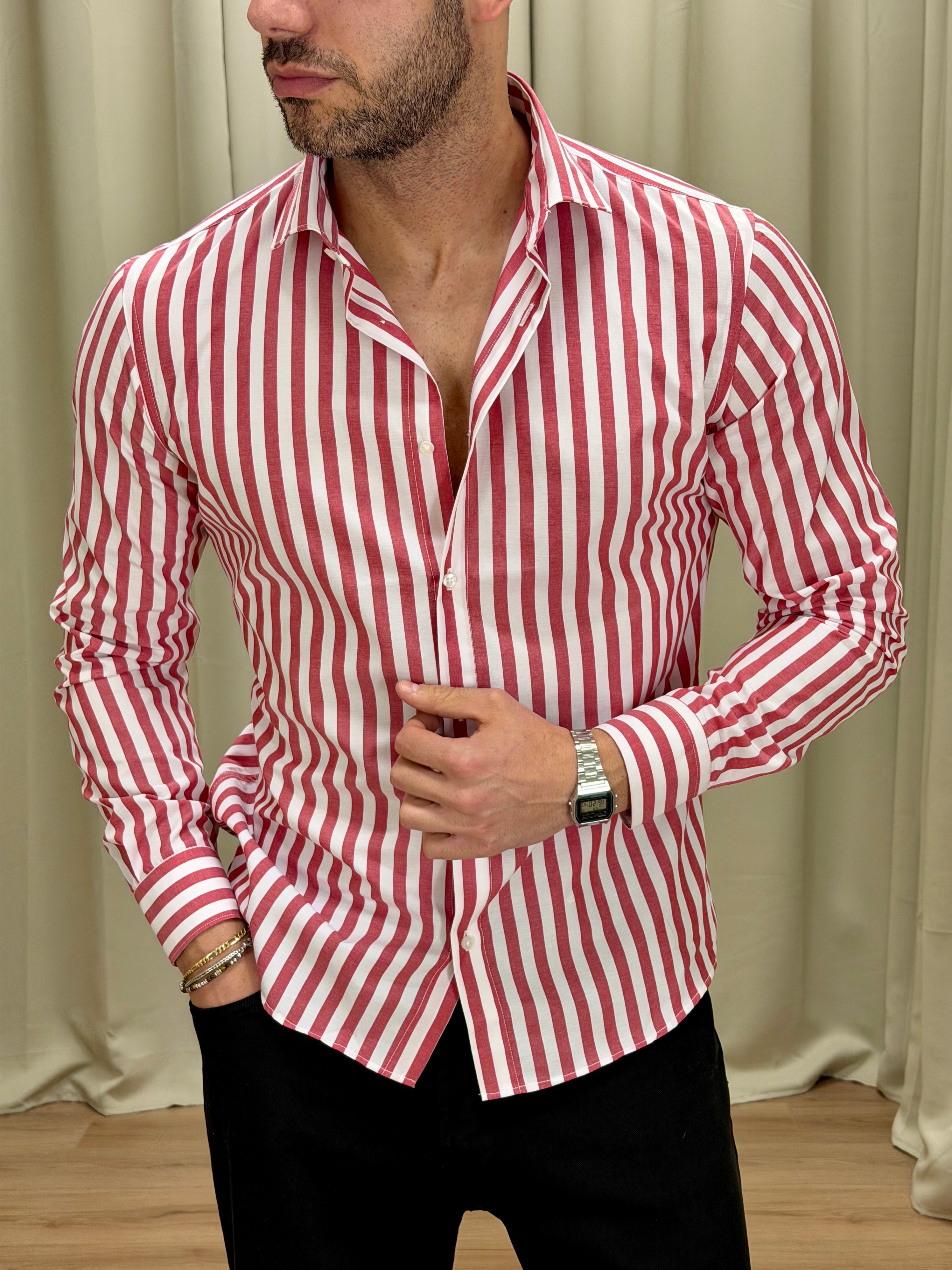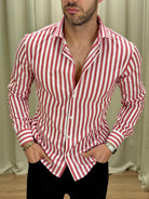 Camicia Godric in cotone a righe col. Rosso