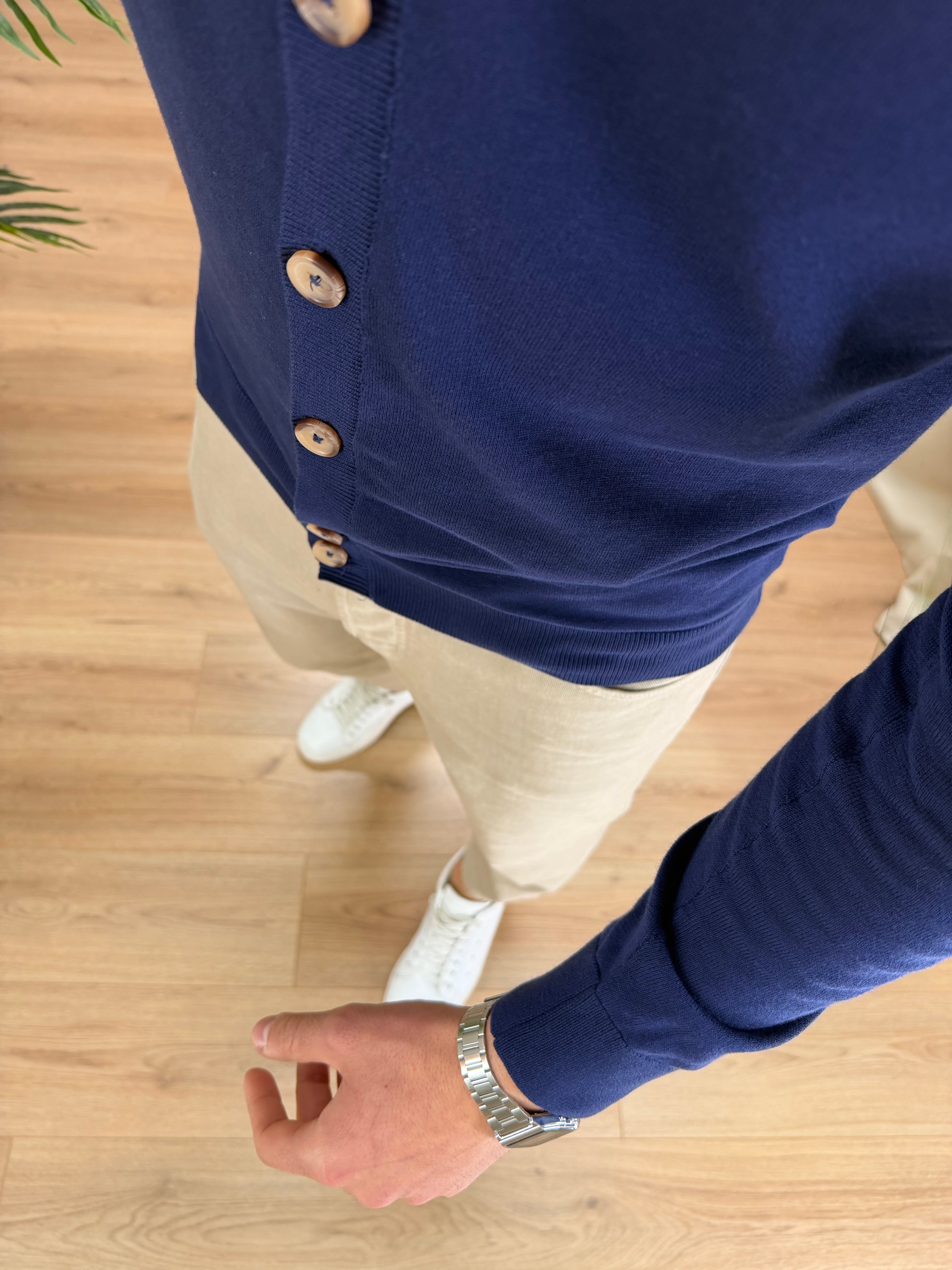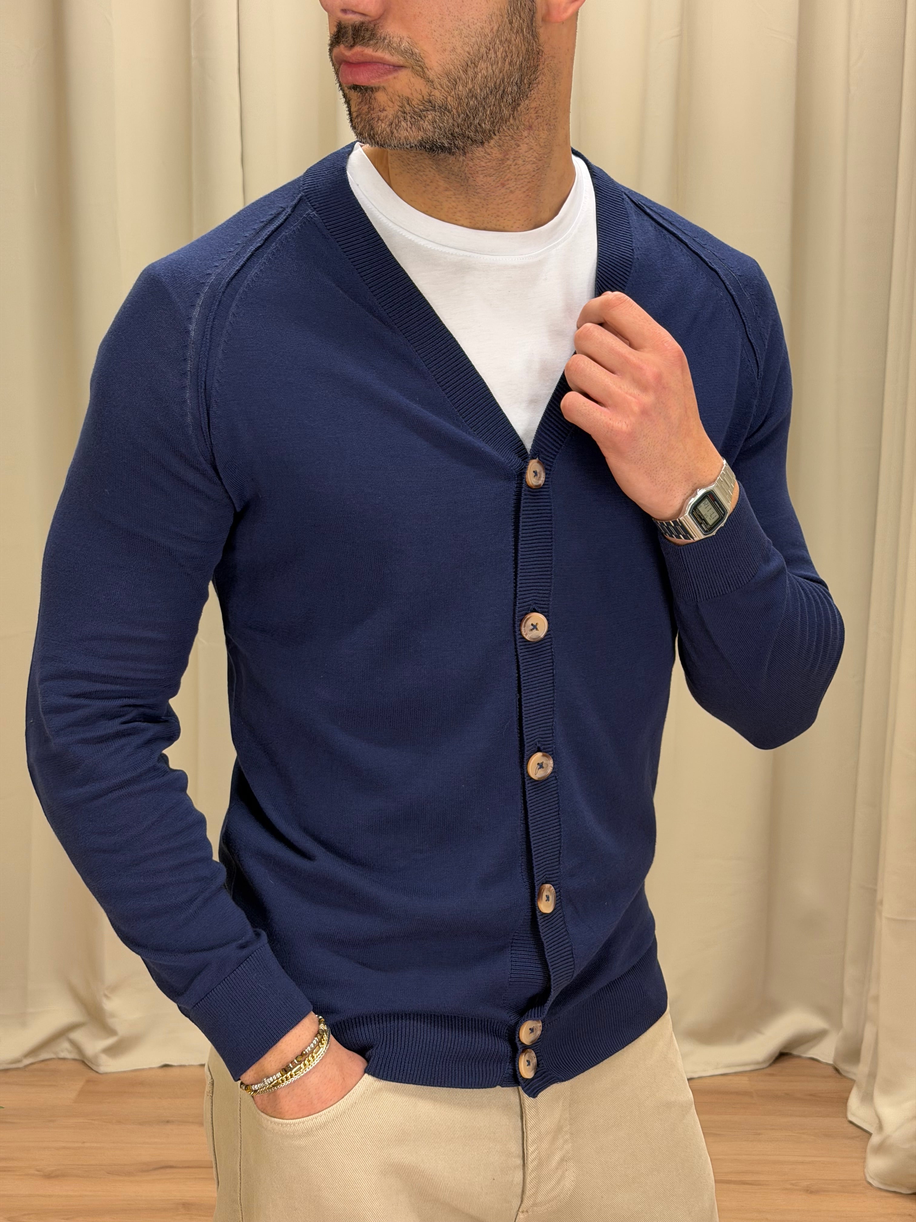 Cardigan art. M08 in filo di cotone col. Blu