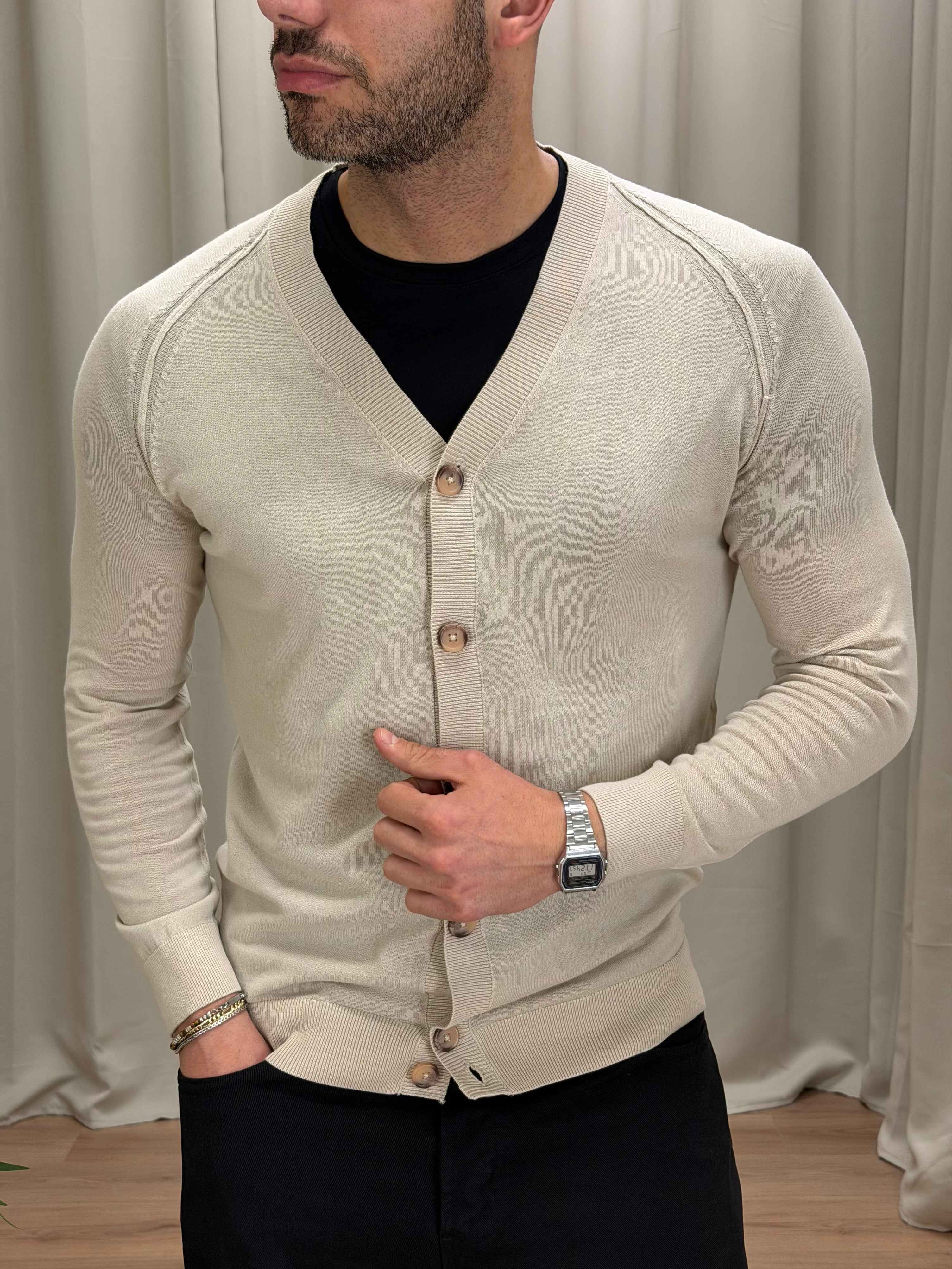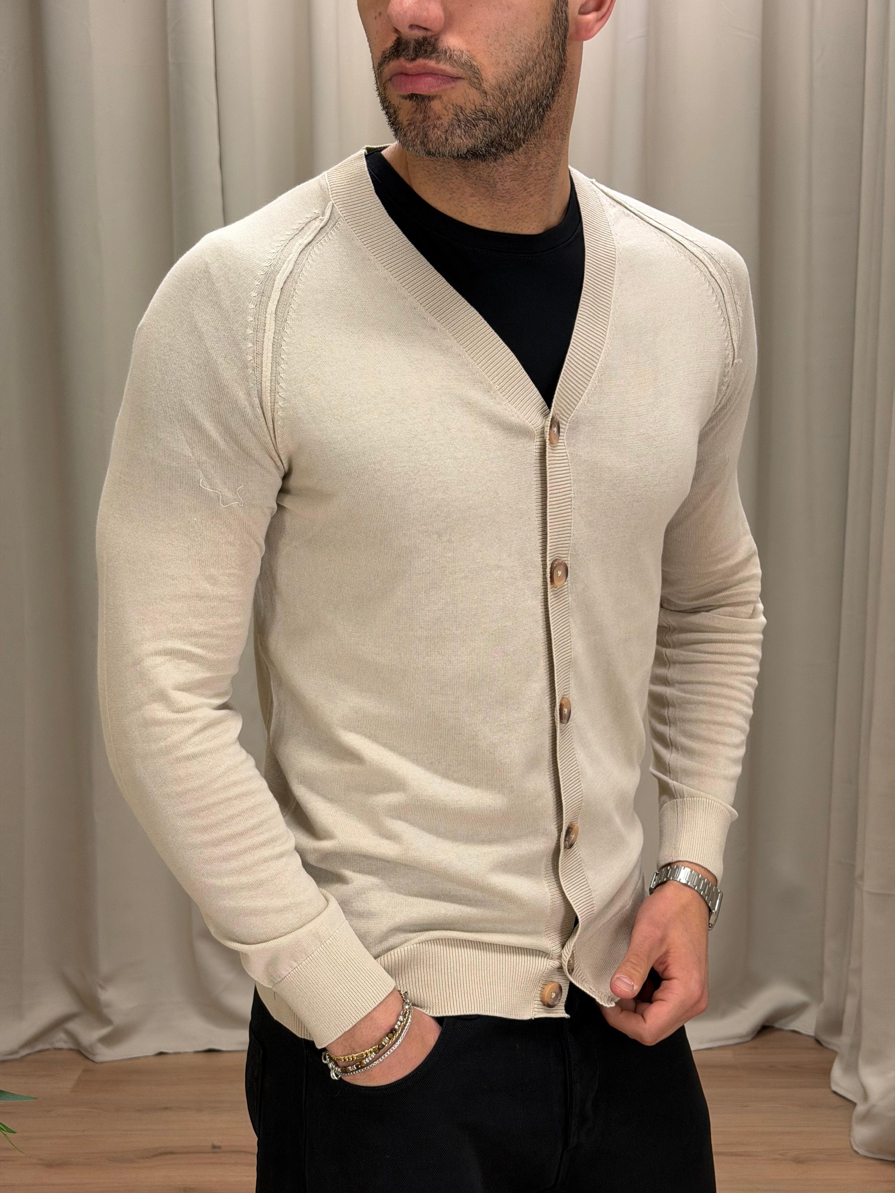 Cardigan art. M08 in filo di cotone col. Beige