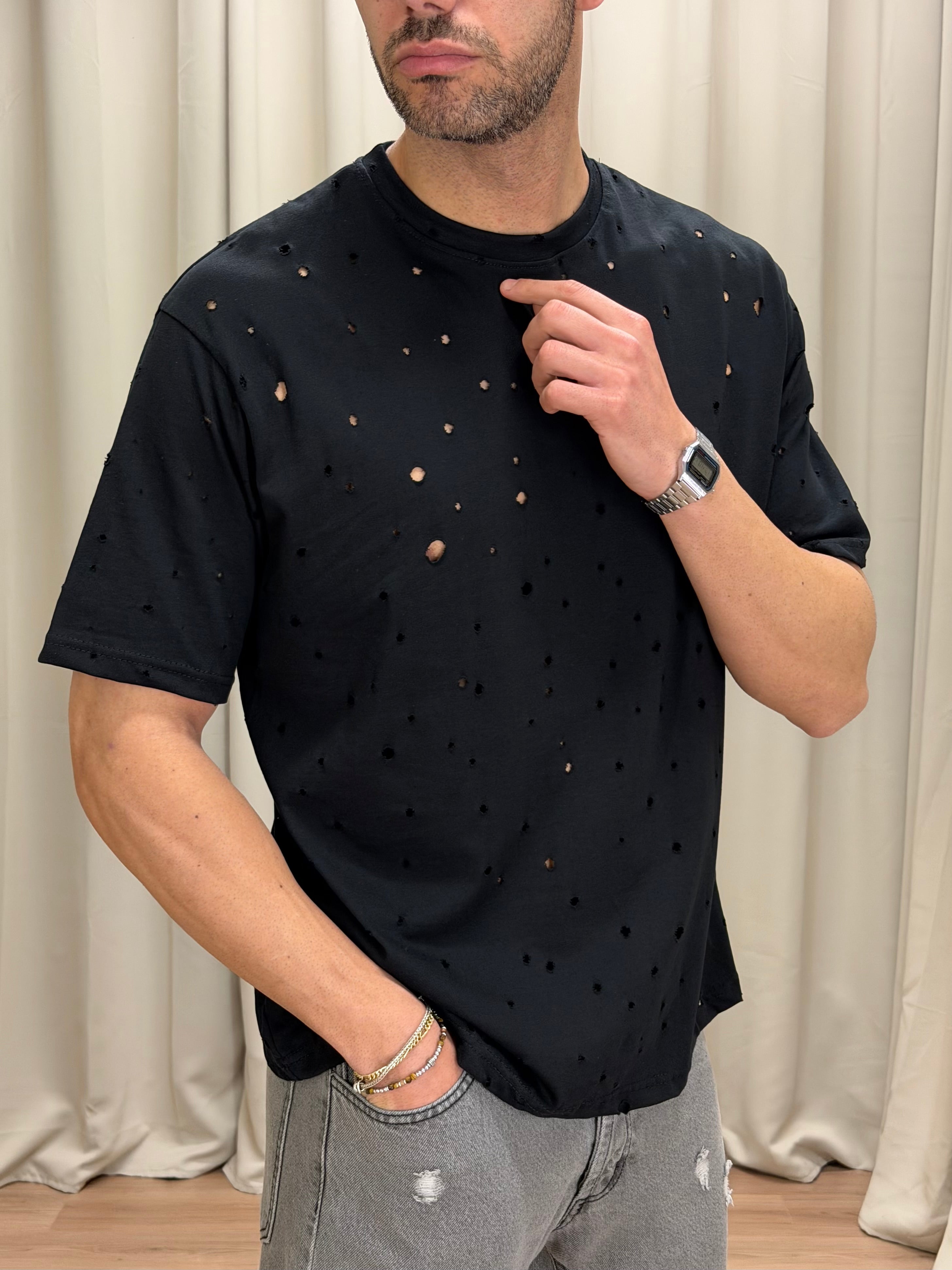 Il modello è alto 189 cm e pesa 89 Kg. Indossa la taglia XL
