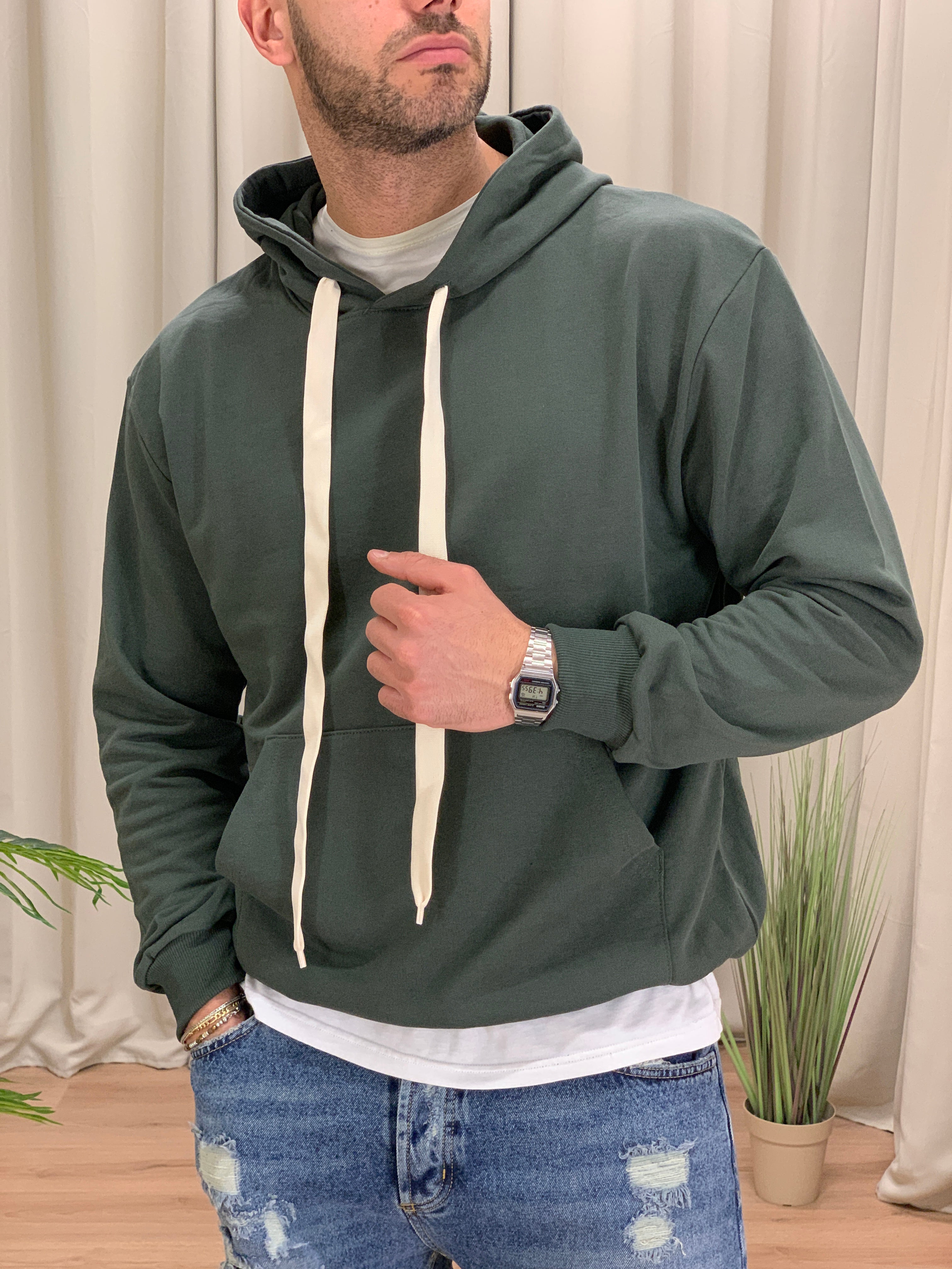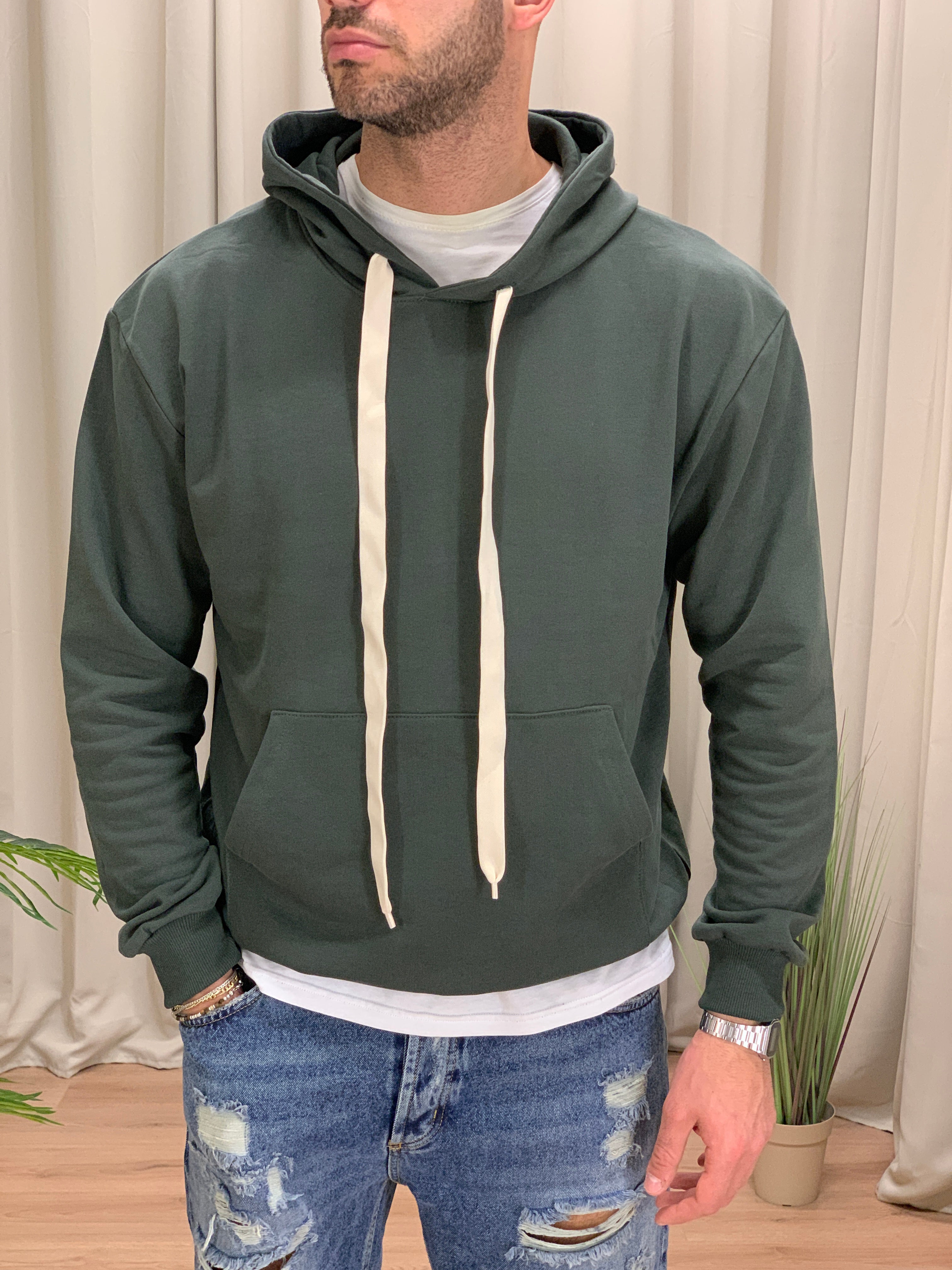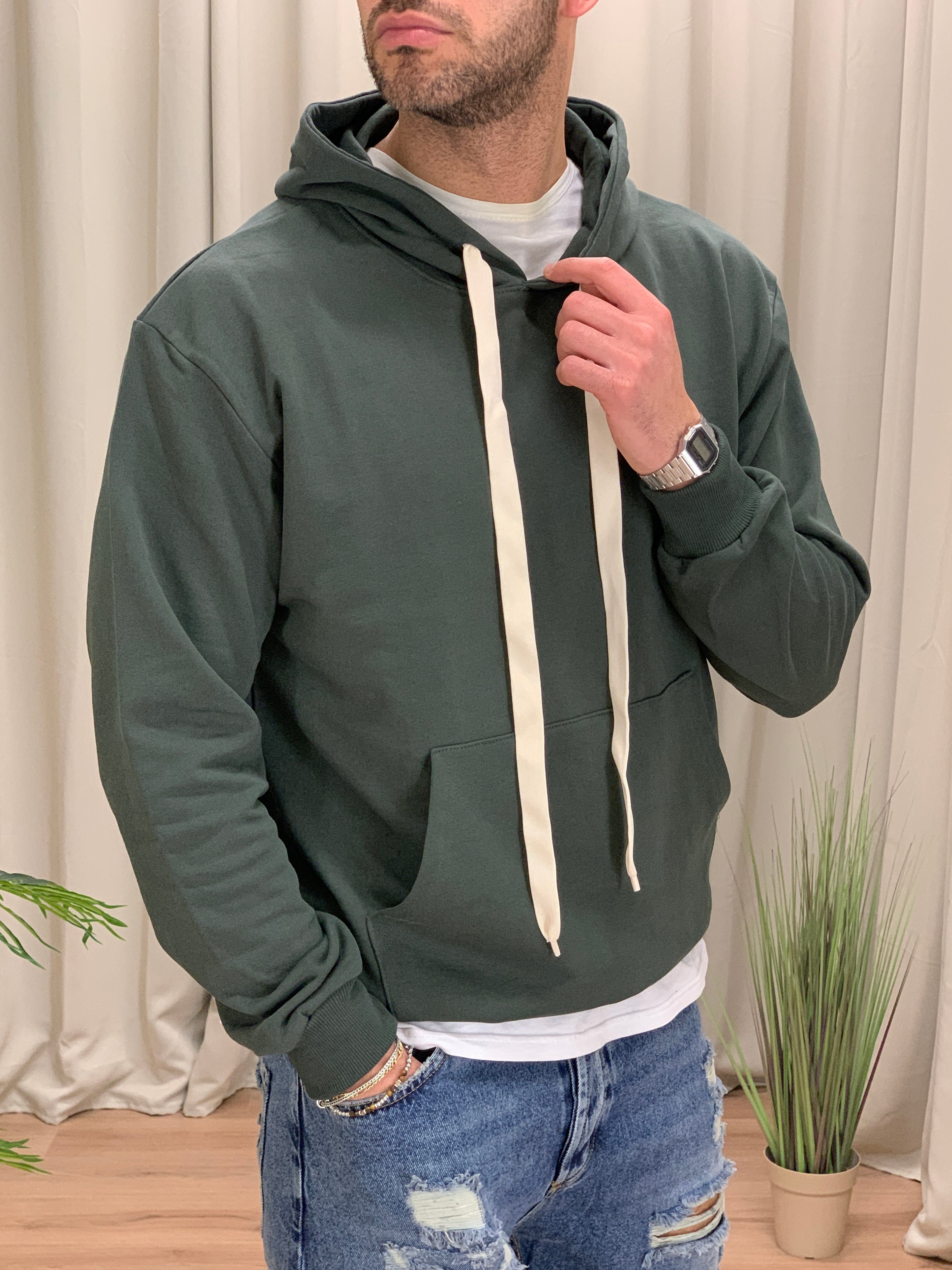 Felpa Nepol con cappuccio cotone garzato col. Verde Militare
