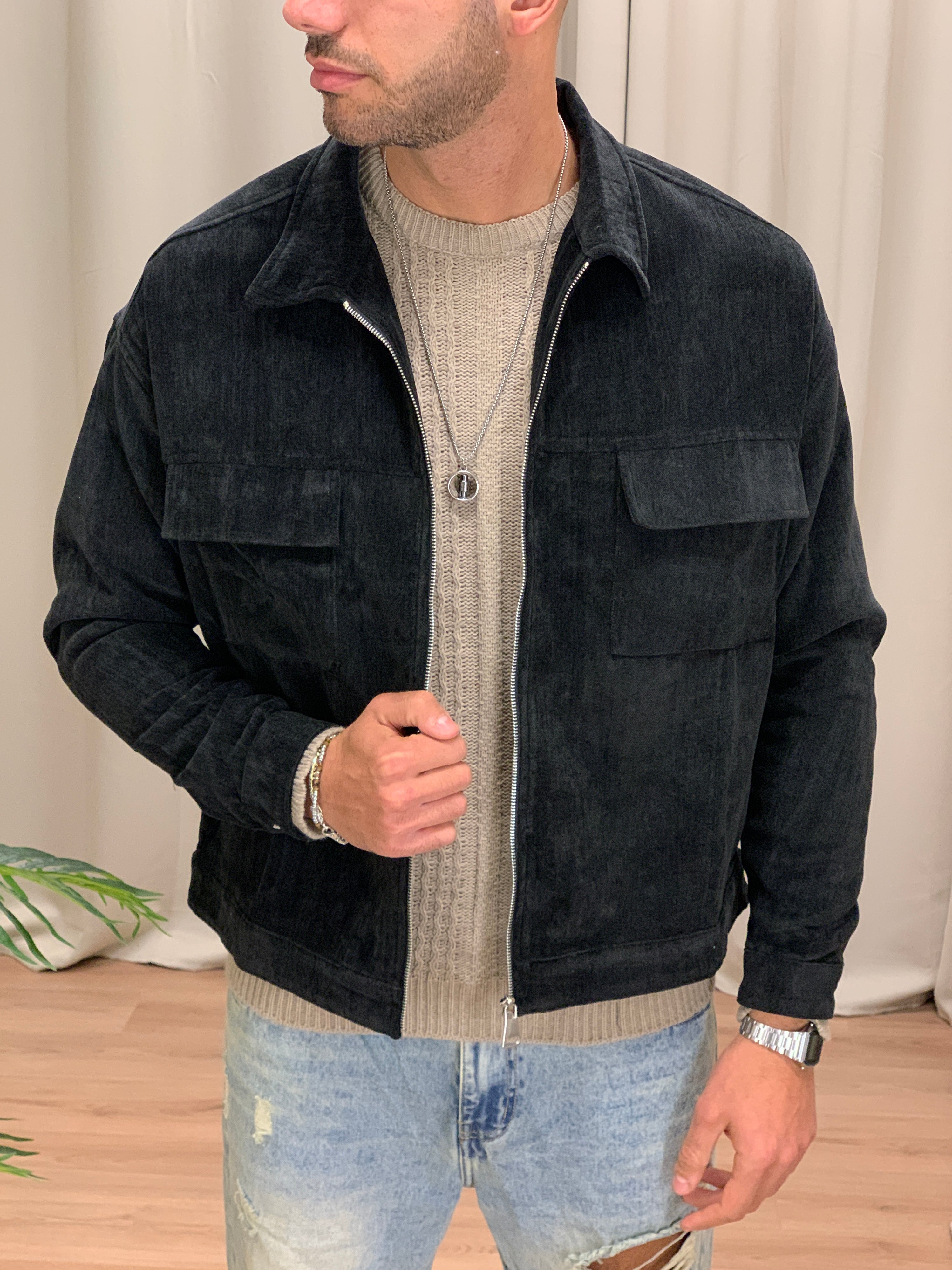 Giacca camicia Simba con Zip e Taschini col. Nero