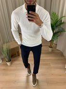 Maglia scollo Polo con Zip trama alveare col. Panna