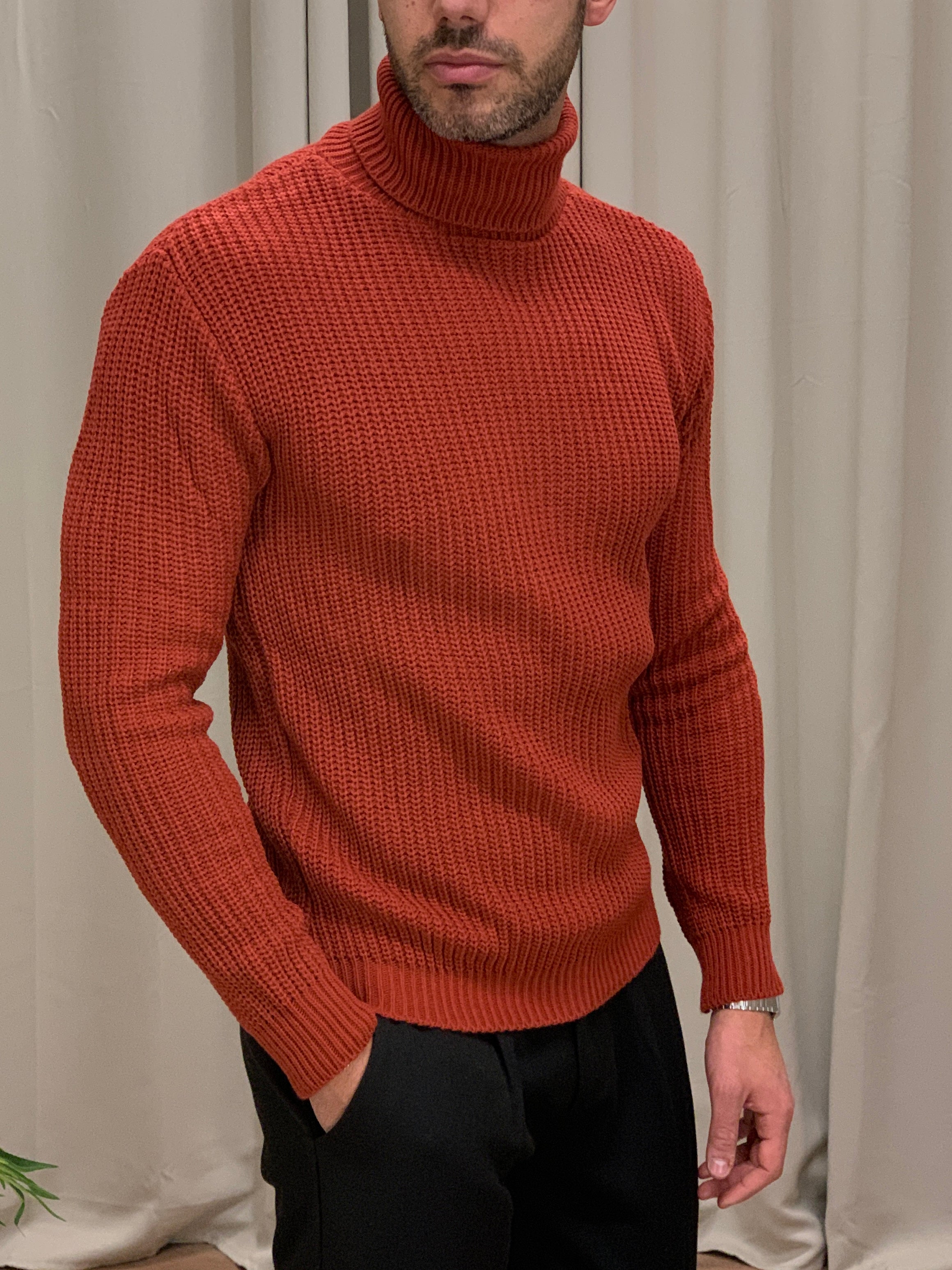 Maglioncino Mileto collo alto trama Basic col. Coccio