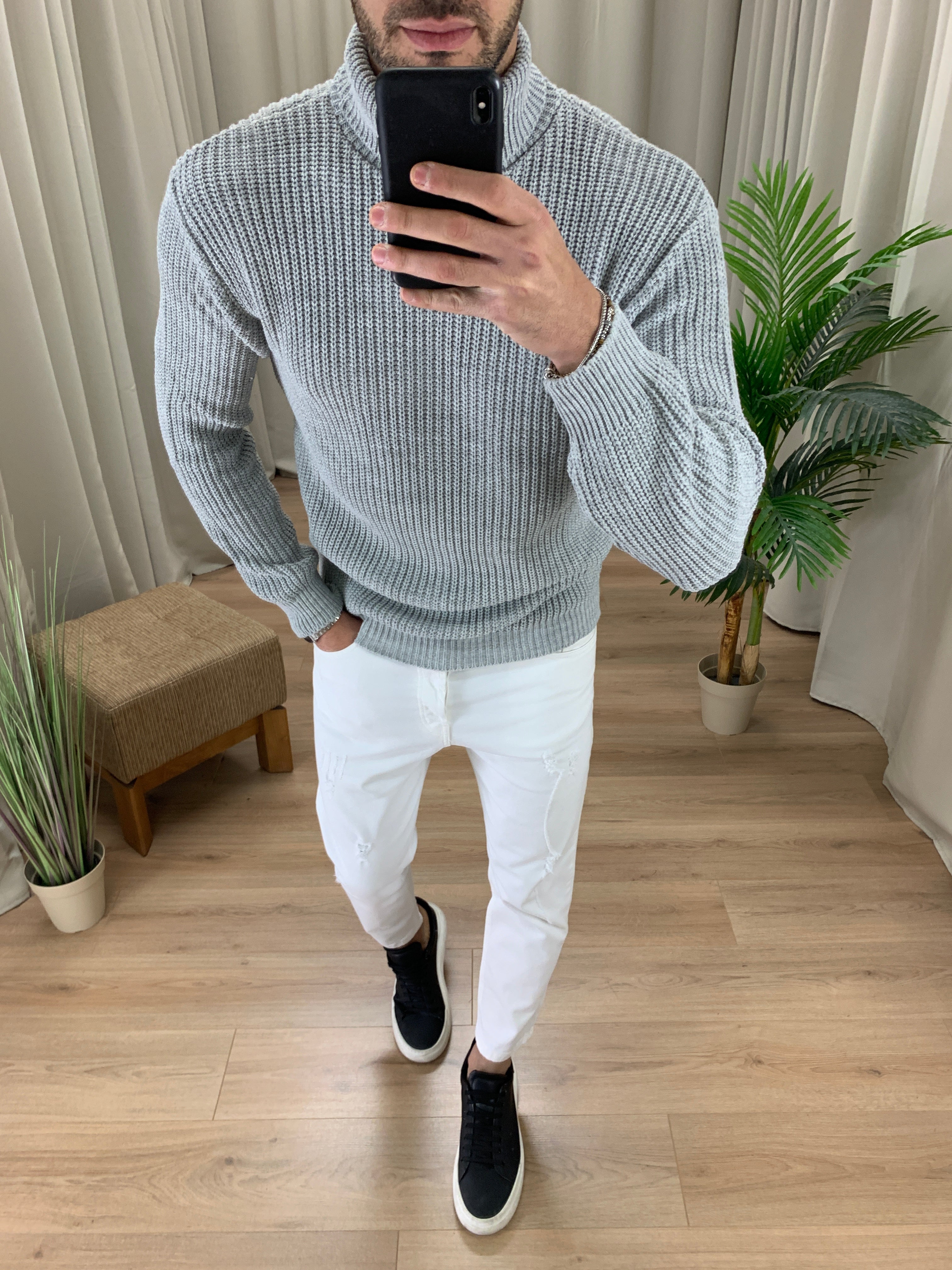 Maglioncino Mileto collo alto trama Basic col. Grigio
