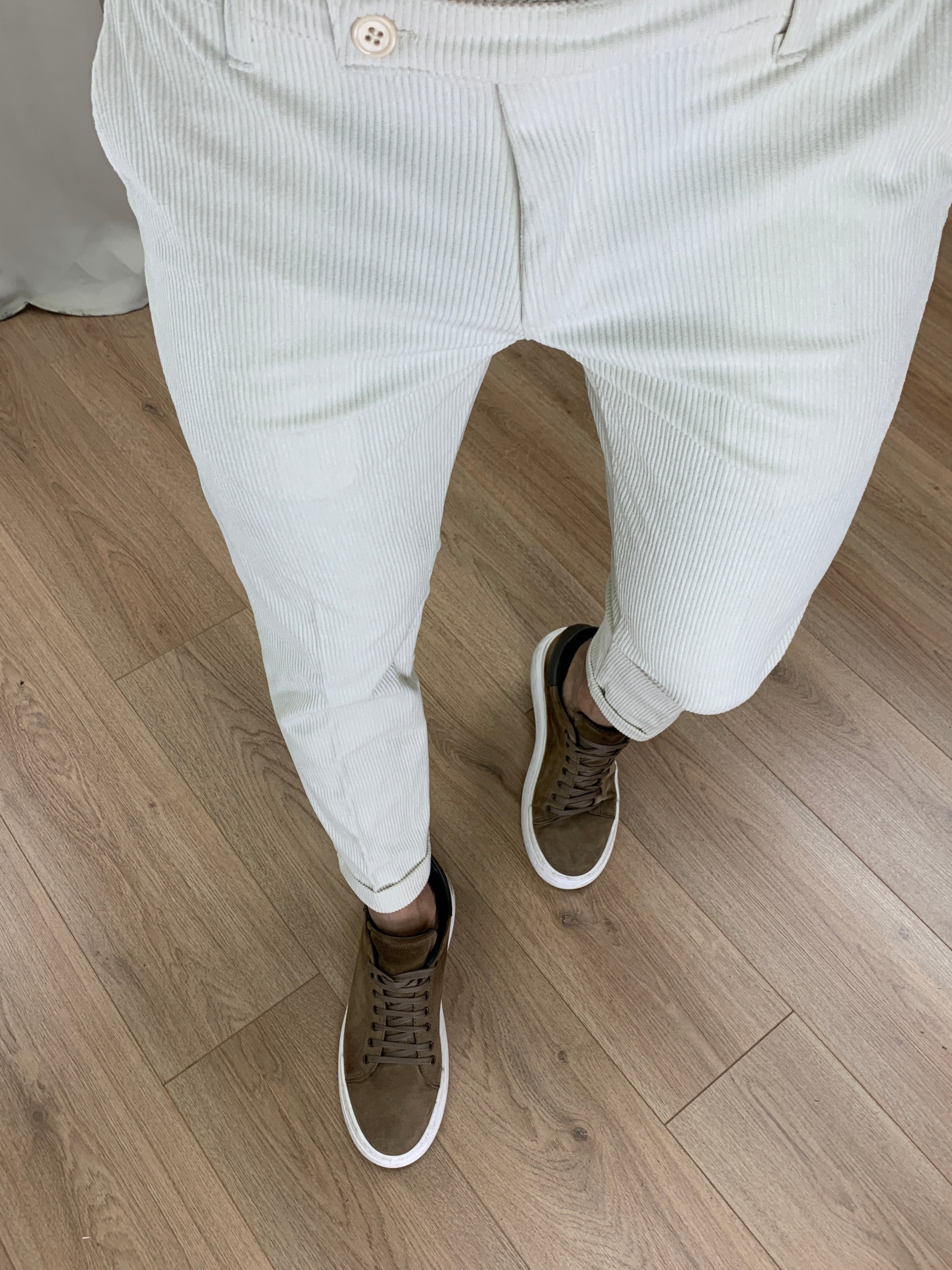 Pantalone in velluto a costine con risvolto sul fondo