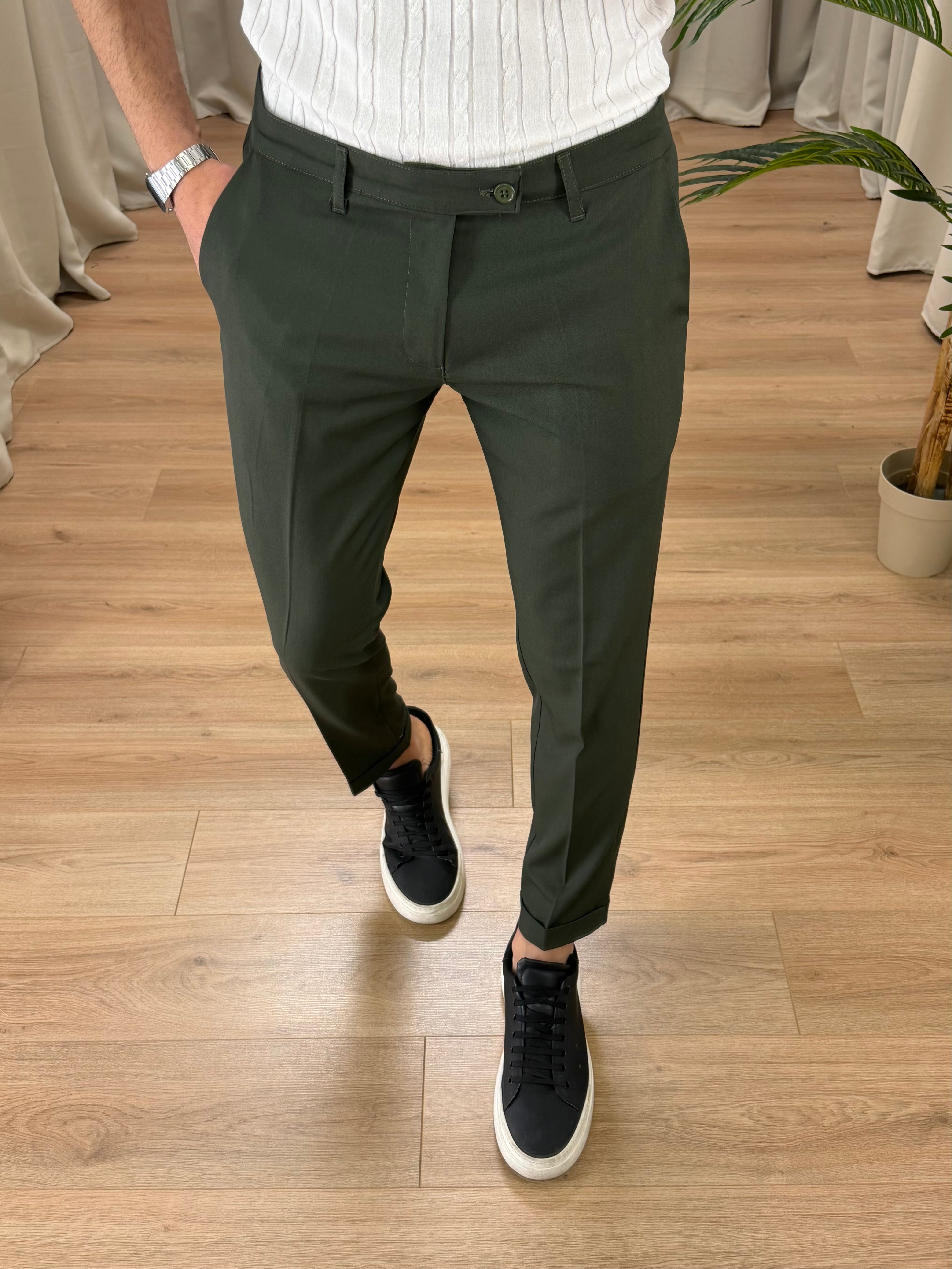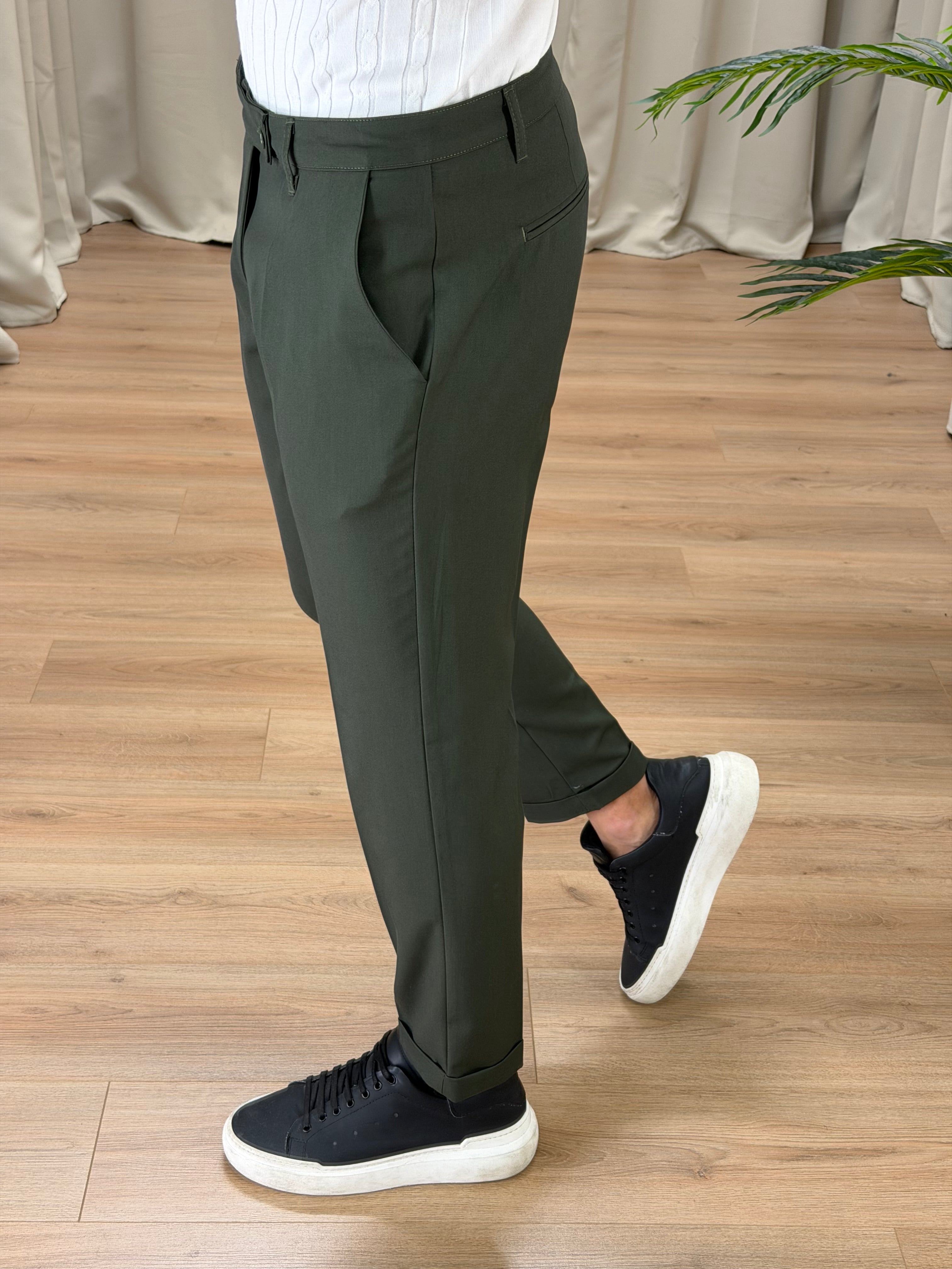 Pantalone Roma con risvolto col. Verde Militare