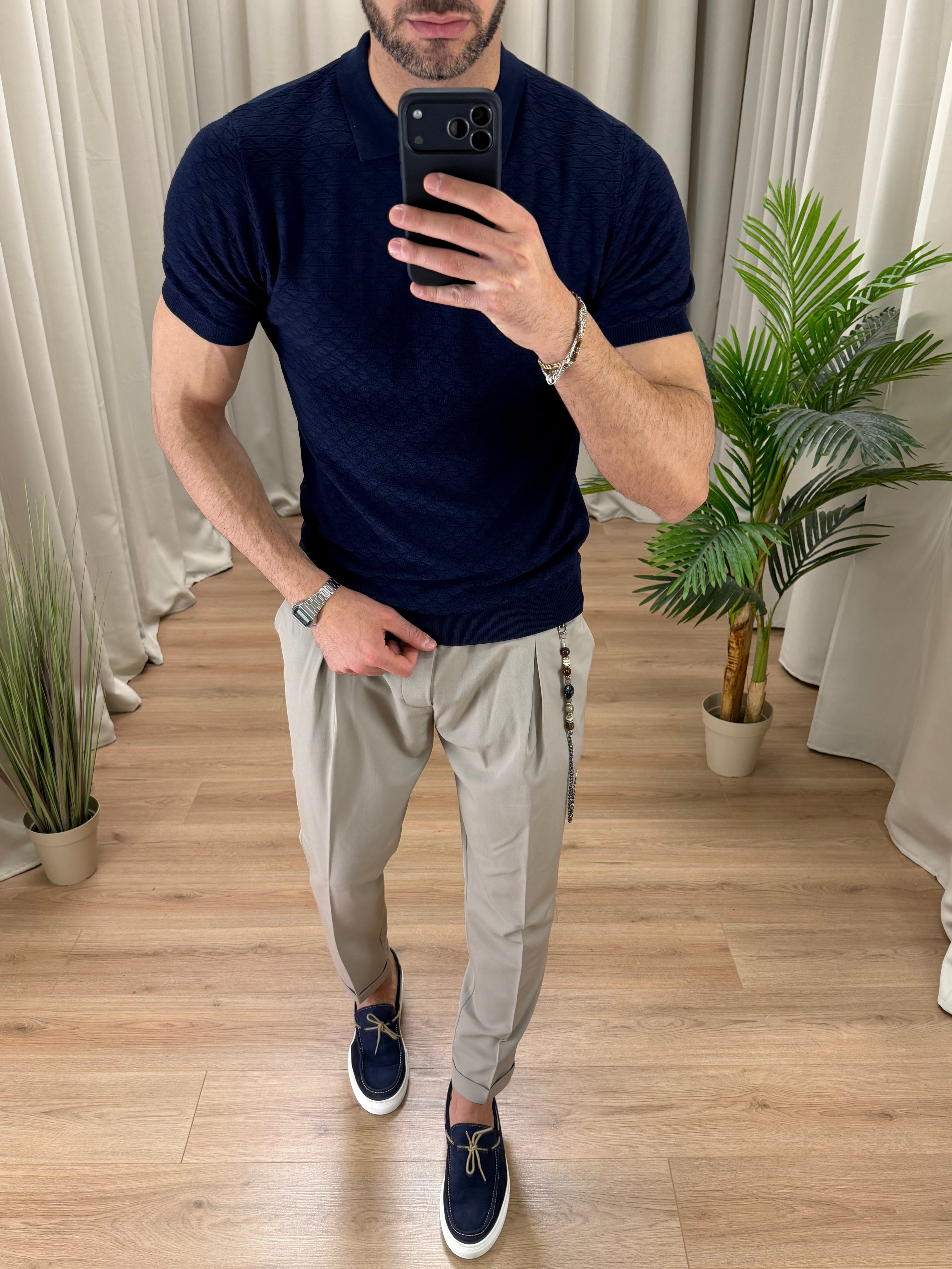 Polo Mercur in filo di viscosa con trama col. Blu notte