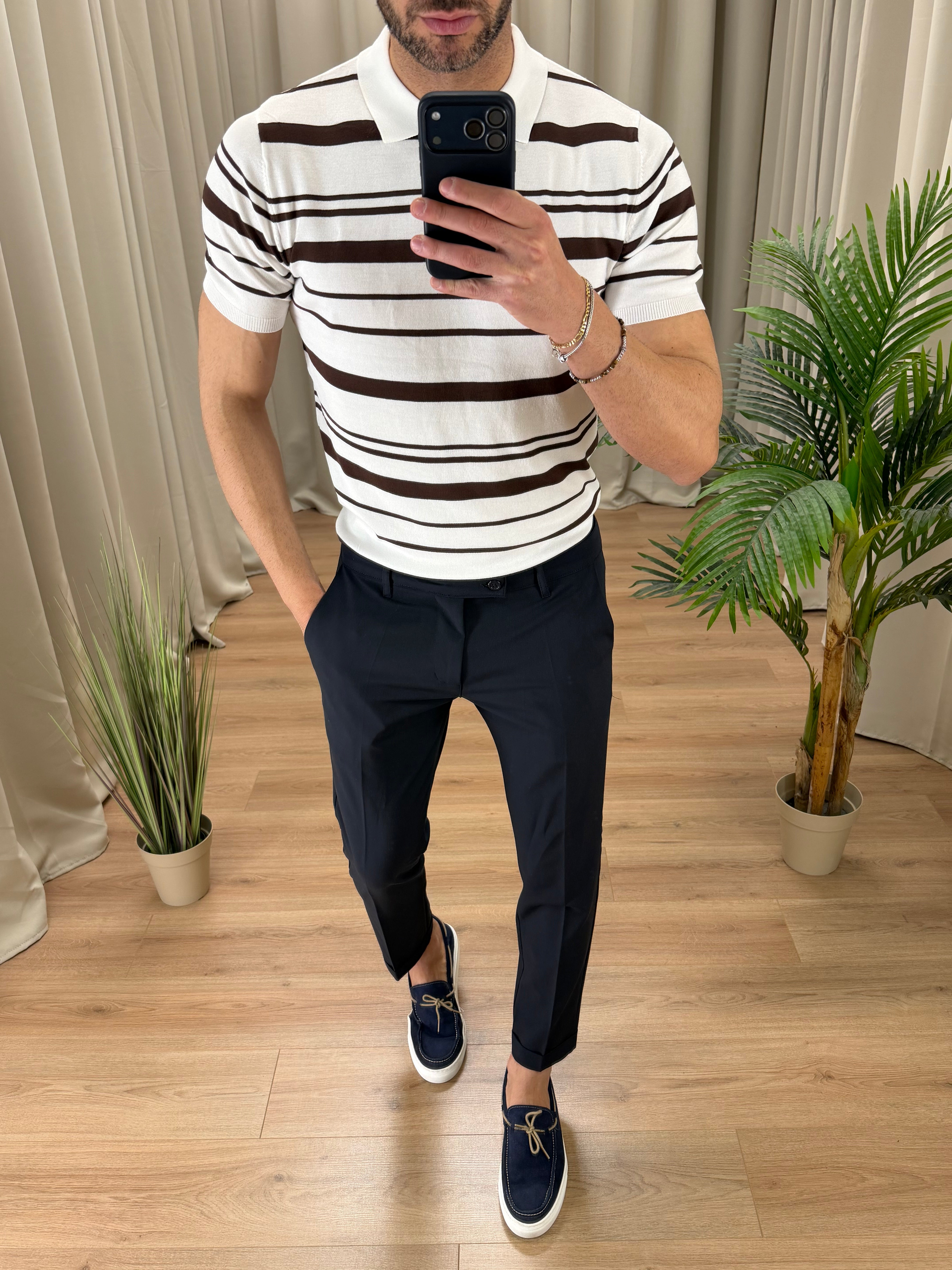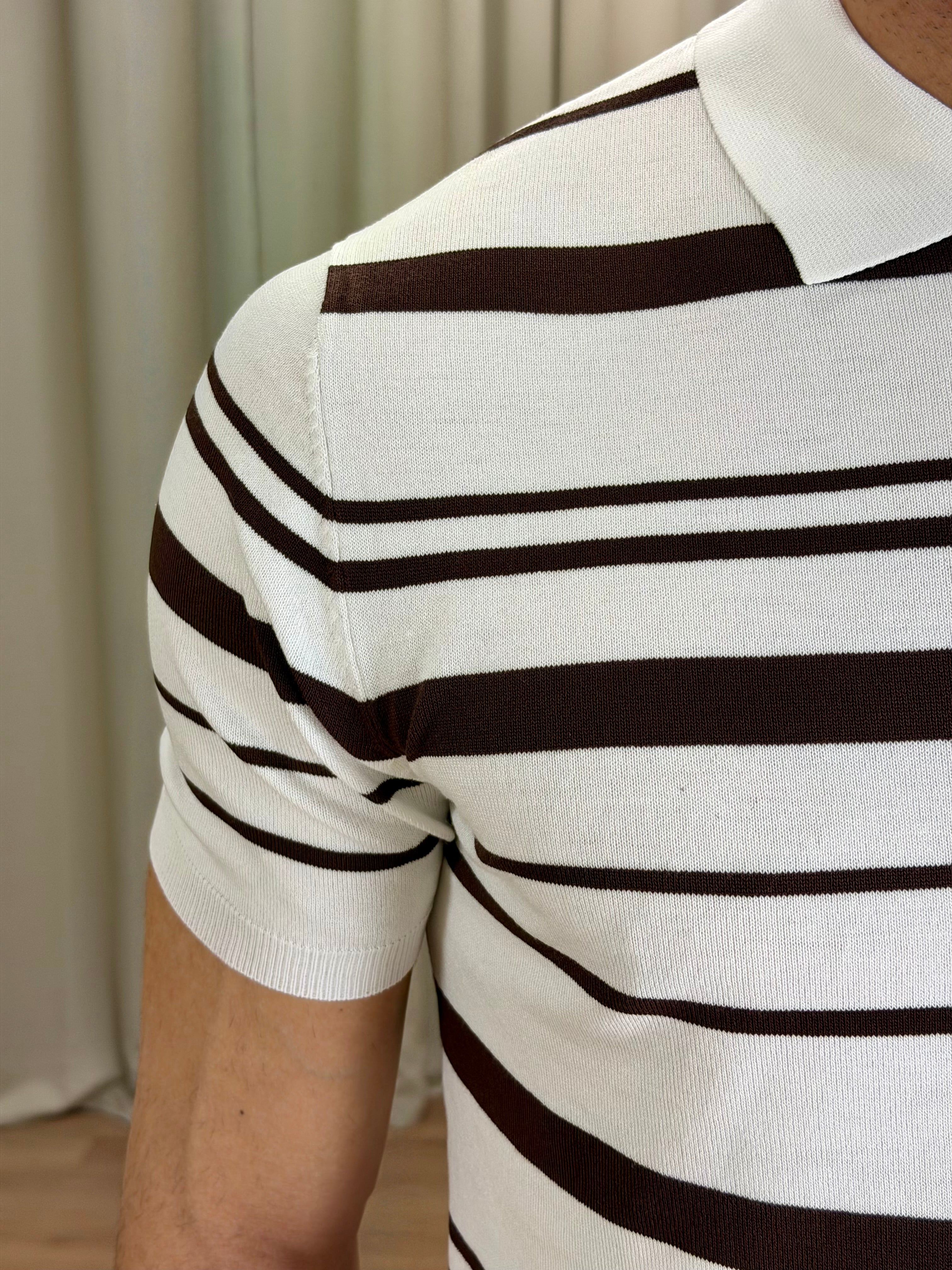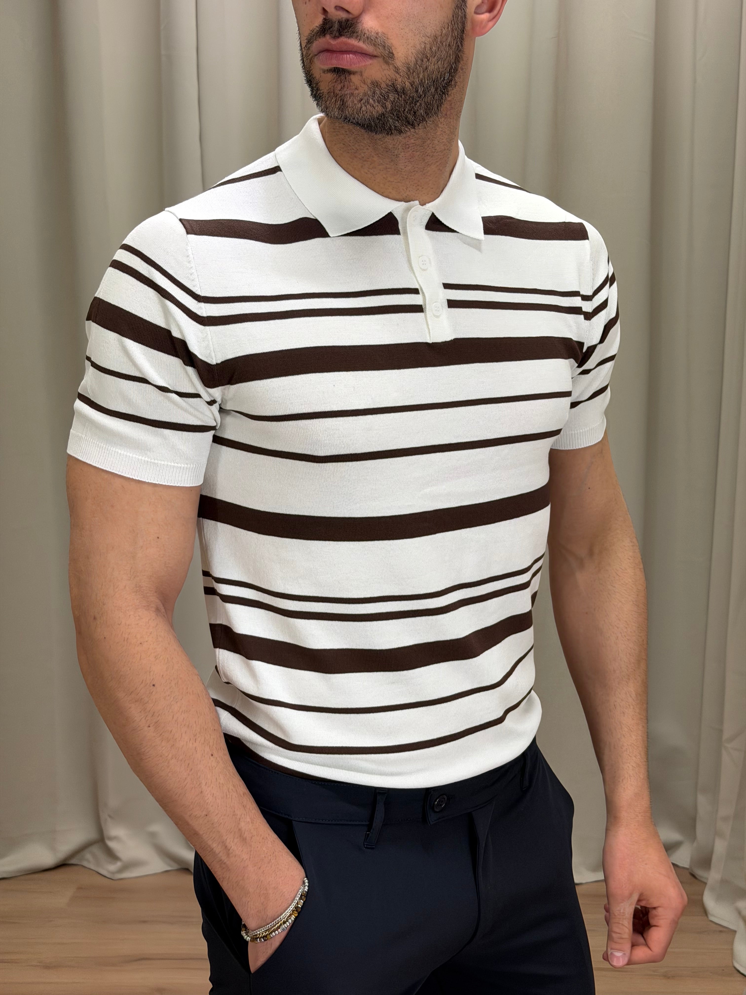 Polo Nigh in filo di viscosa a righe col. Bianco