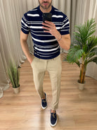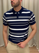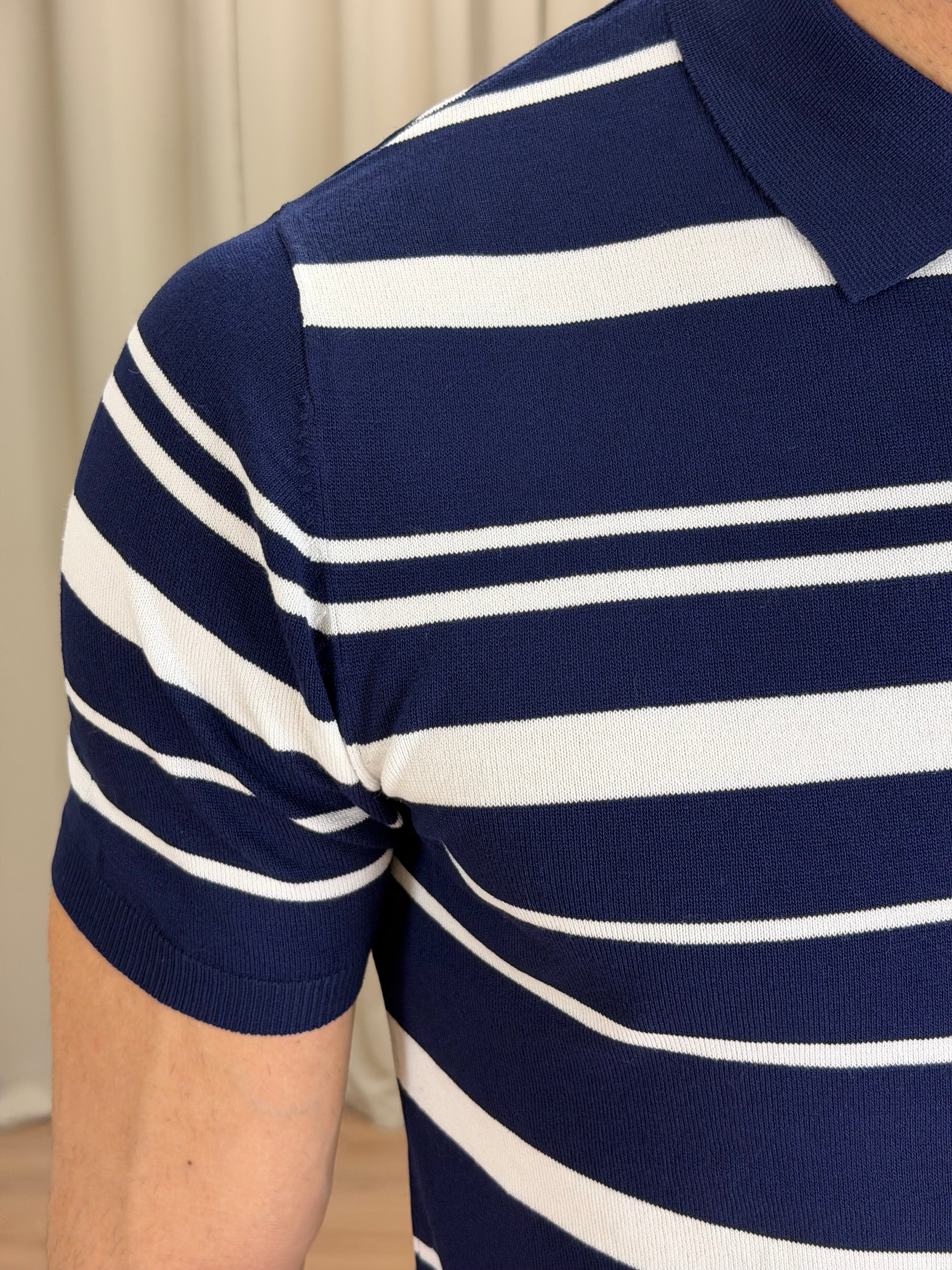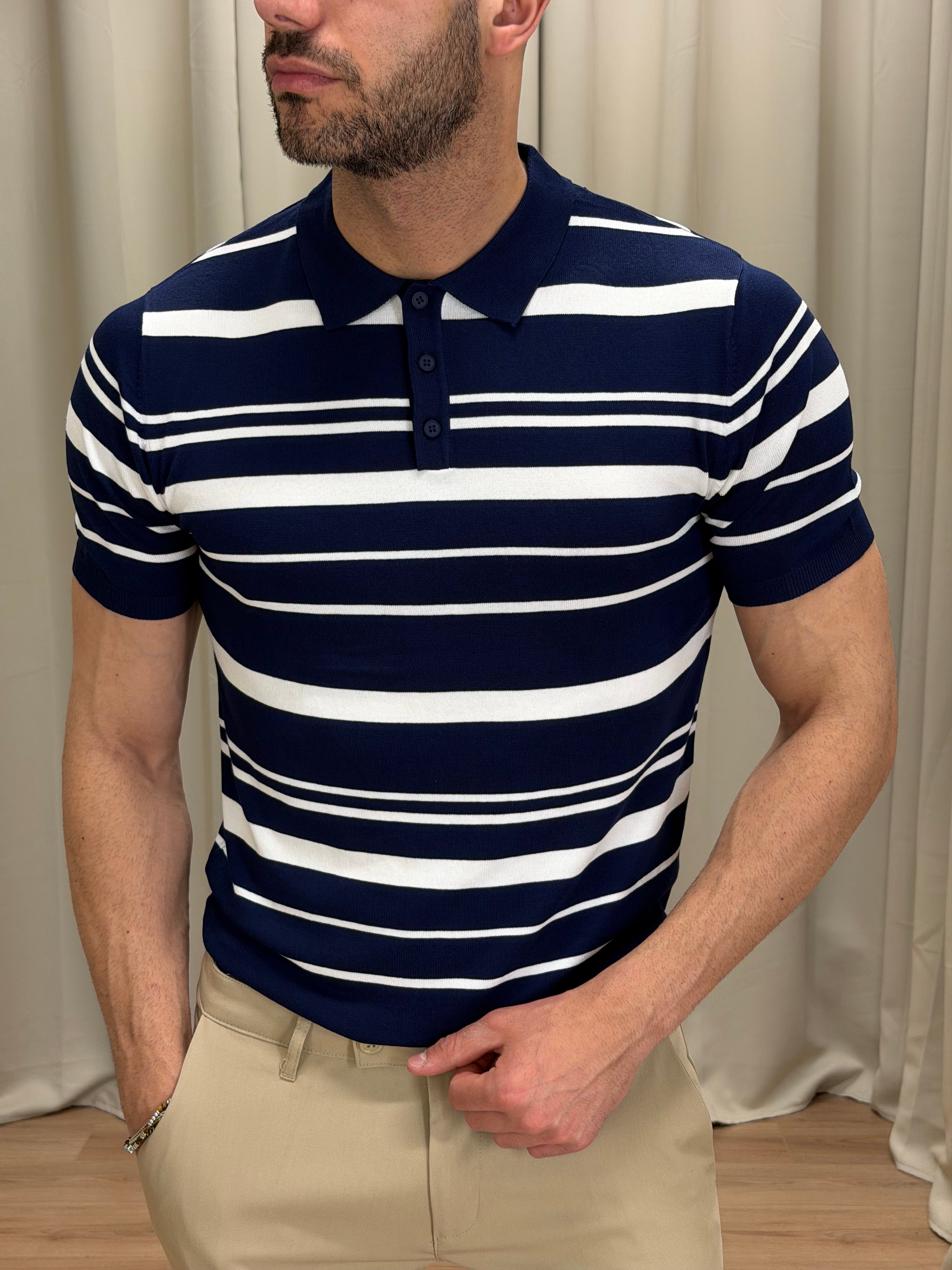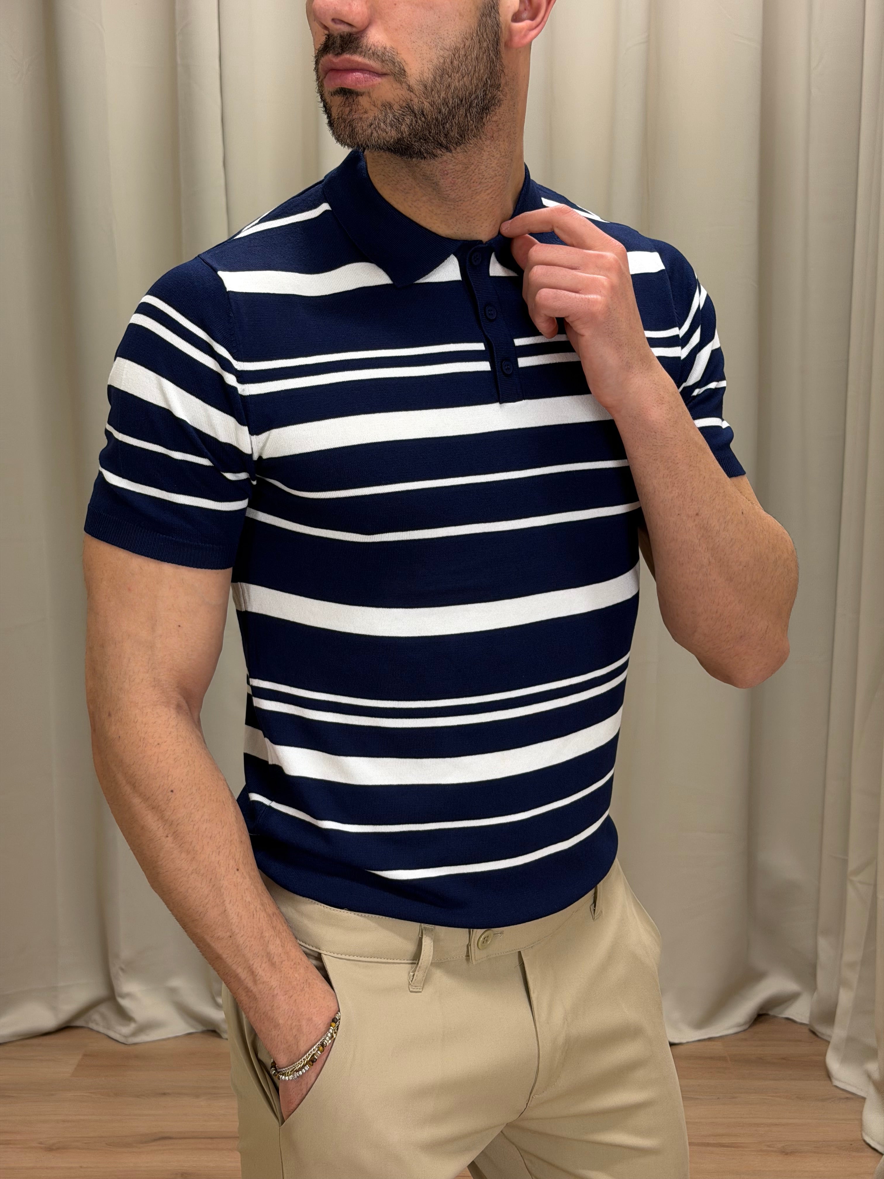 Polo Nigh in filo di viscosa a righe col. Blu