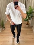 Il modello è alto 189 cm e pesa 89 Kg. Indossa la taglia XL