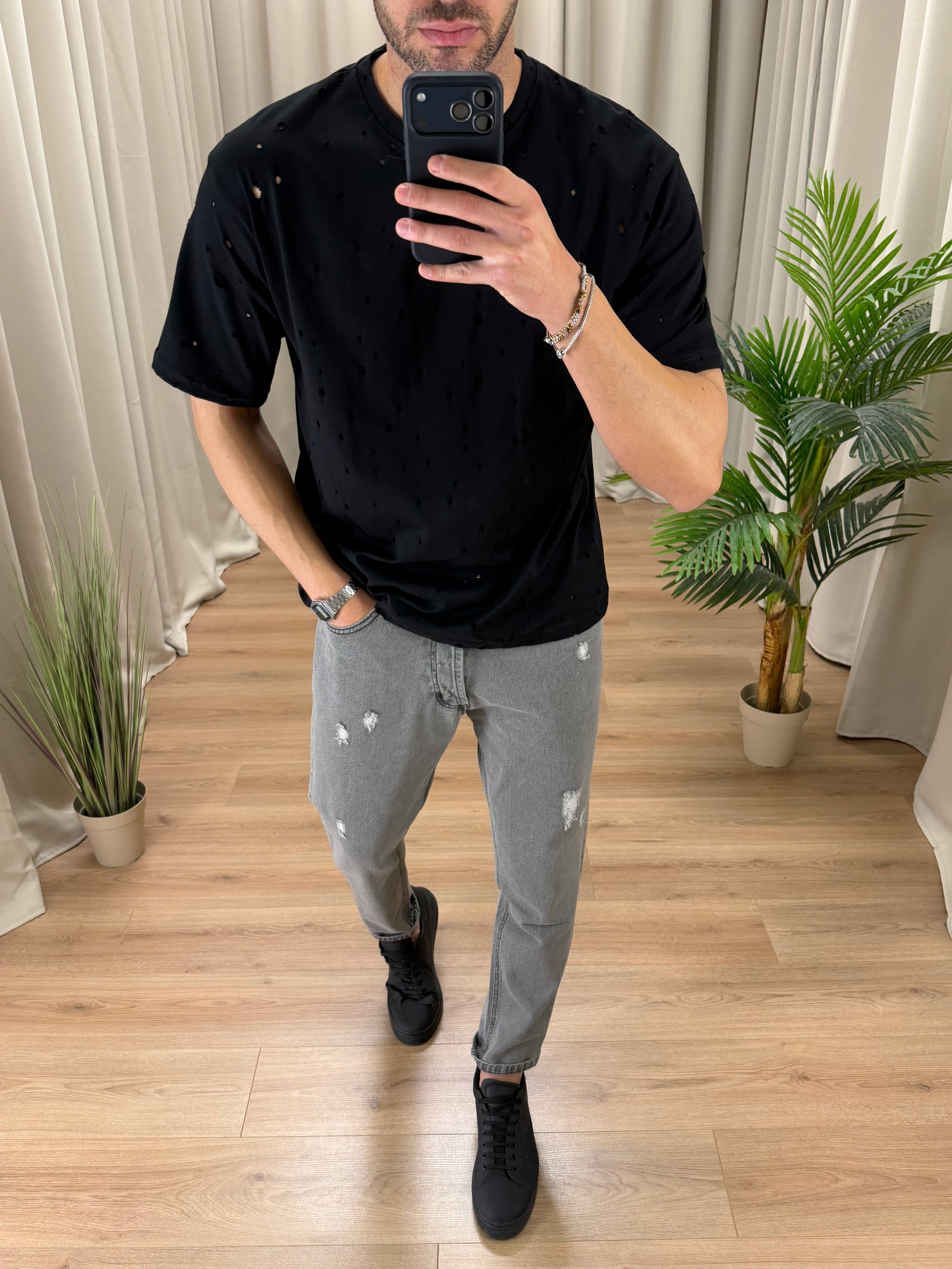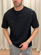 T-shirt con fori OVER cotone premium col. Nero