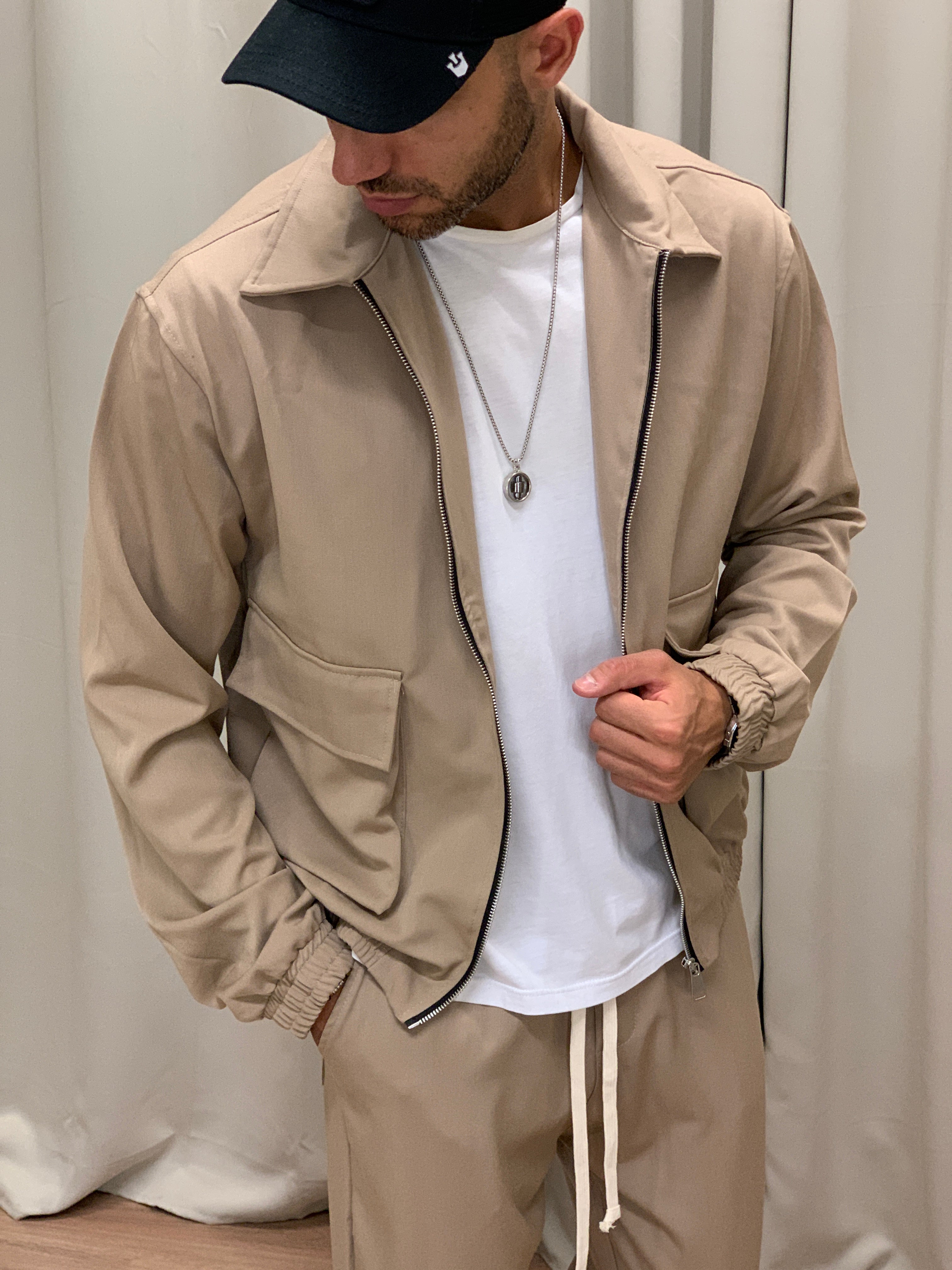 Completo Over 143 Camicia con Zip + Pantalone col. Beige