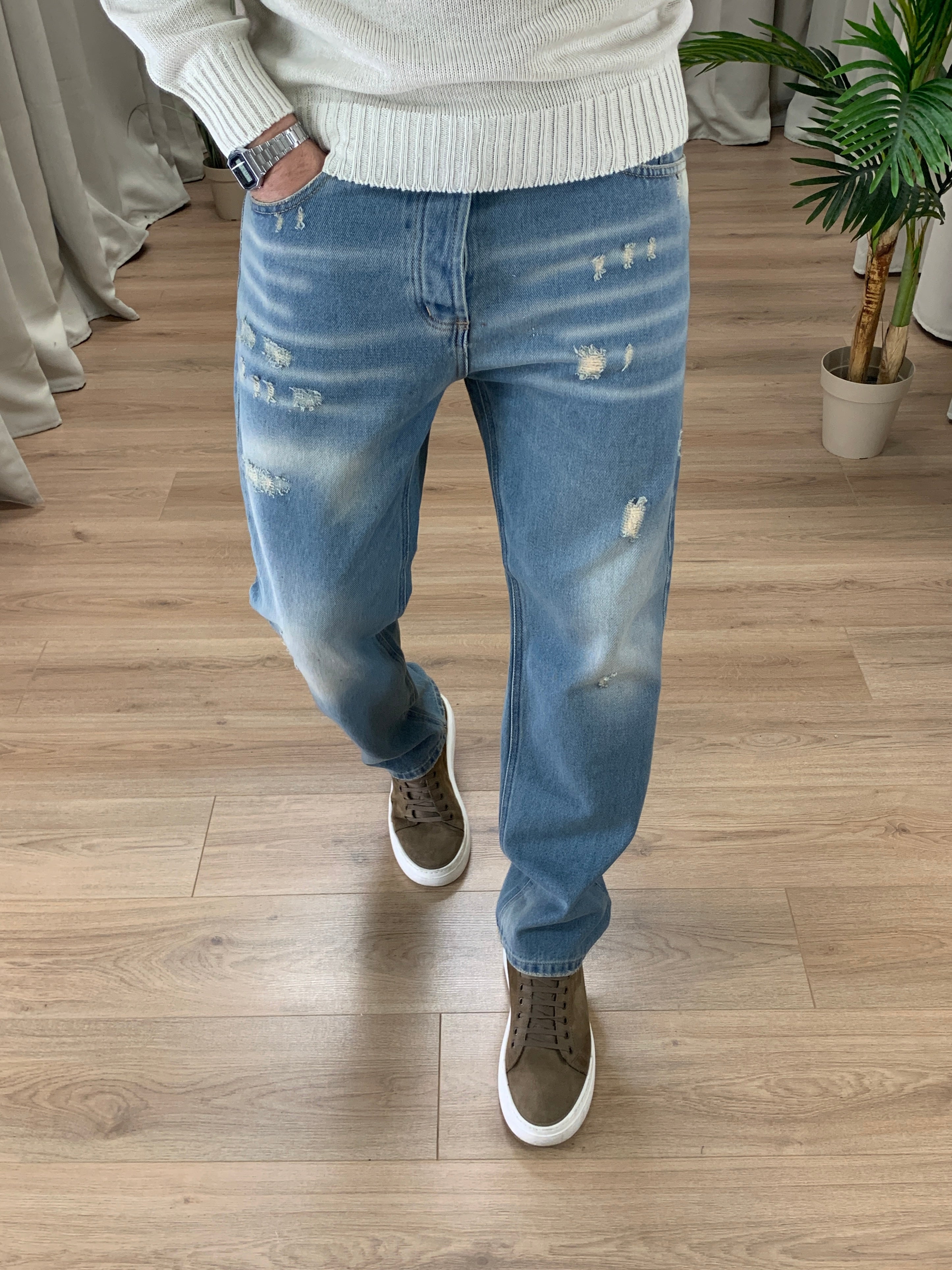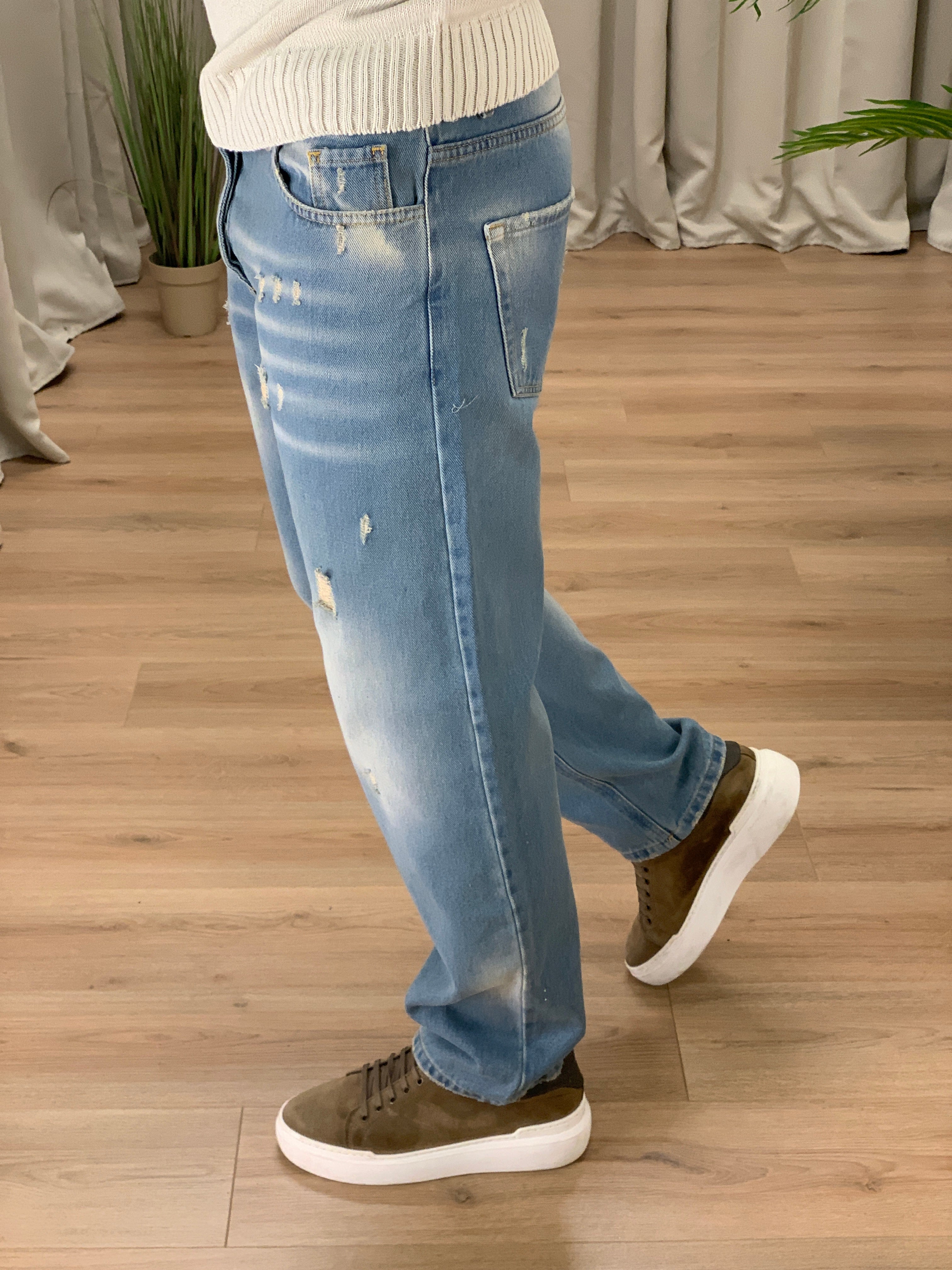 Jeans Baggy leggere sfumature e abrasioni