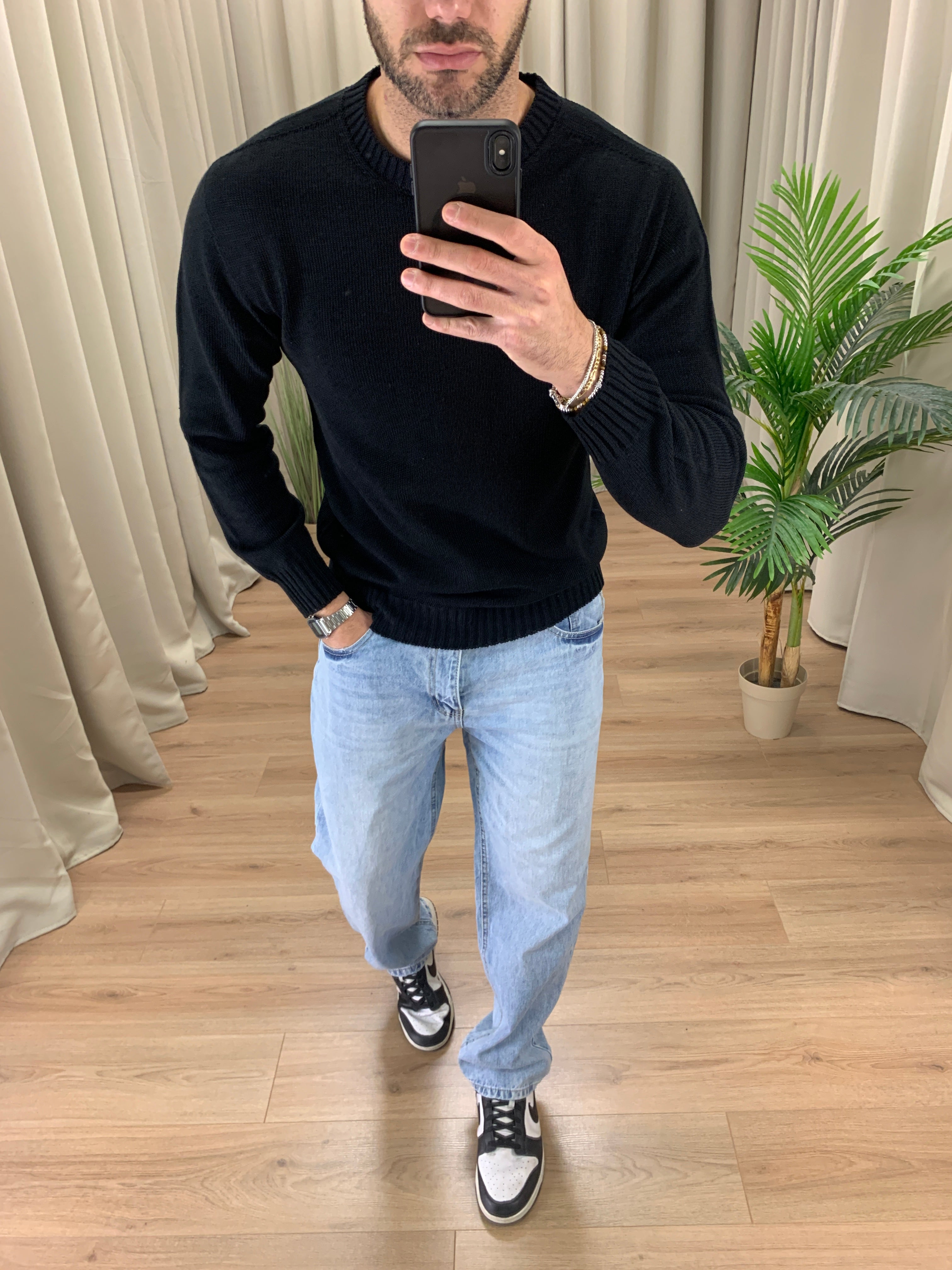 Il modello è alto 189 cm e pesa 89 Kg. Indossa la taglia 50