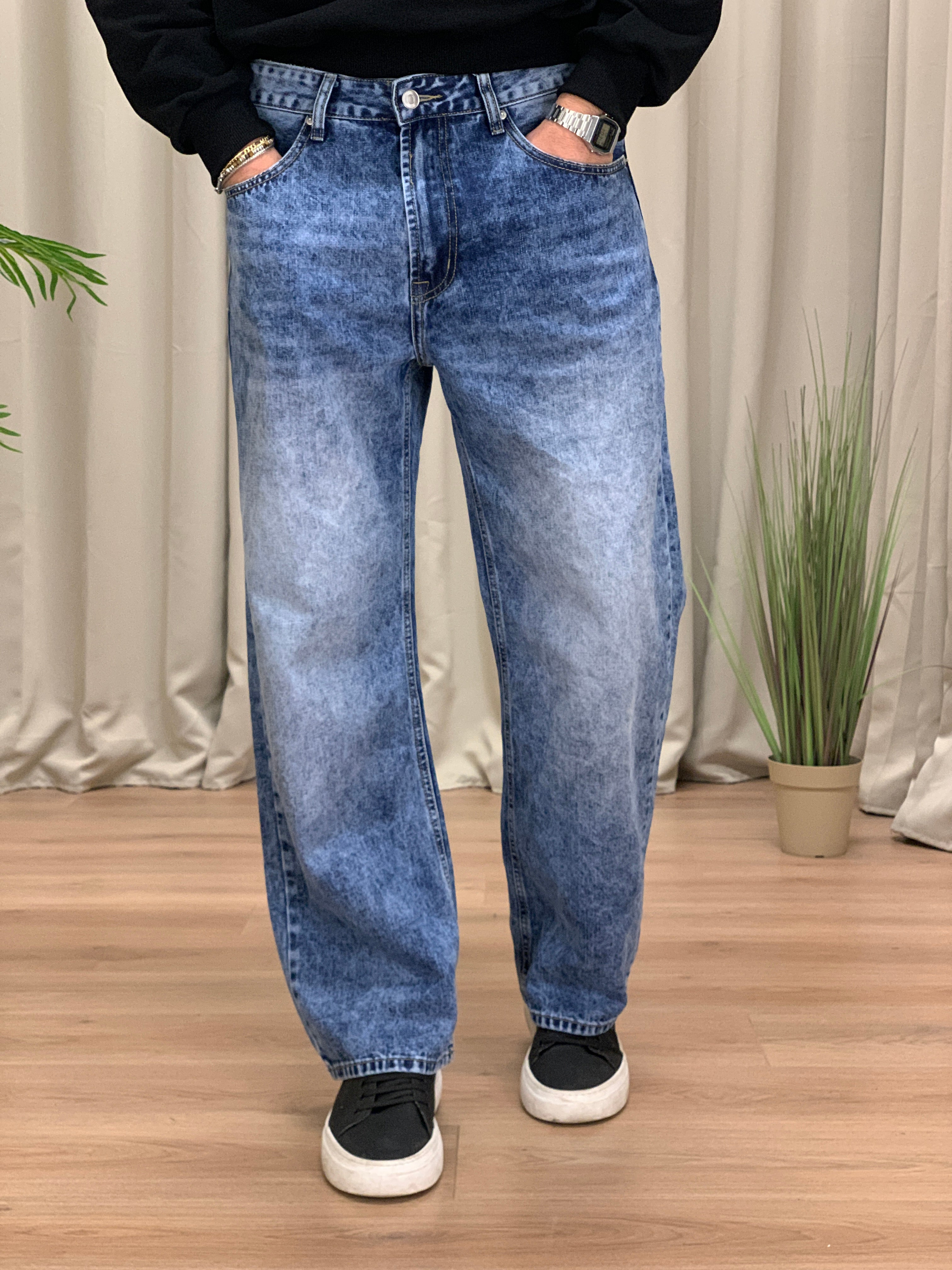 Jeans Levac lavaggio tamponato baggy fit col. Denim