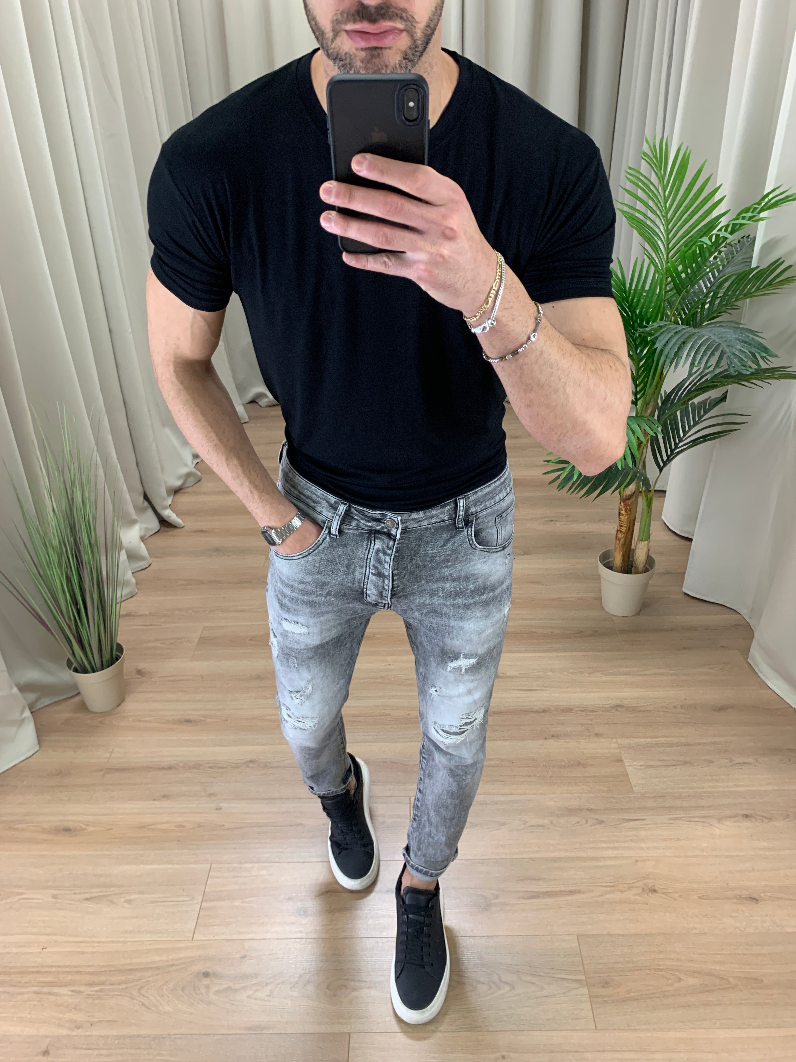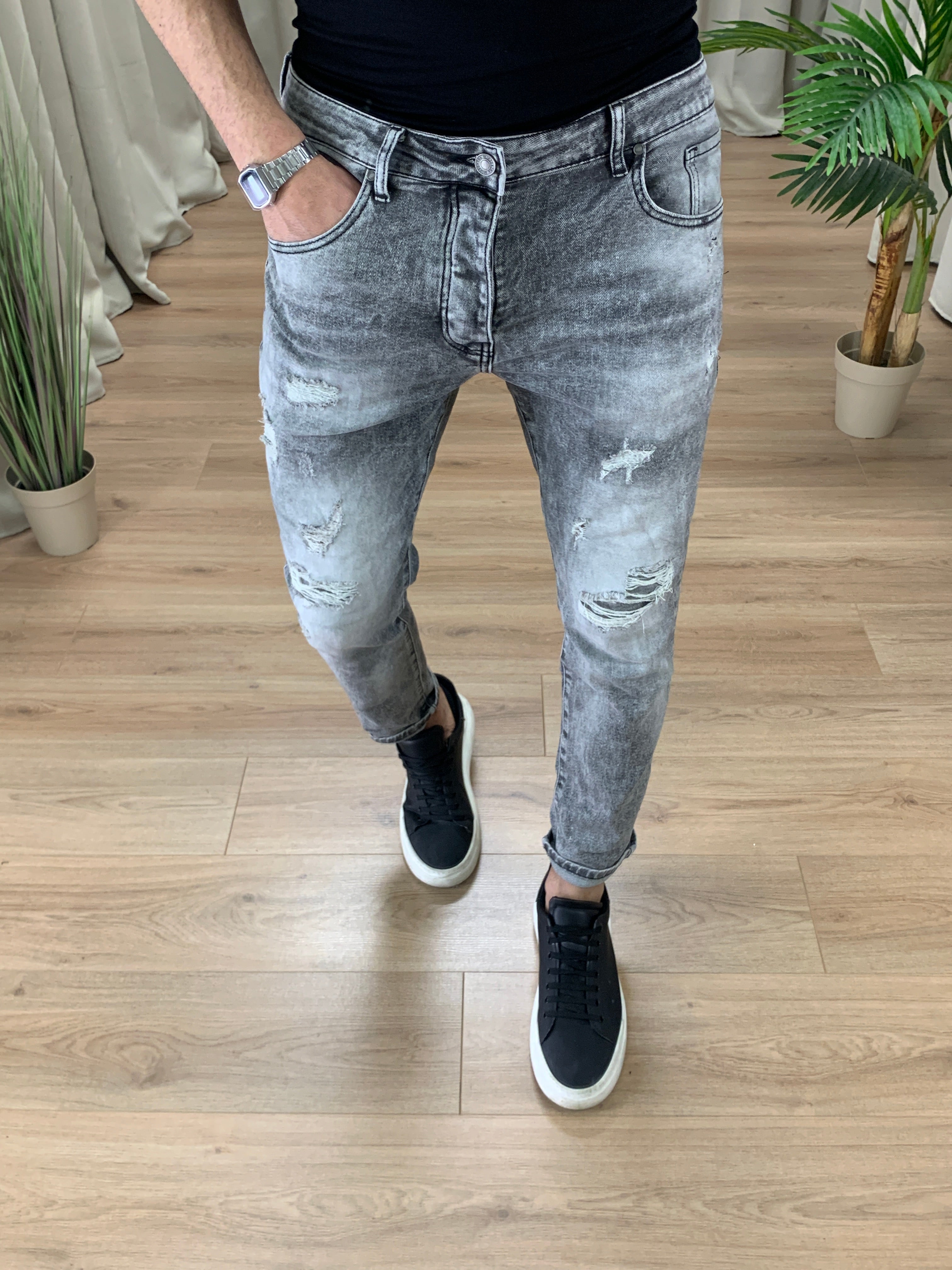 Jeans Zeno Regular fit con abrasioni col. Antracite