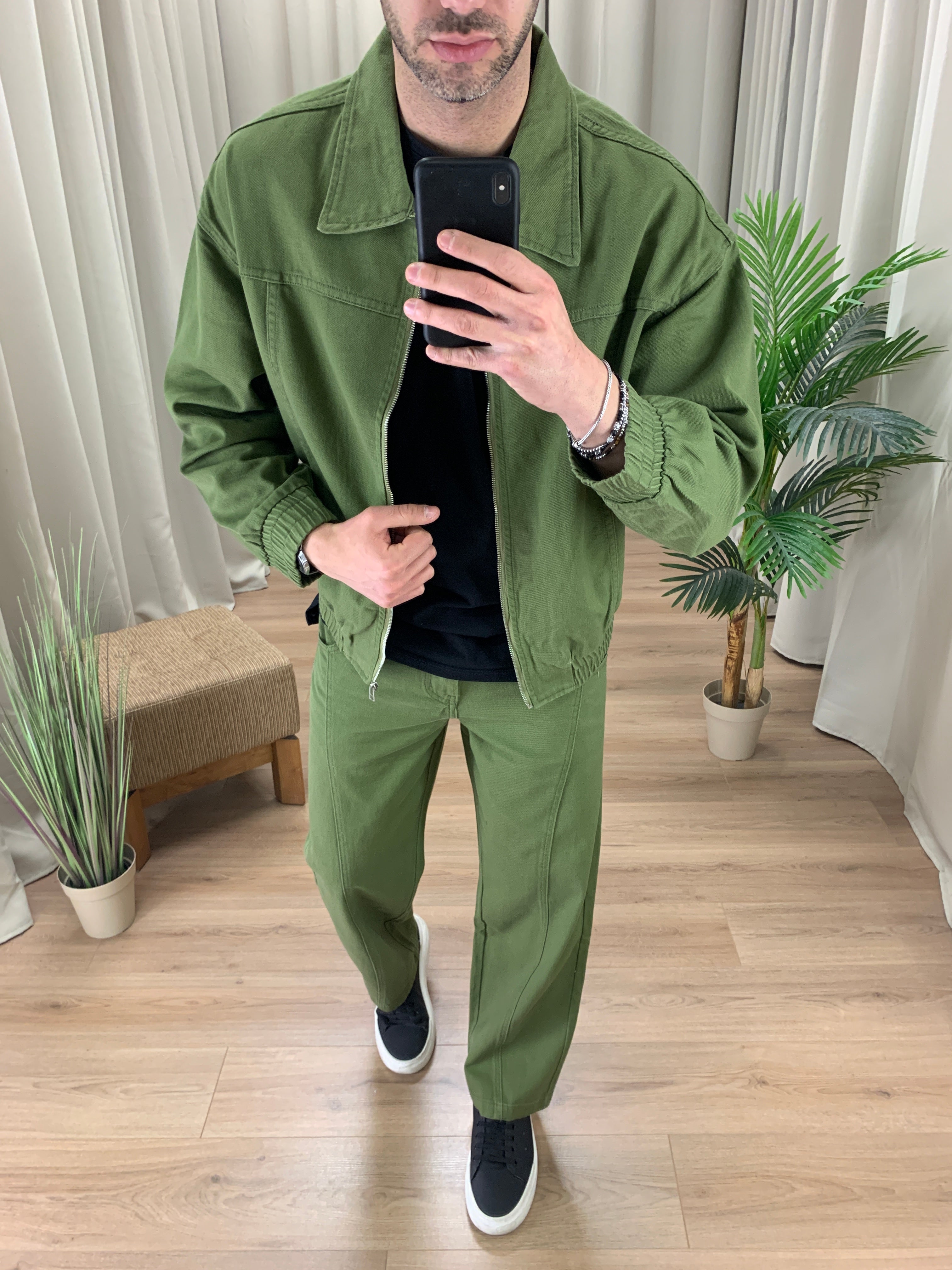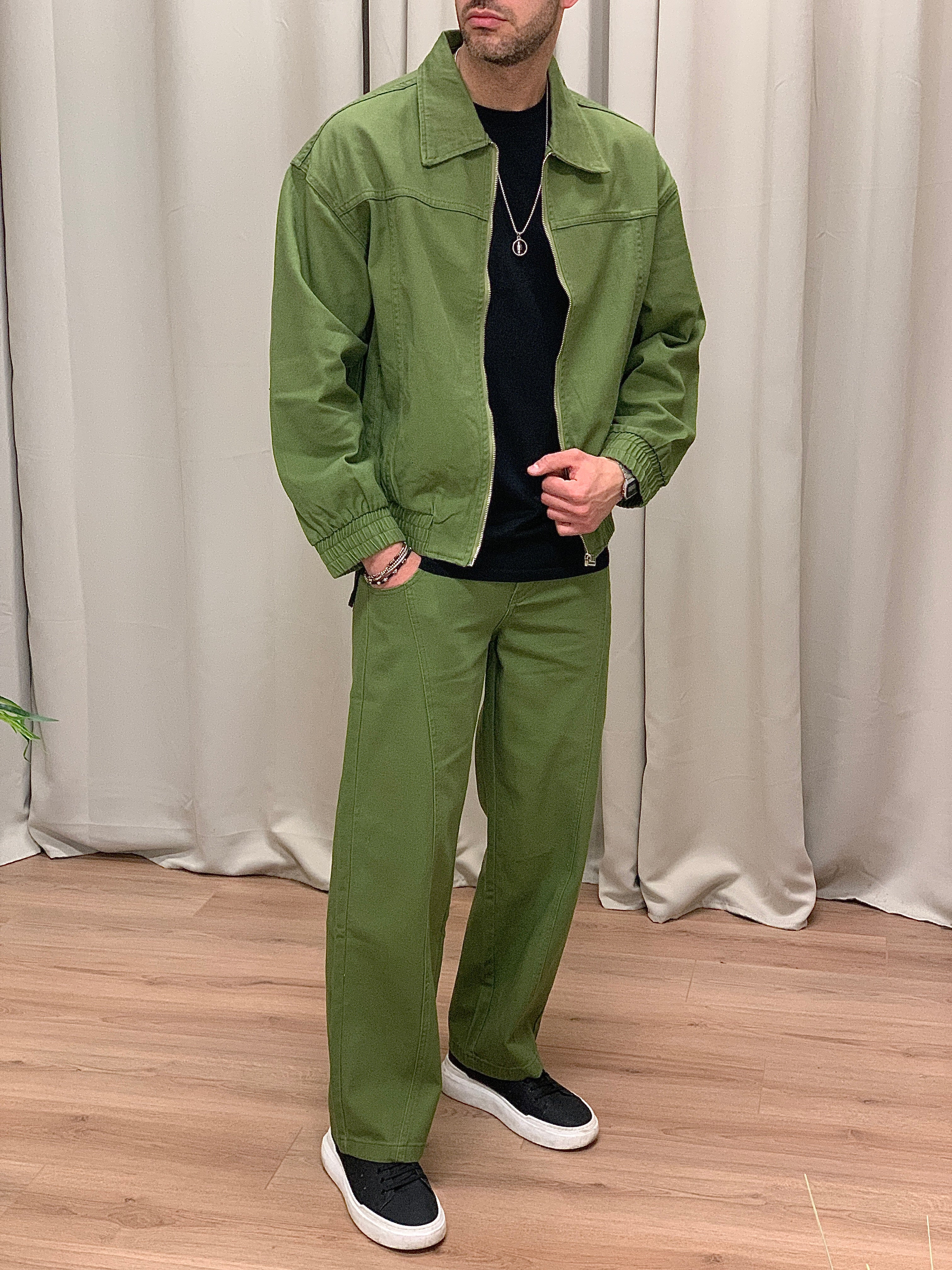 Completo Miroslav in Denim Jeans + Giacca col. Verde Militare