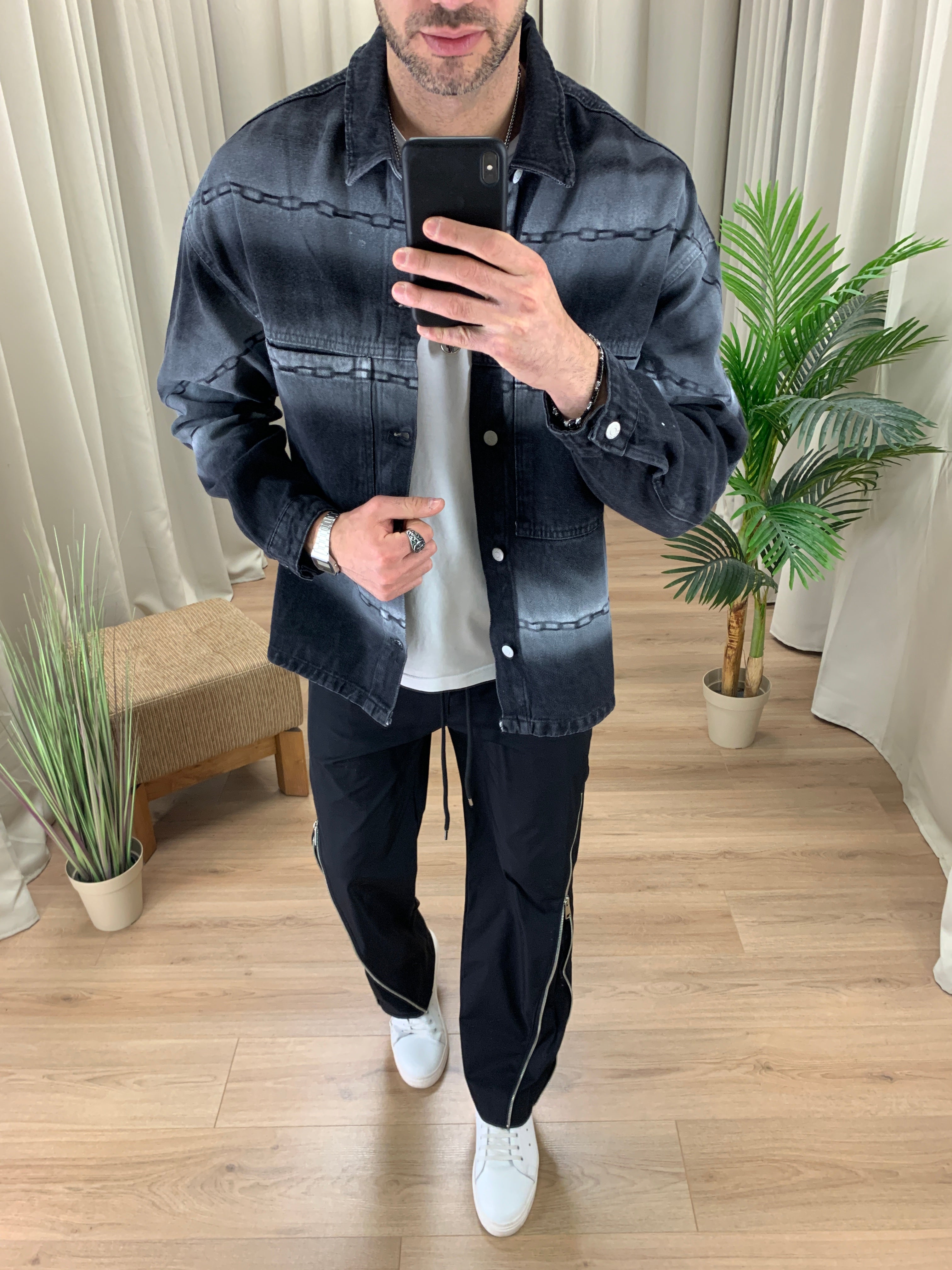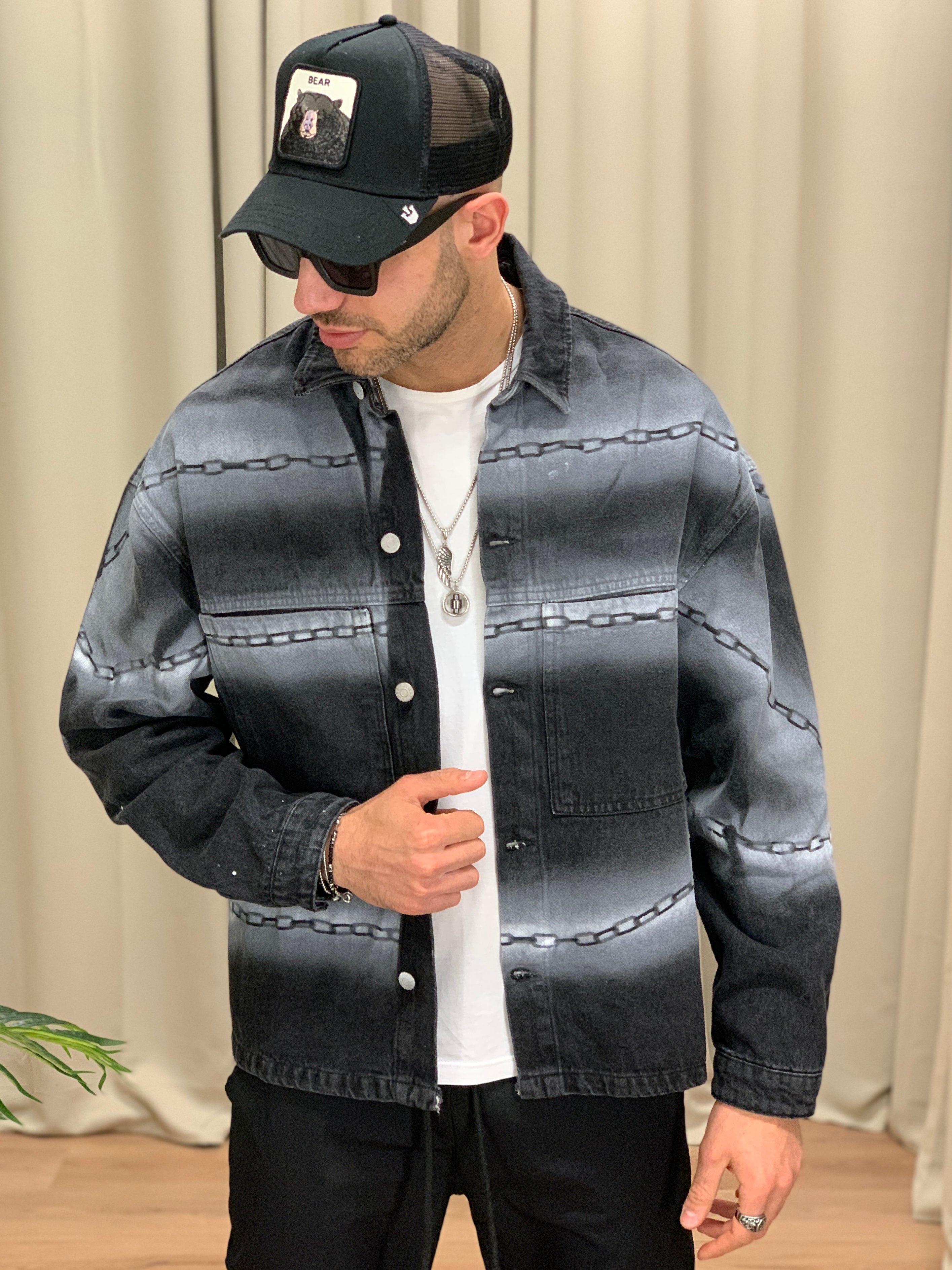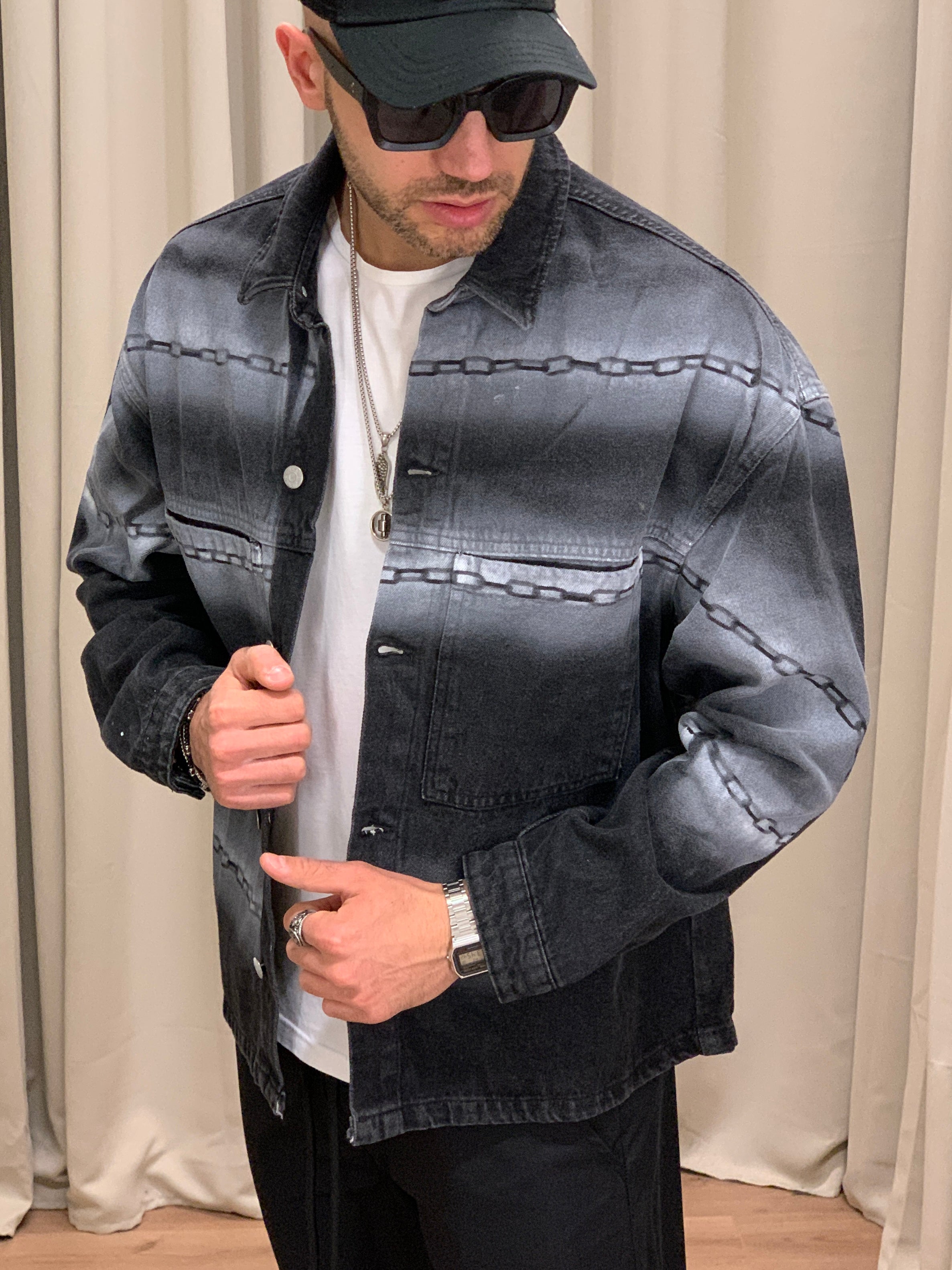 Giacca di Jeans con fantasia Catena col. Nero