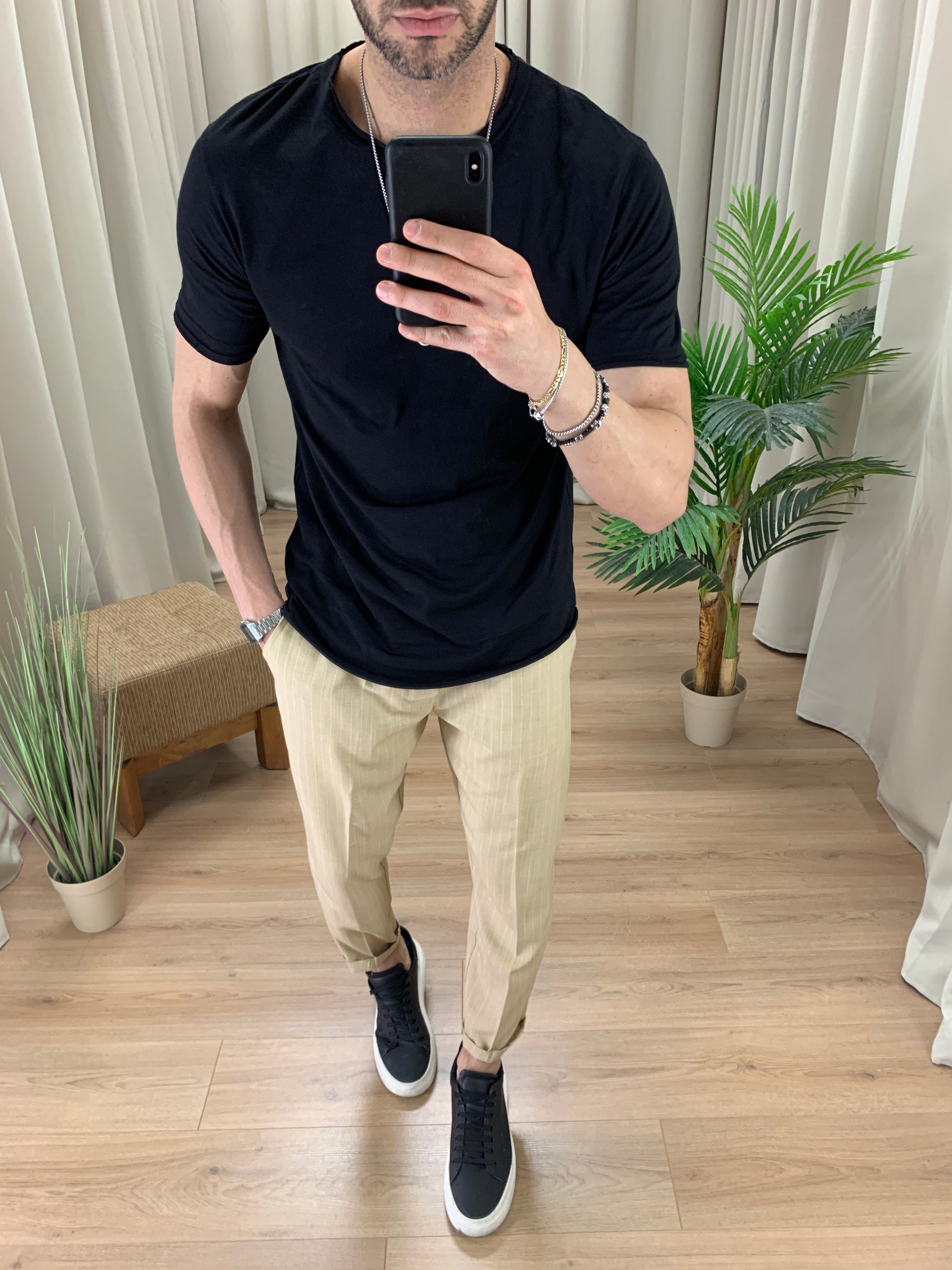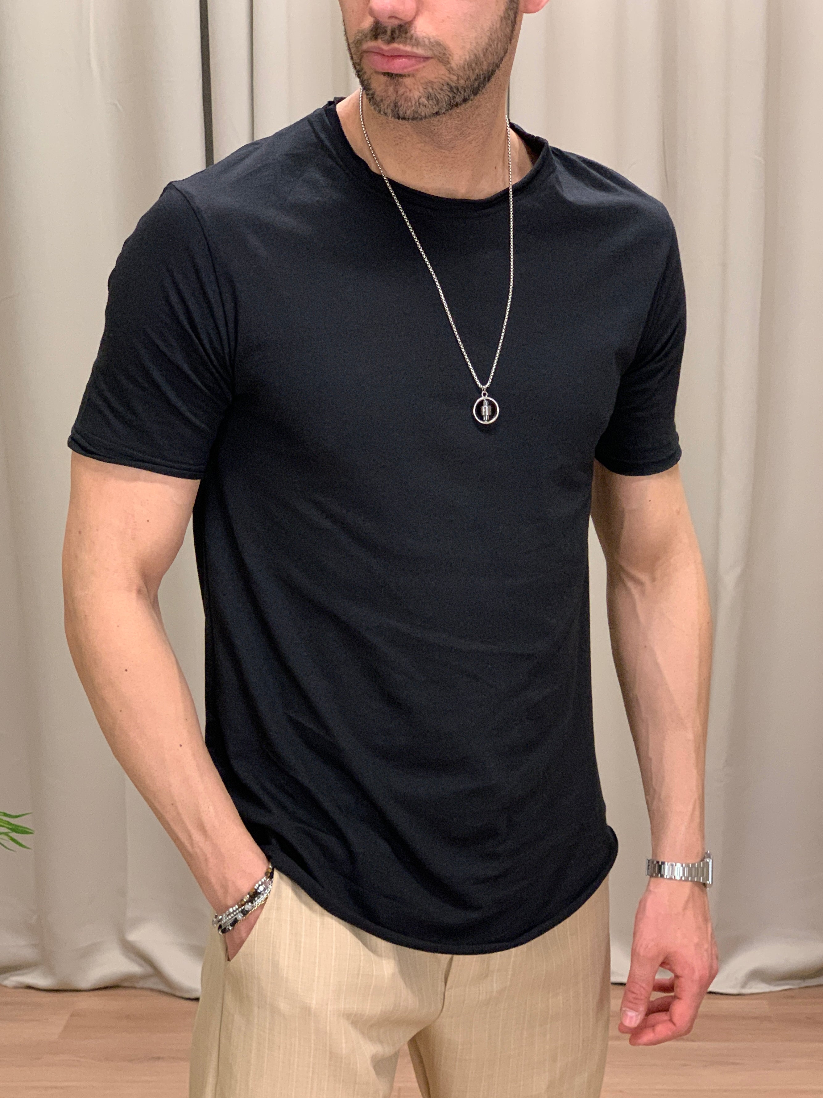 T-shirt Basic girocollo stondata in vita a taglio vivo