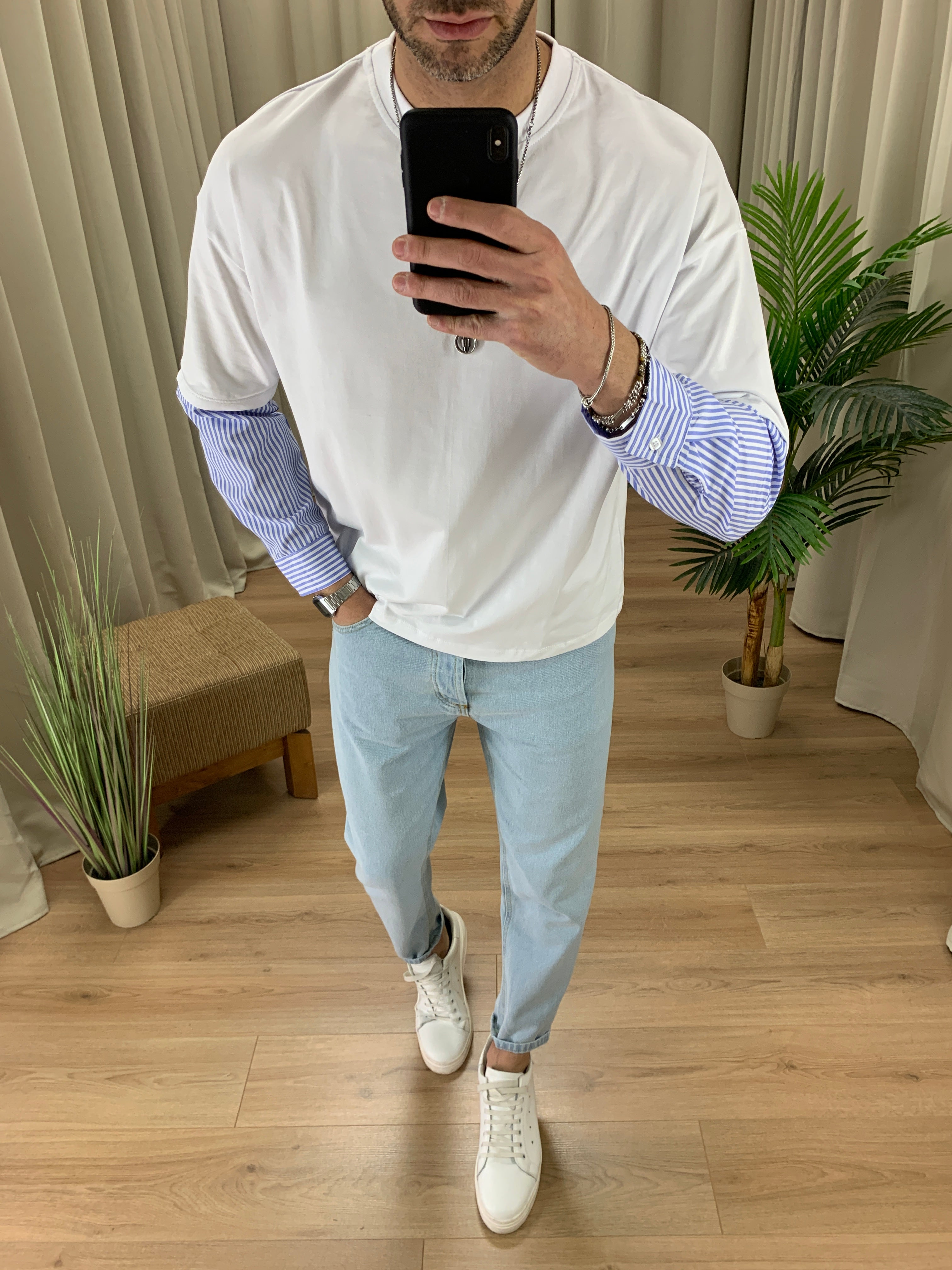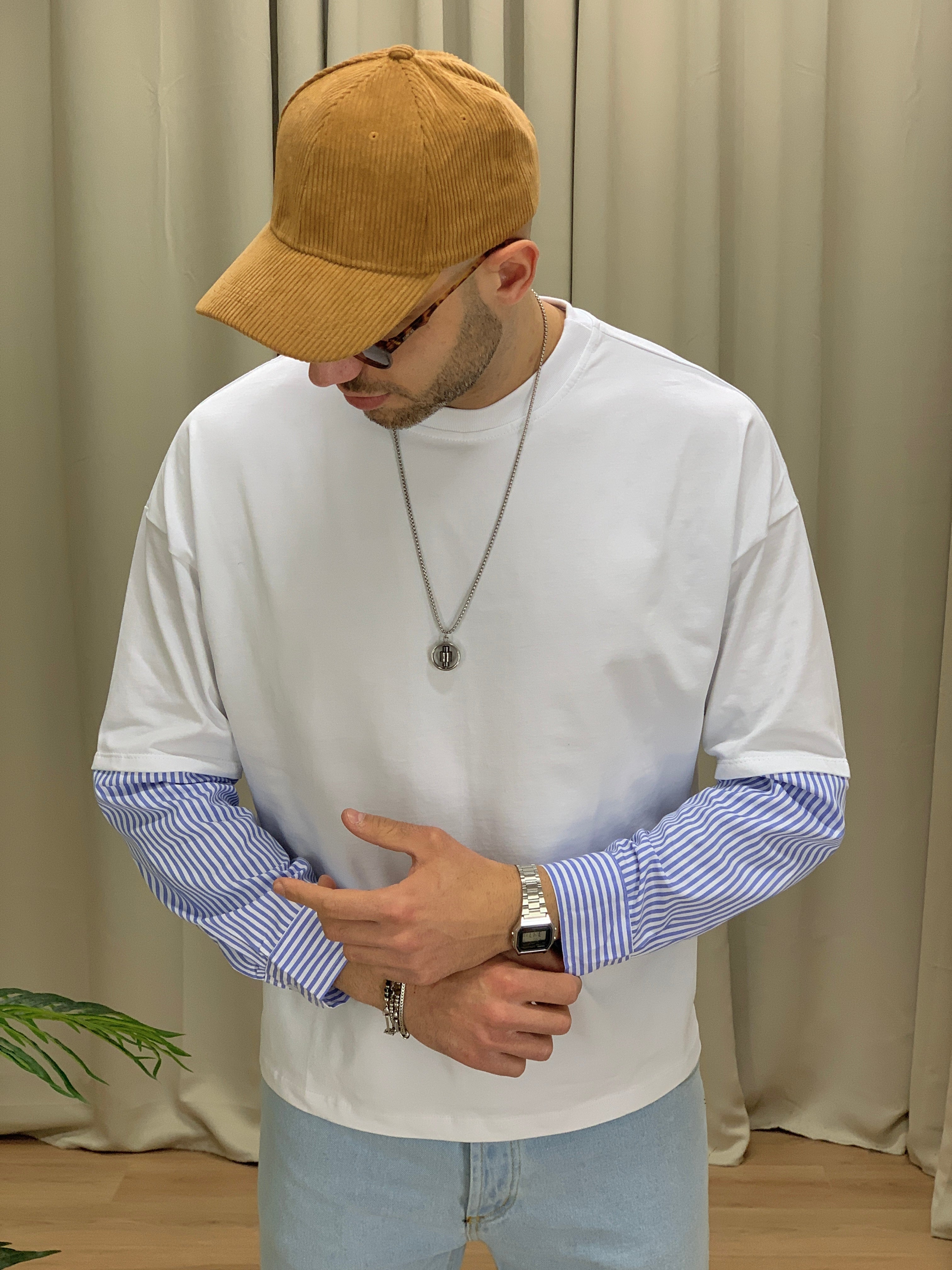 T-shirt in Cotone Pesante a Manica Lunga col. Bianco