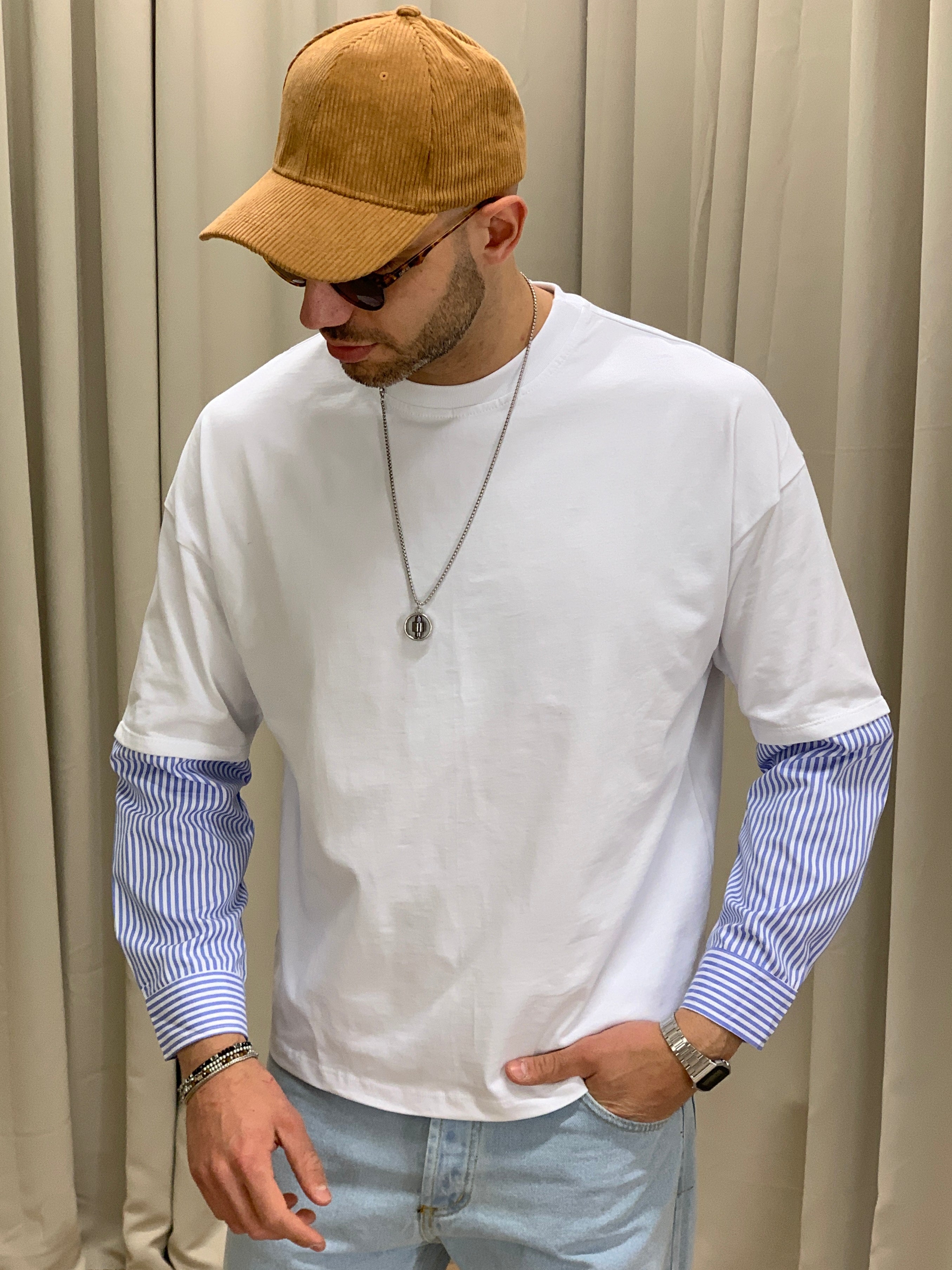 T-shirt girocollo in Cotone pesante con Manica in camicia lunga