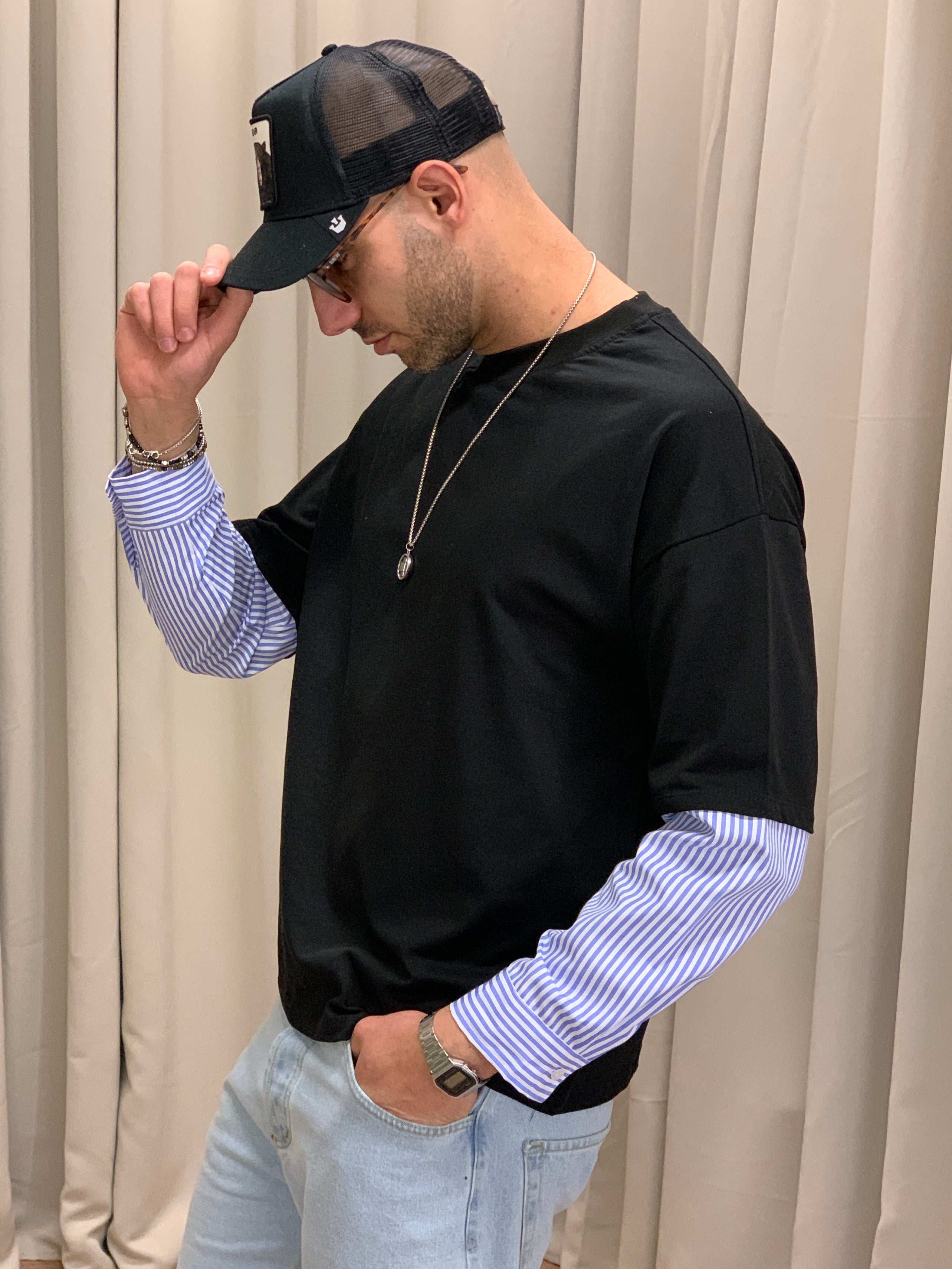 T-shirt girocollo in Cotone pesante con Manica in camicia lunga