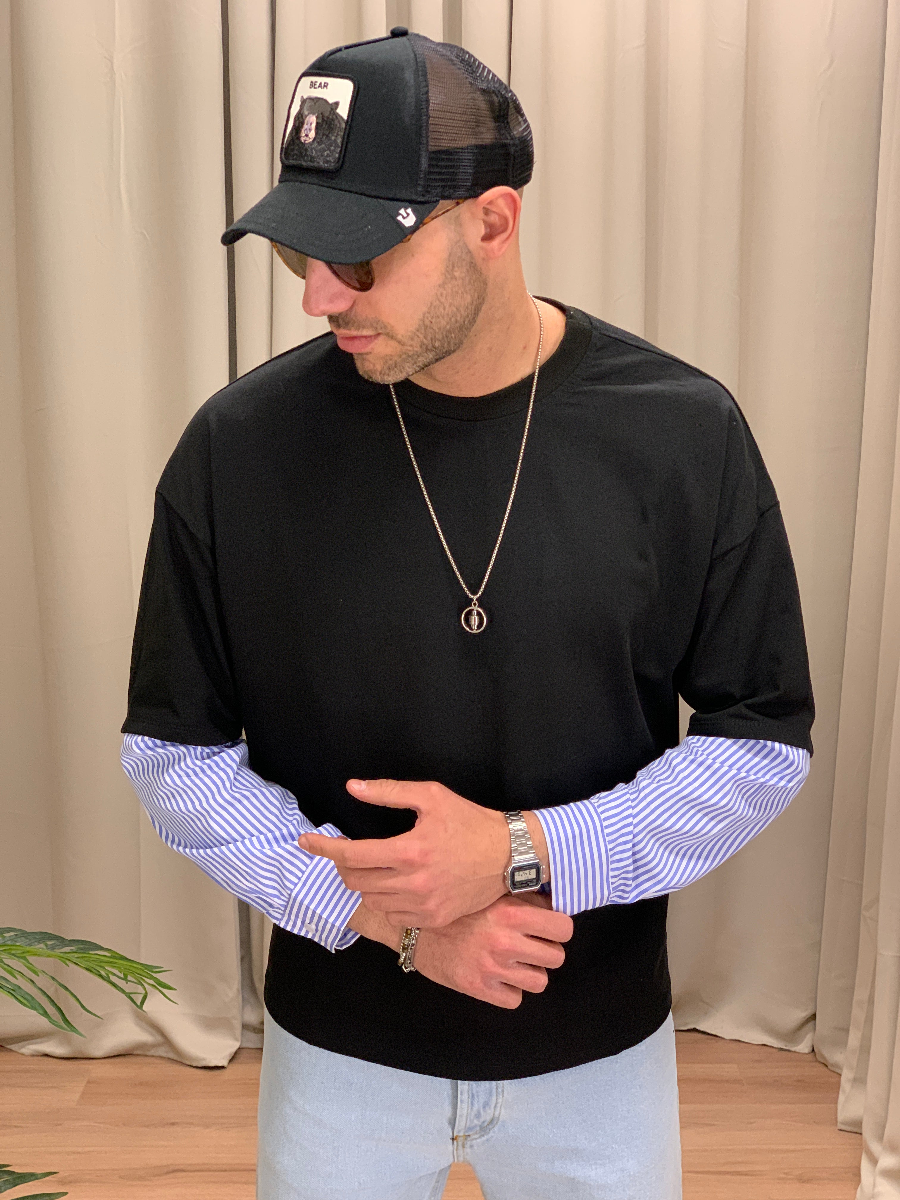 T-shirt in Cotone Pesante a Manica Lunga col. Nero
