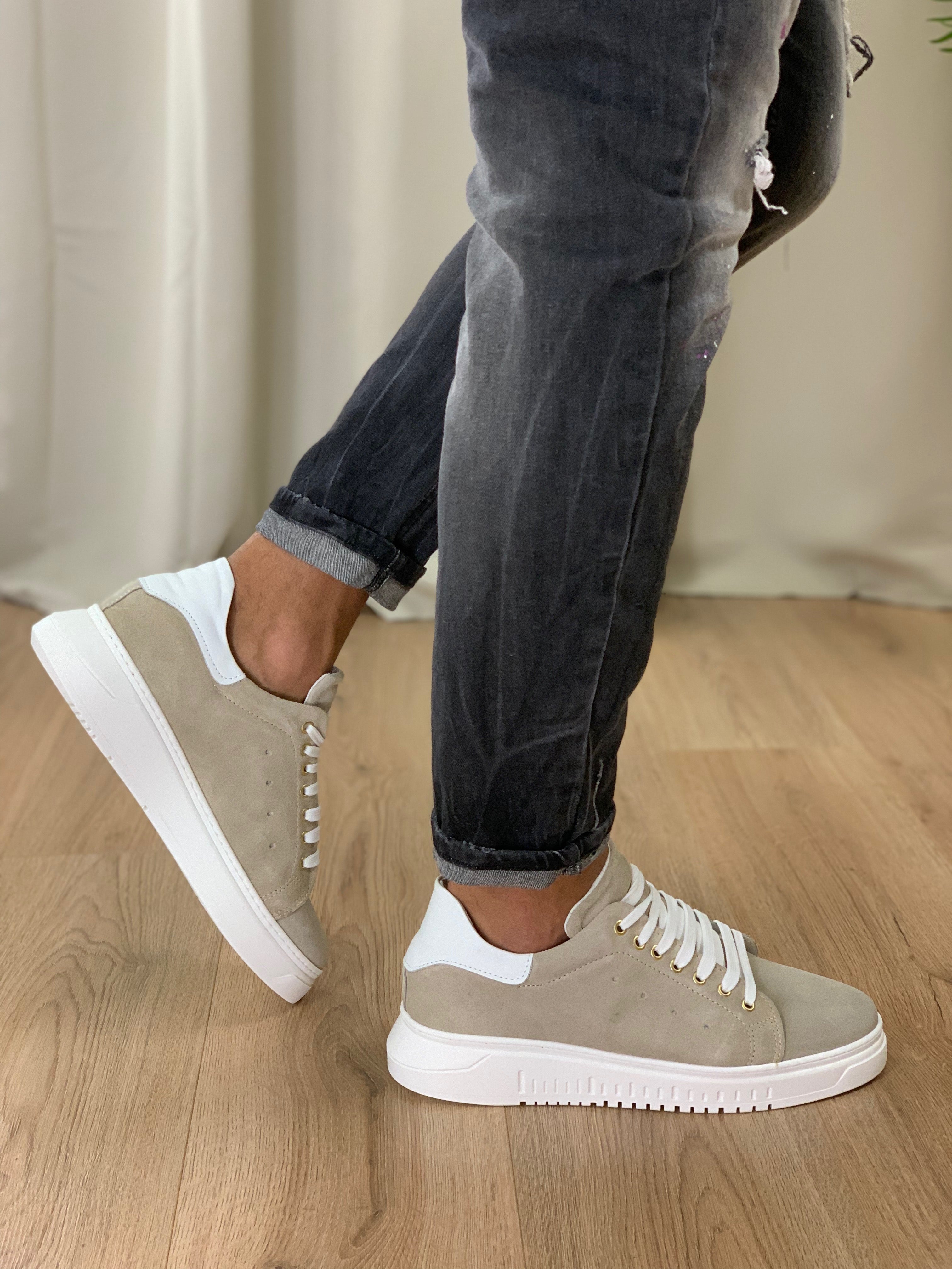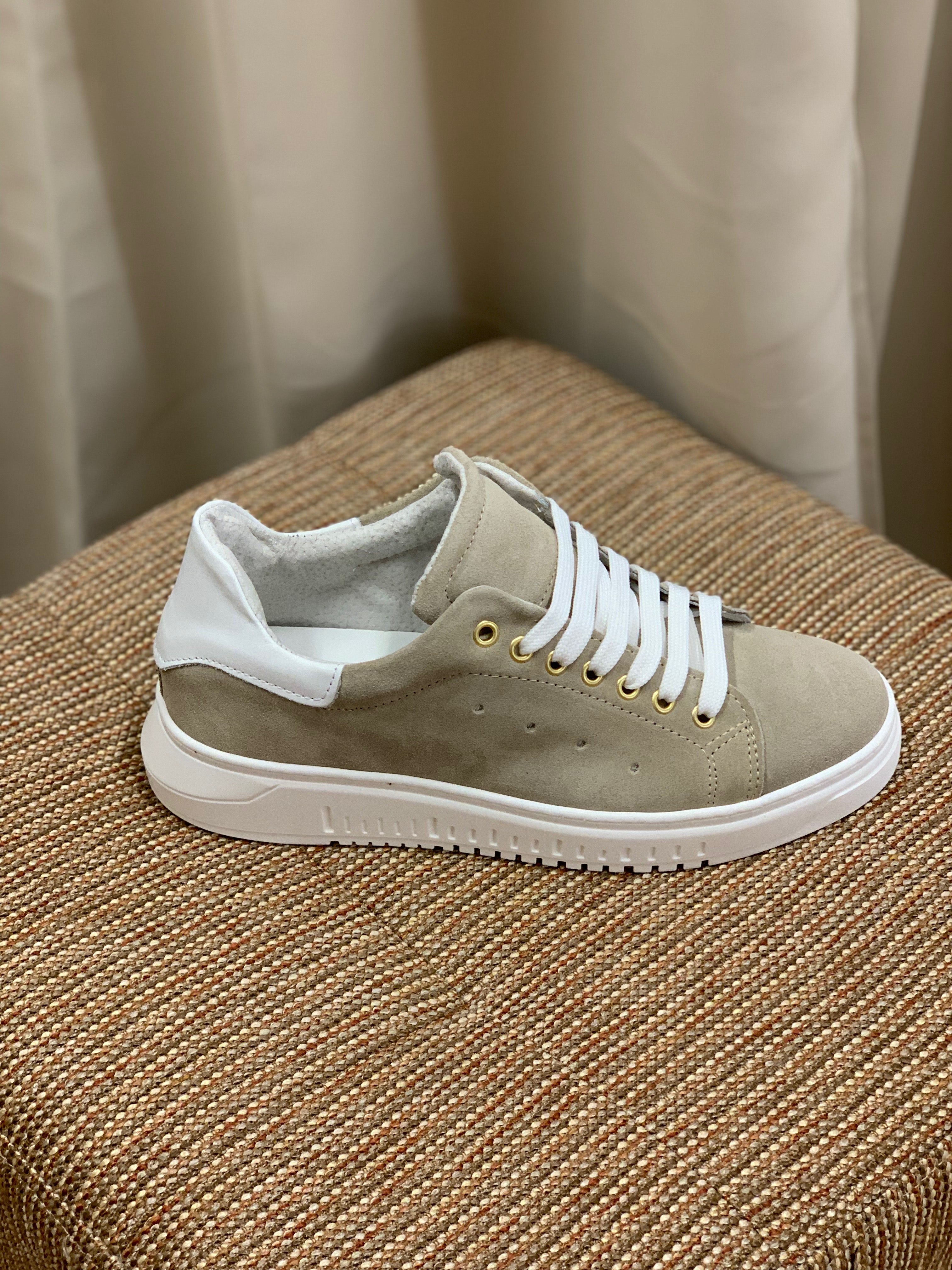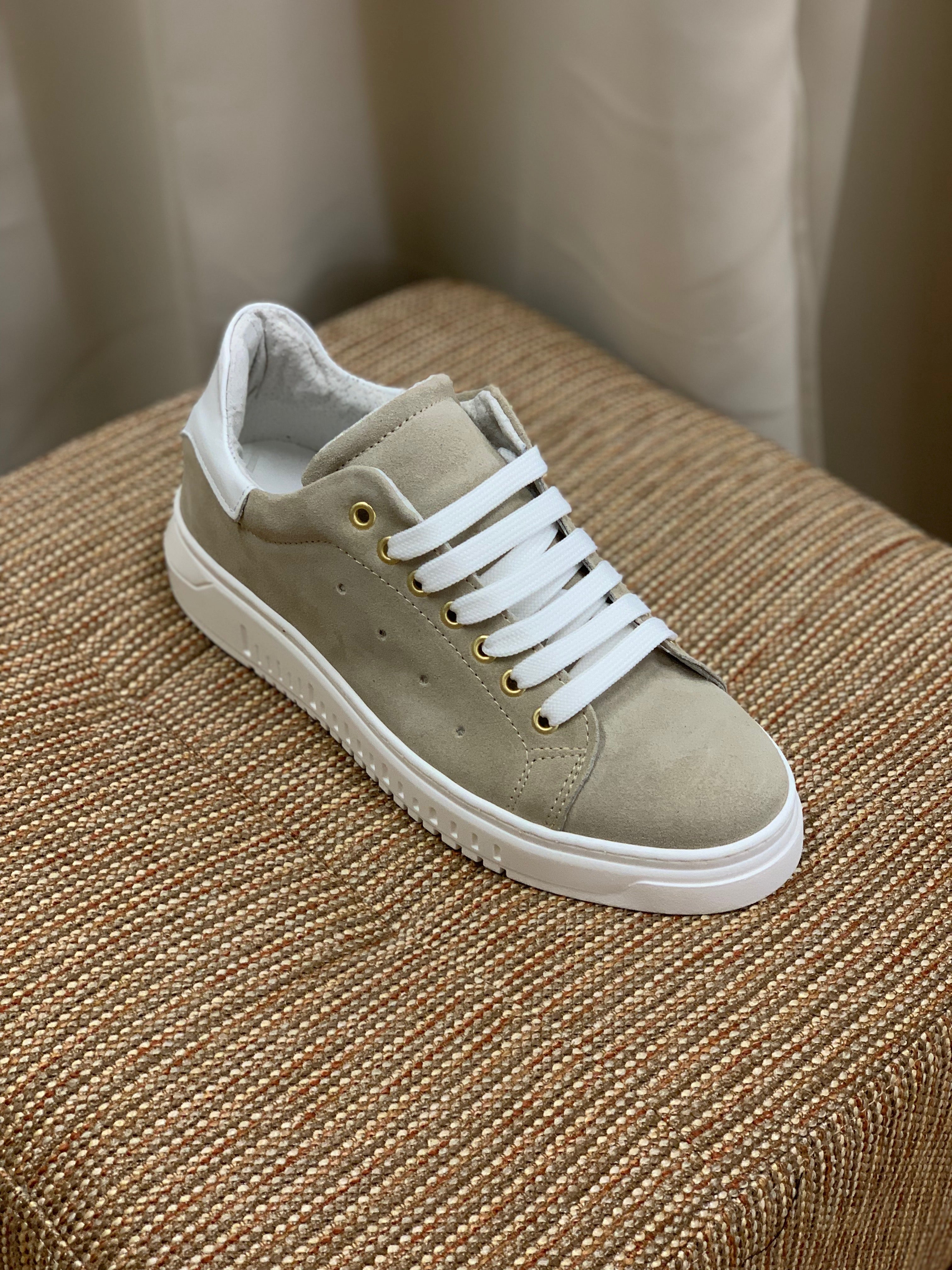 Sneakers di colore Beige. Scarpa in vera pelle. Fondo in gomma super comfort