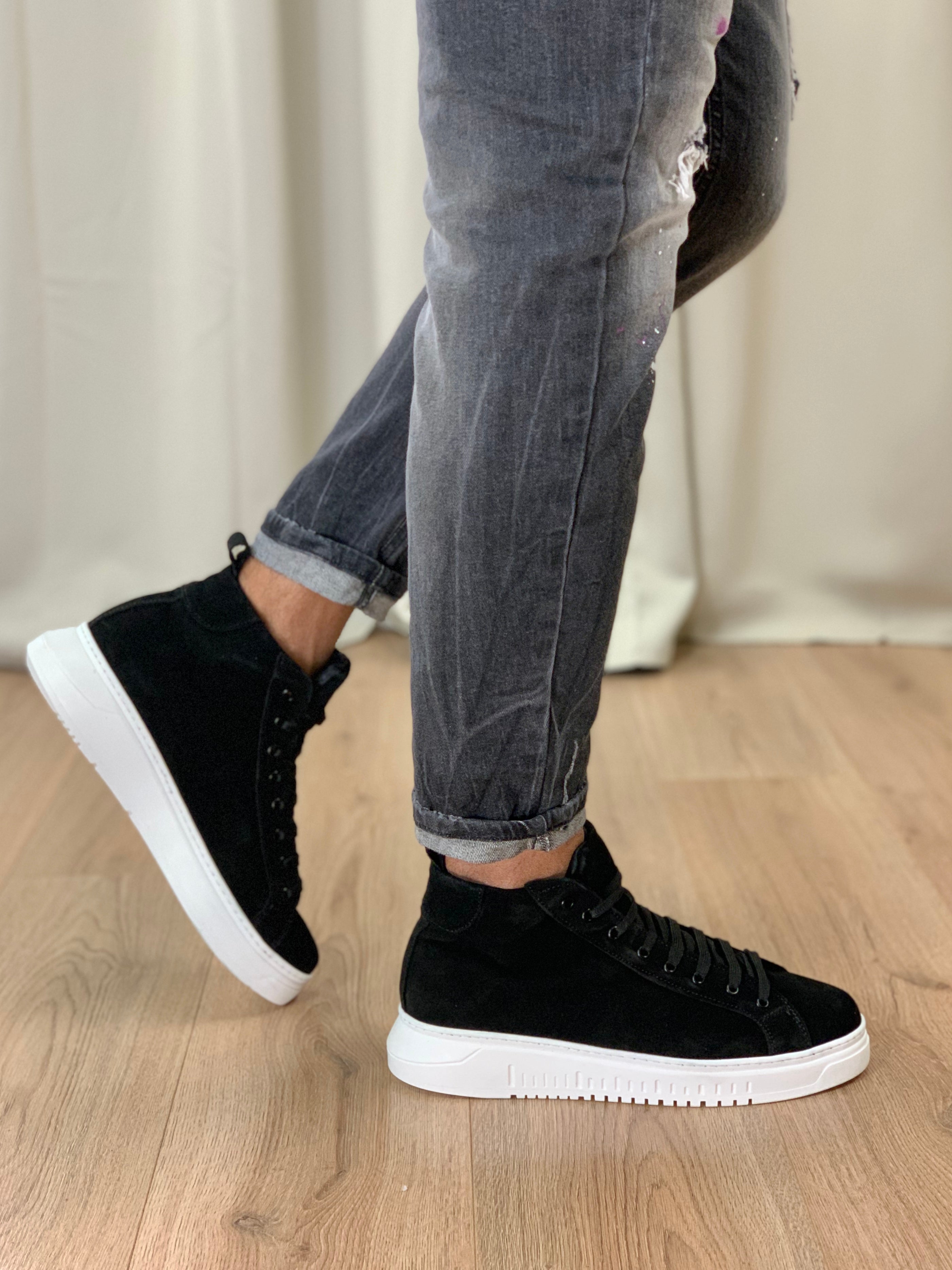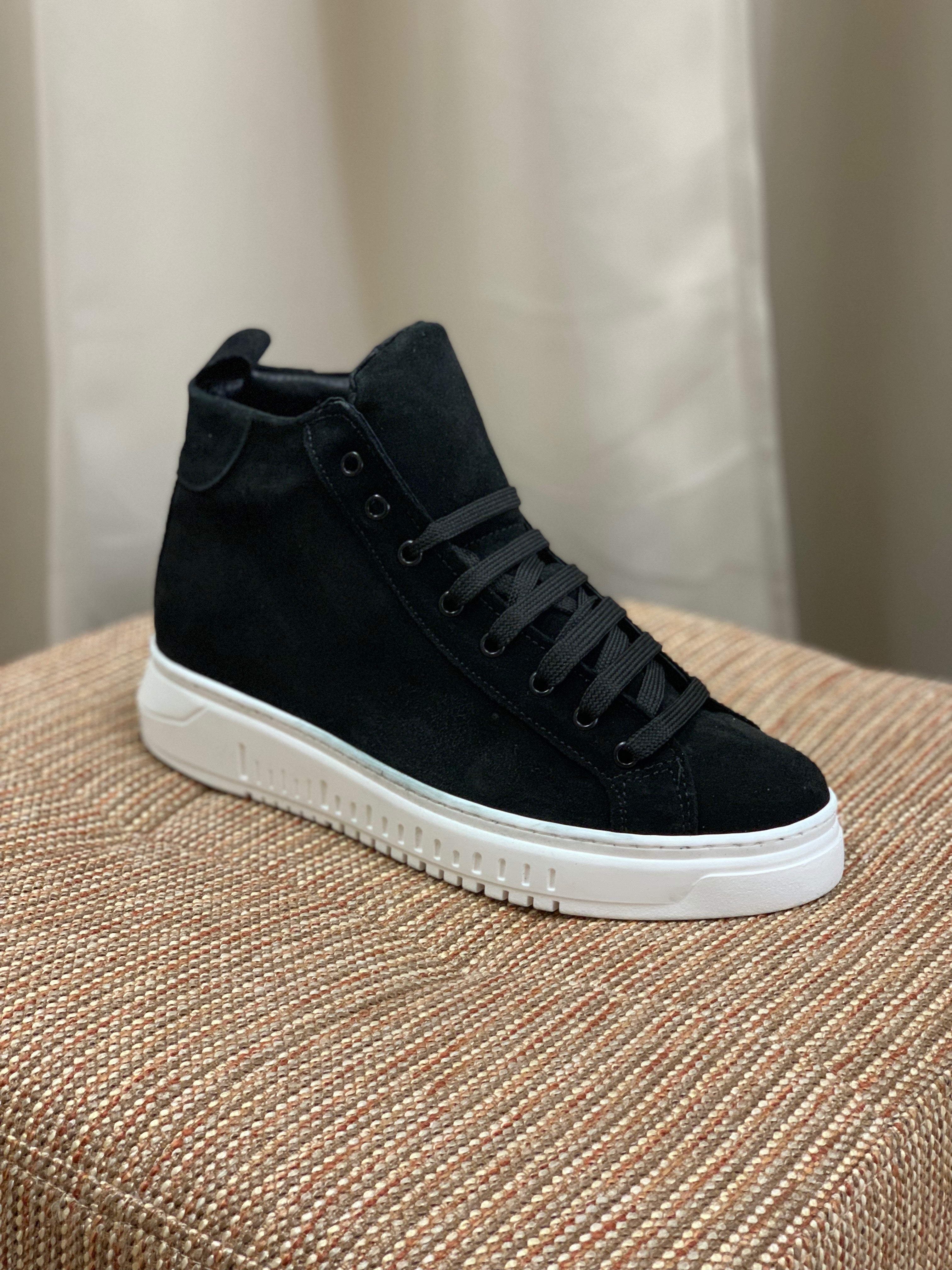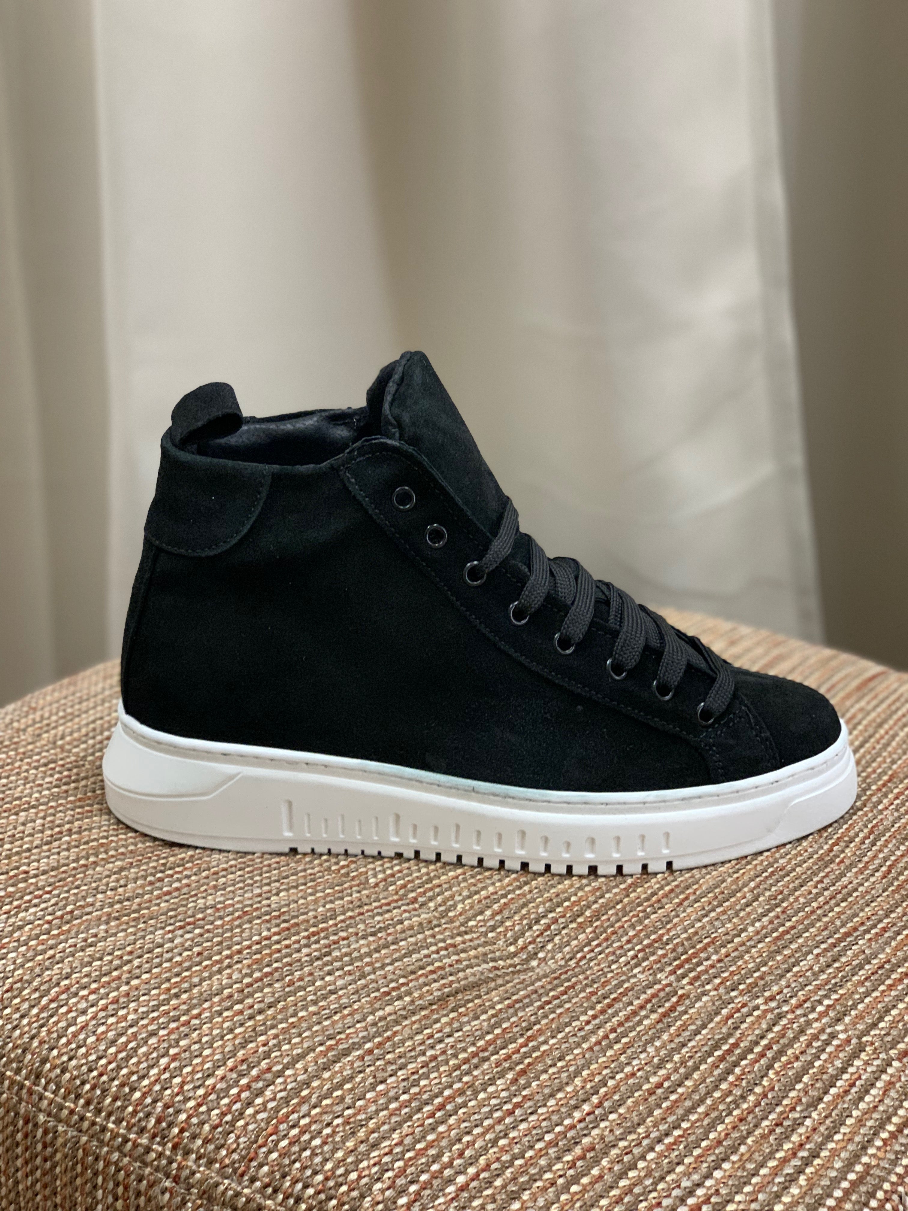 Sneakers di colore Nero. Scarpa in vera pelle. Fondo in gomma super comfort