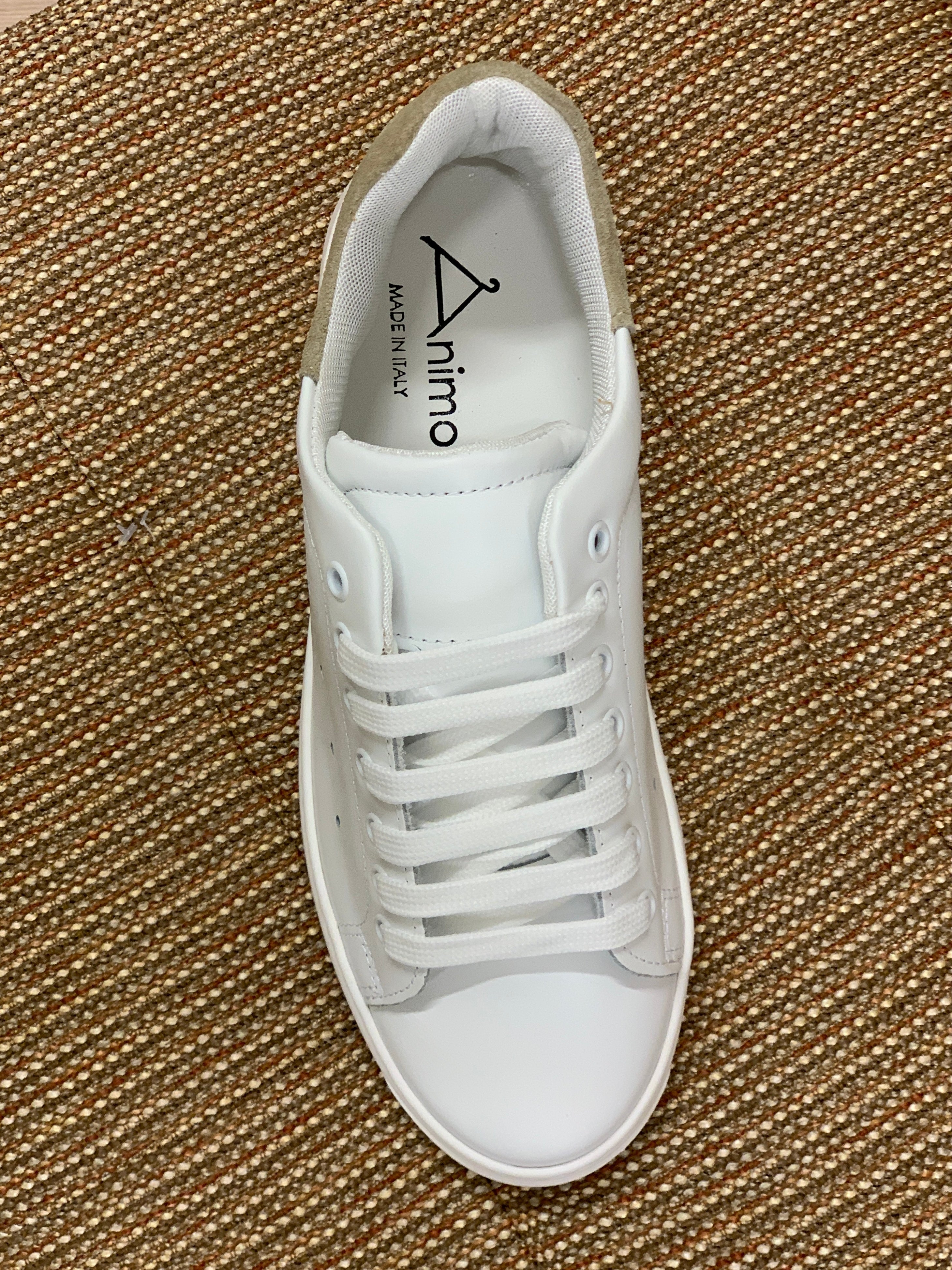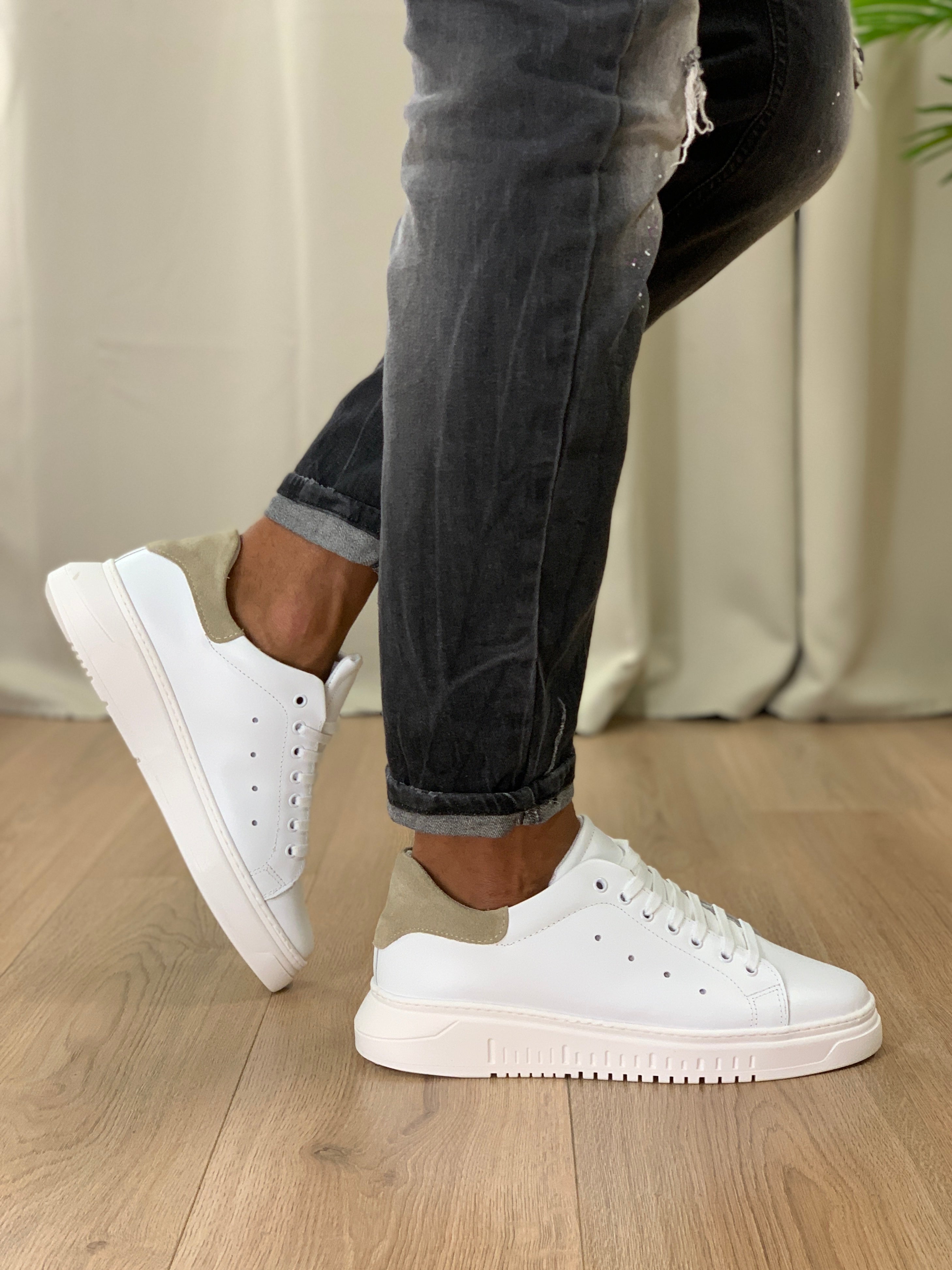 Sneakers Fondo Marines Tallone in Camoscio Beige col. Bianco