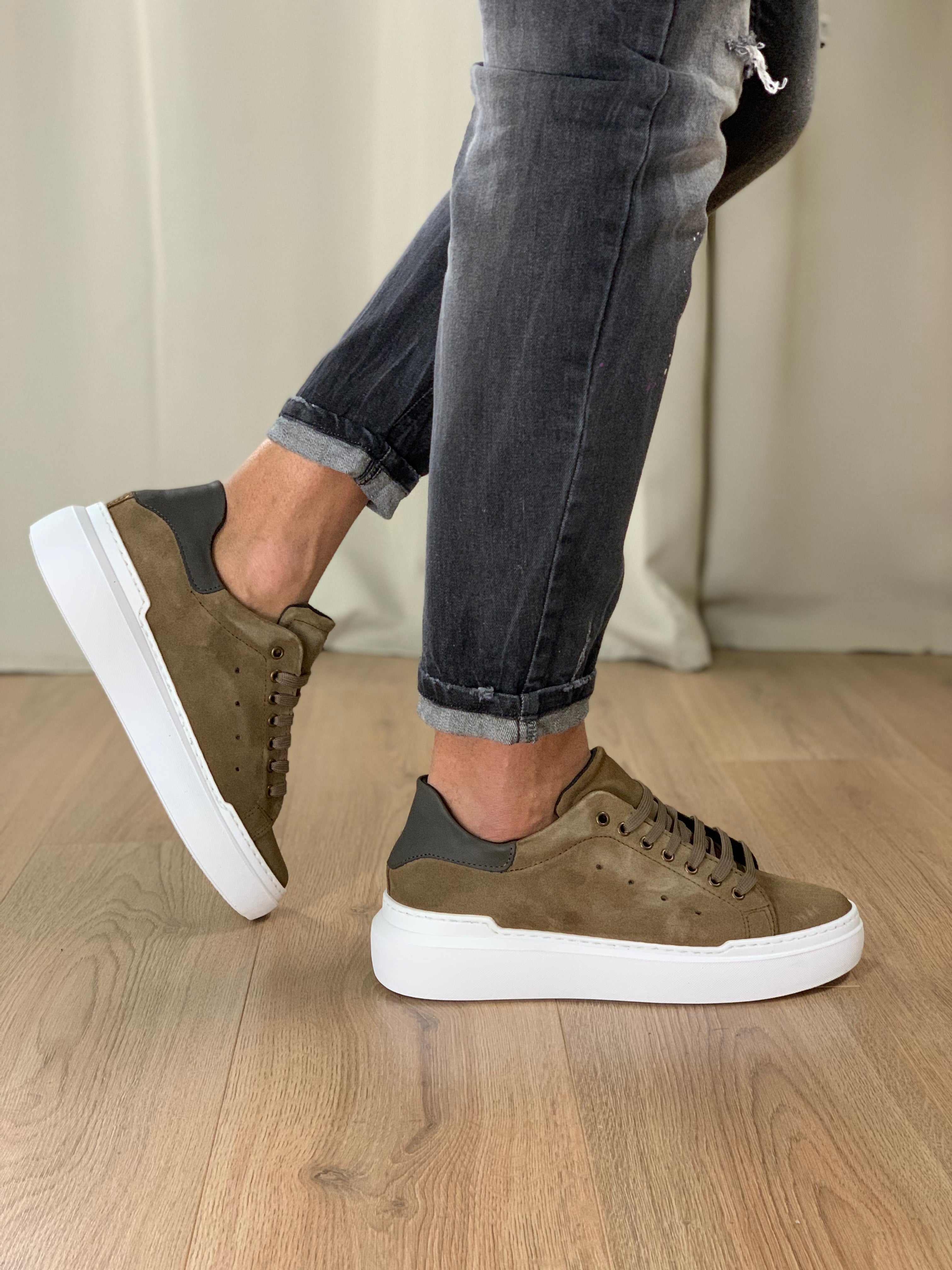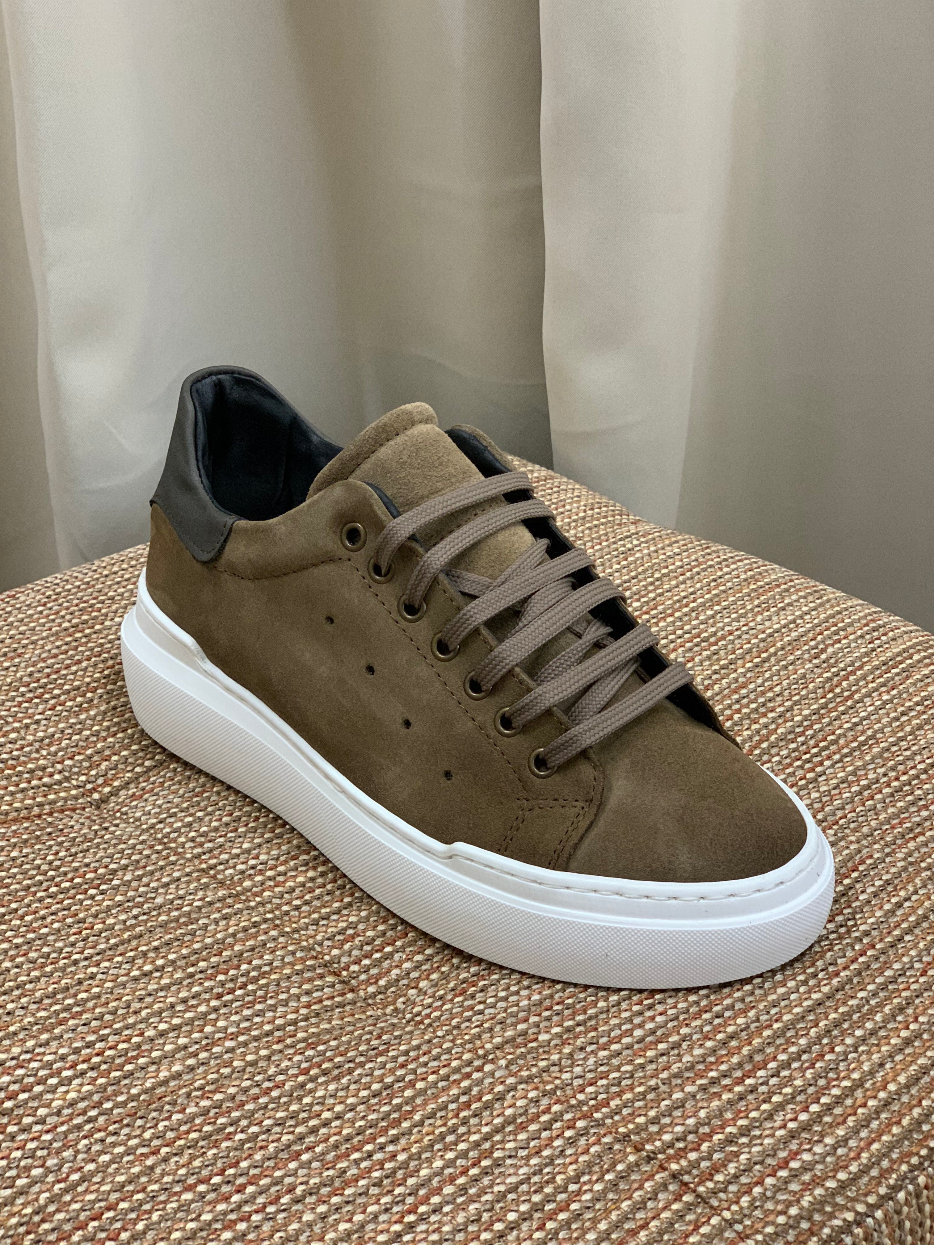 Sneakers di colore Testa di Moro. Scarpa in vera pelle. Fondo in gomma super comfort