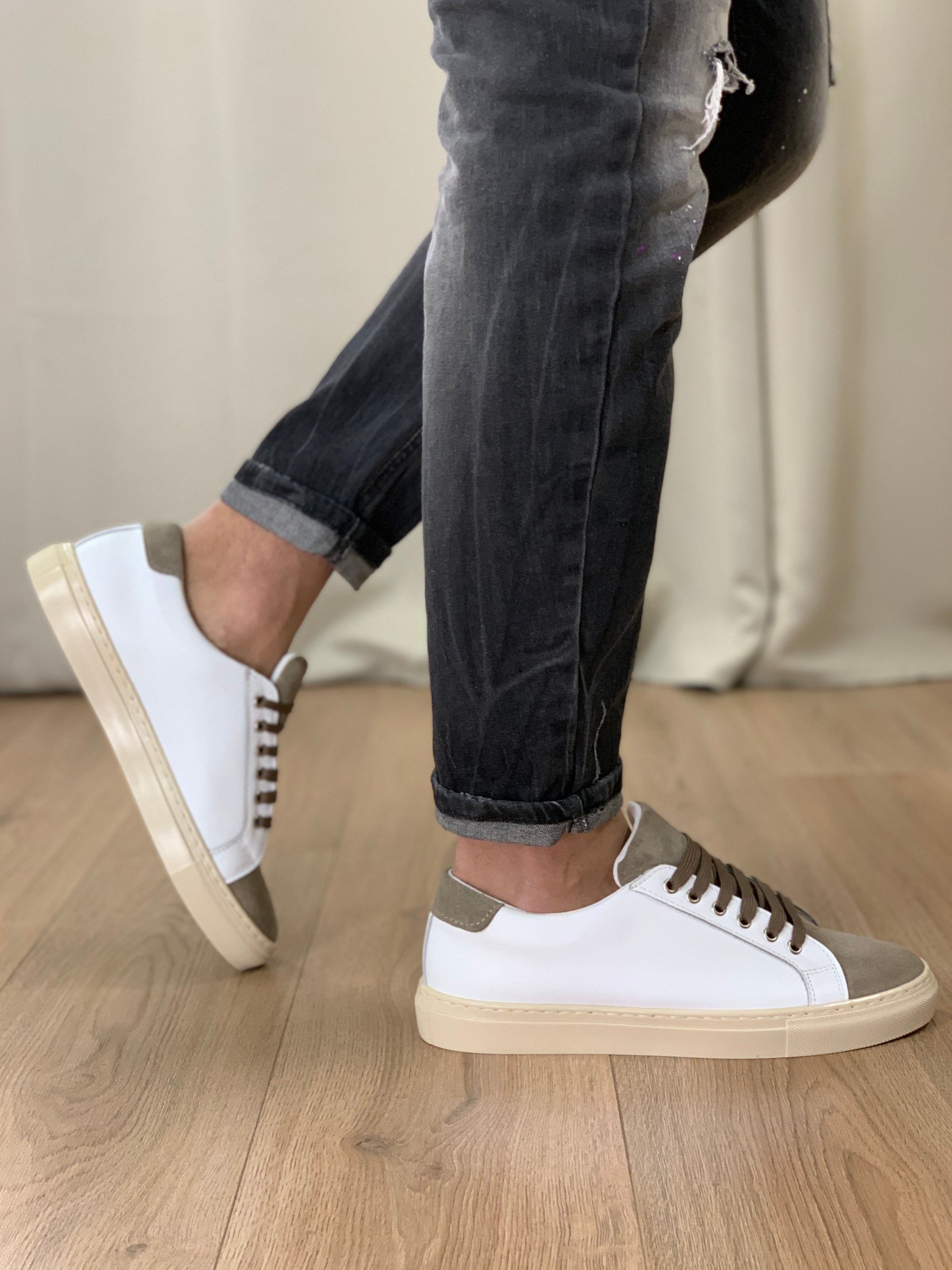 Sneakers Lucas misto Pelle e Camoscio col. Bianco