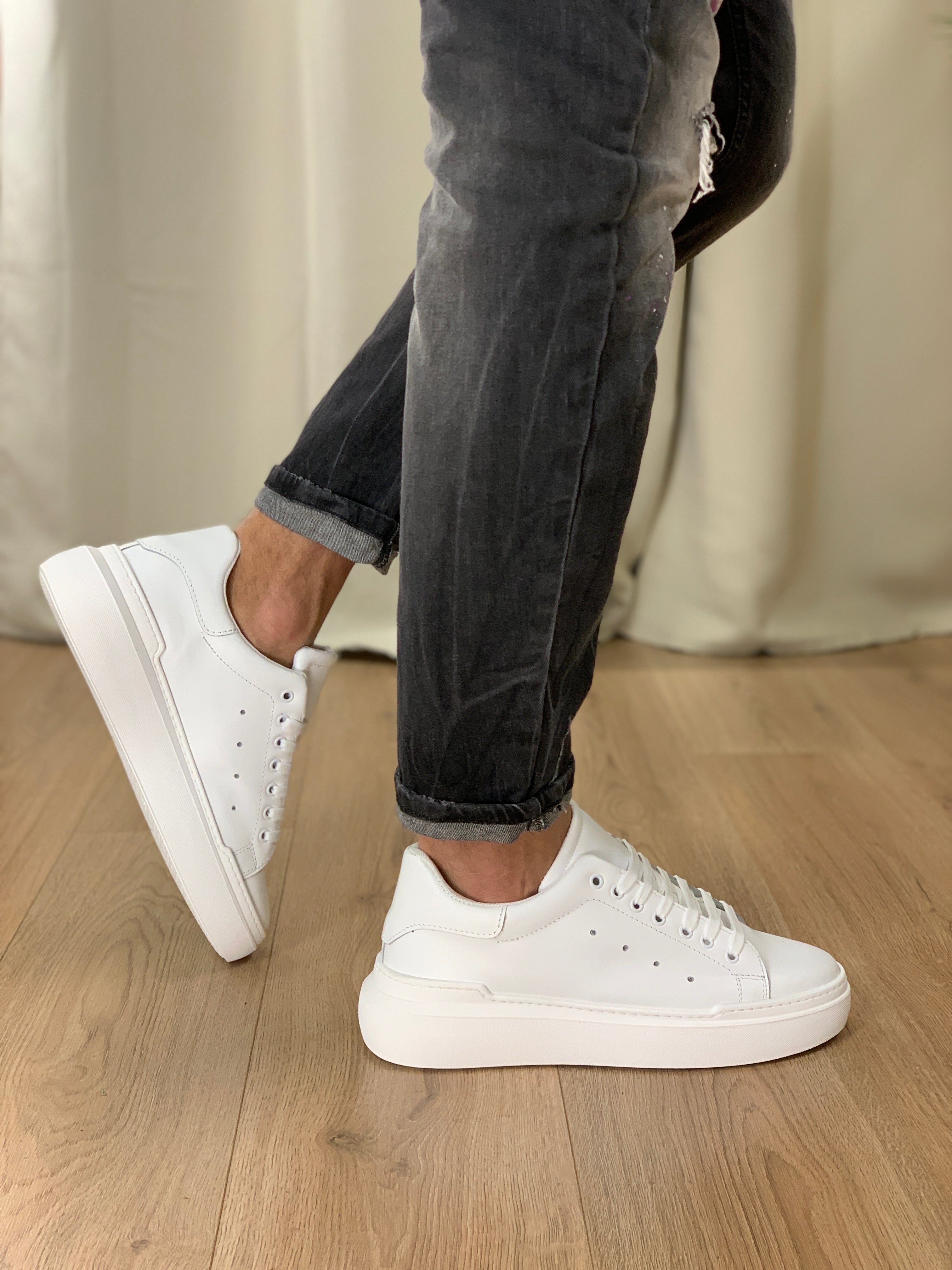 Sneakers Razor Total White in pelle col. Bianco