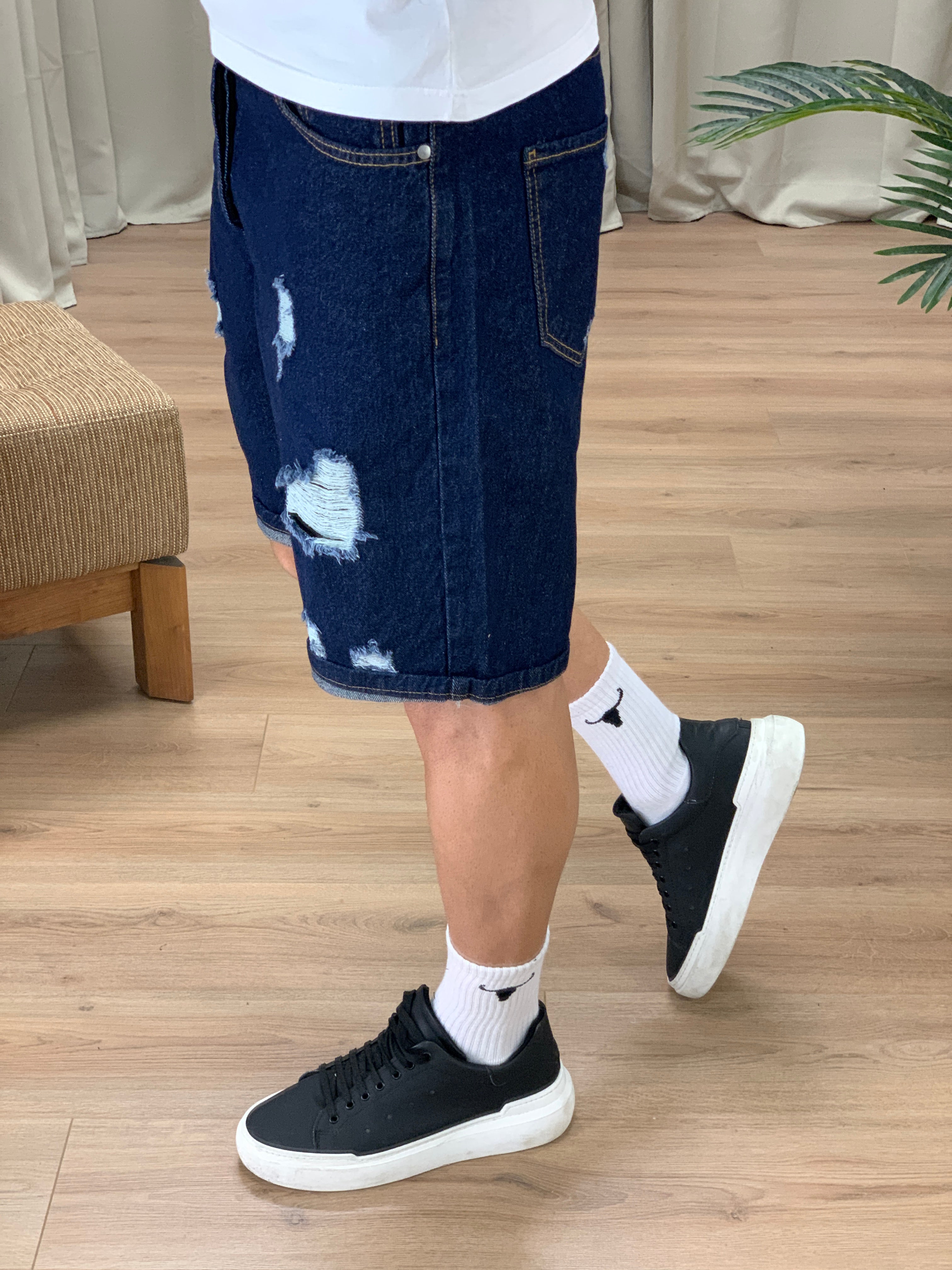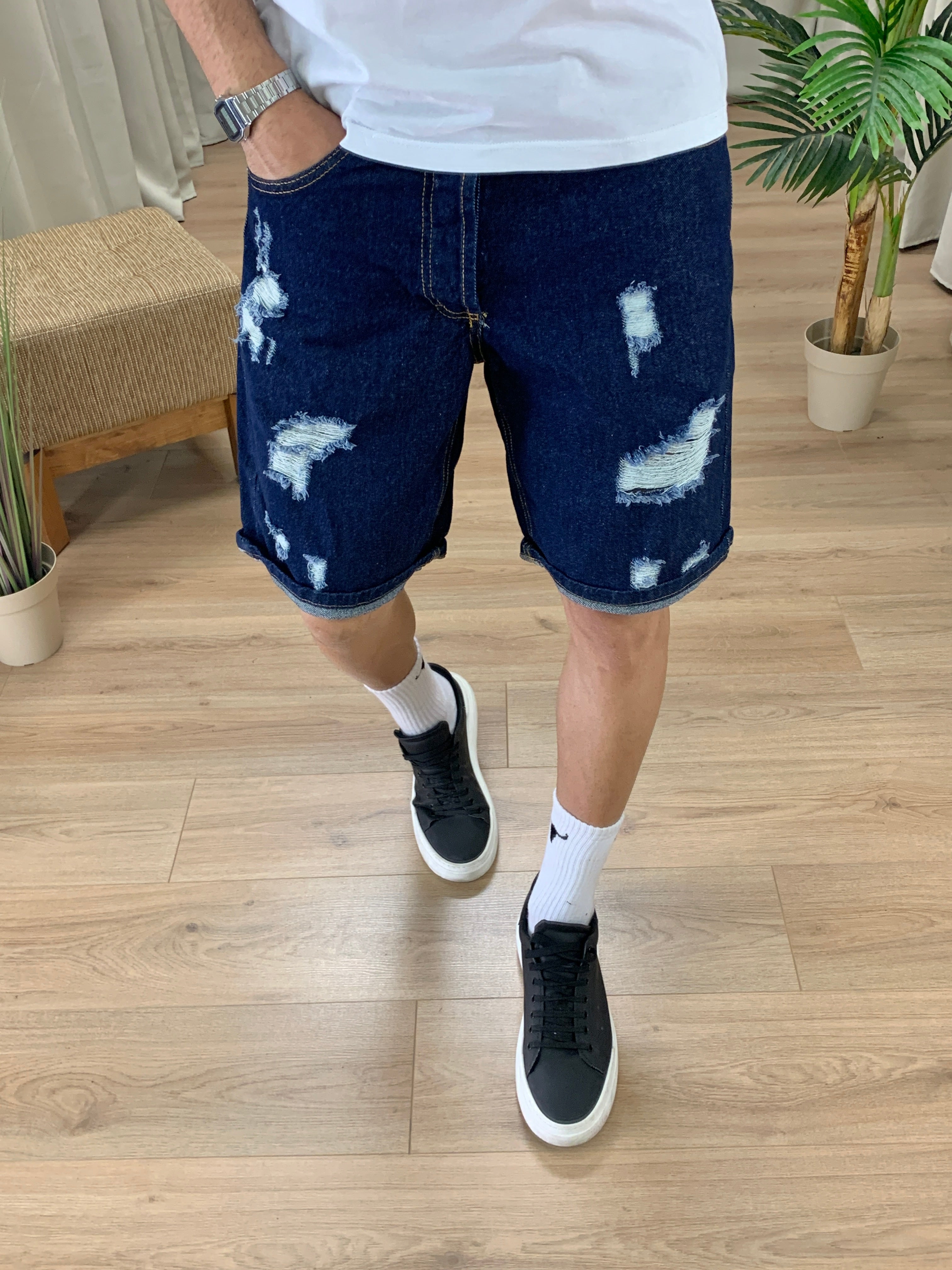 Bermuda in Jeans con Rotture Overfit col. Denim