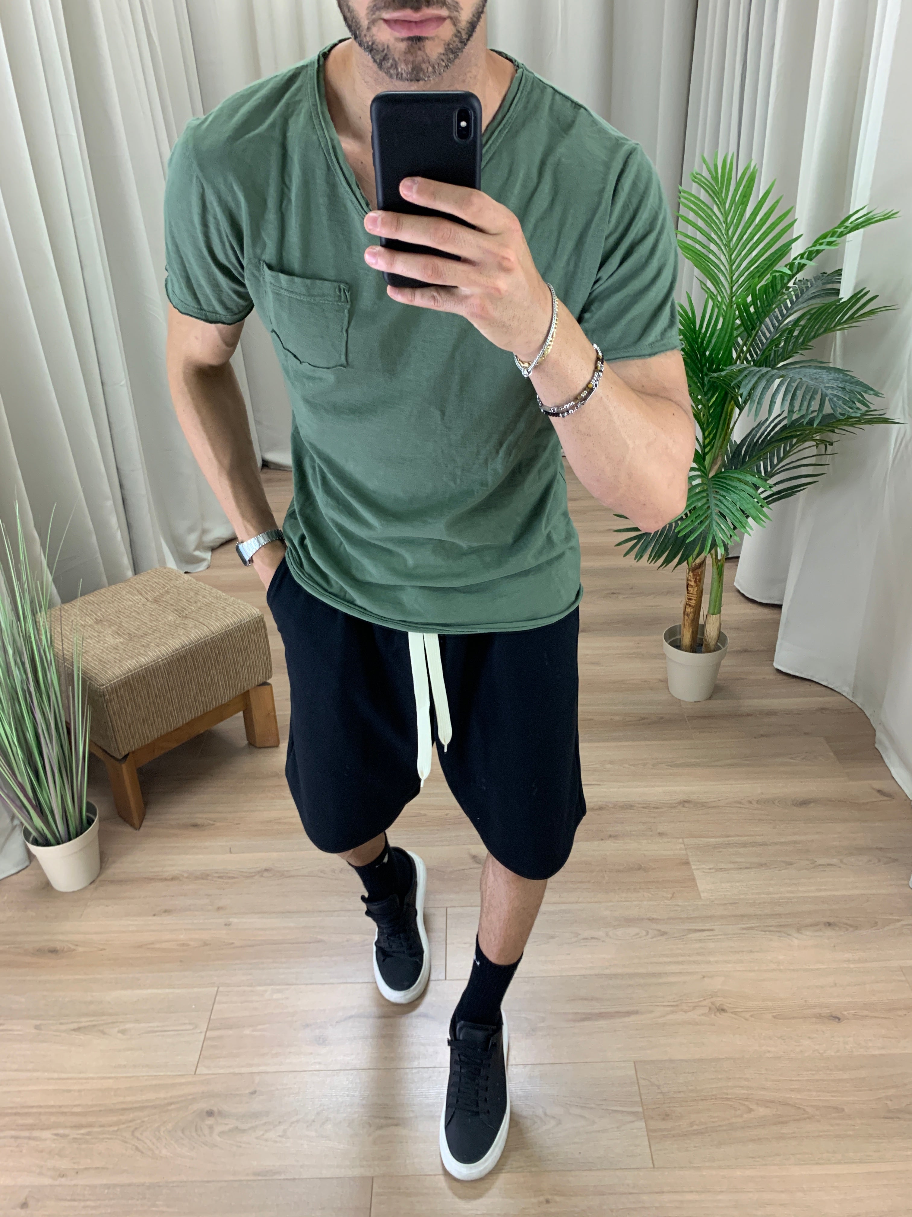 Bermuda Interlock Garzato con Elastico in Vita col. Nero