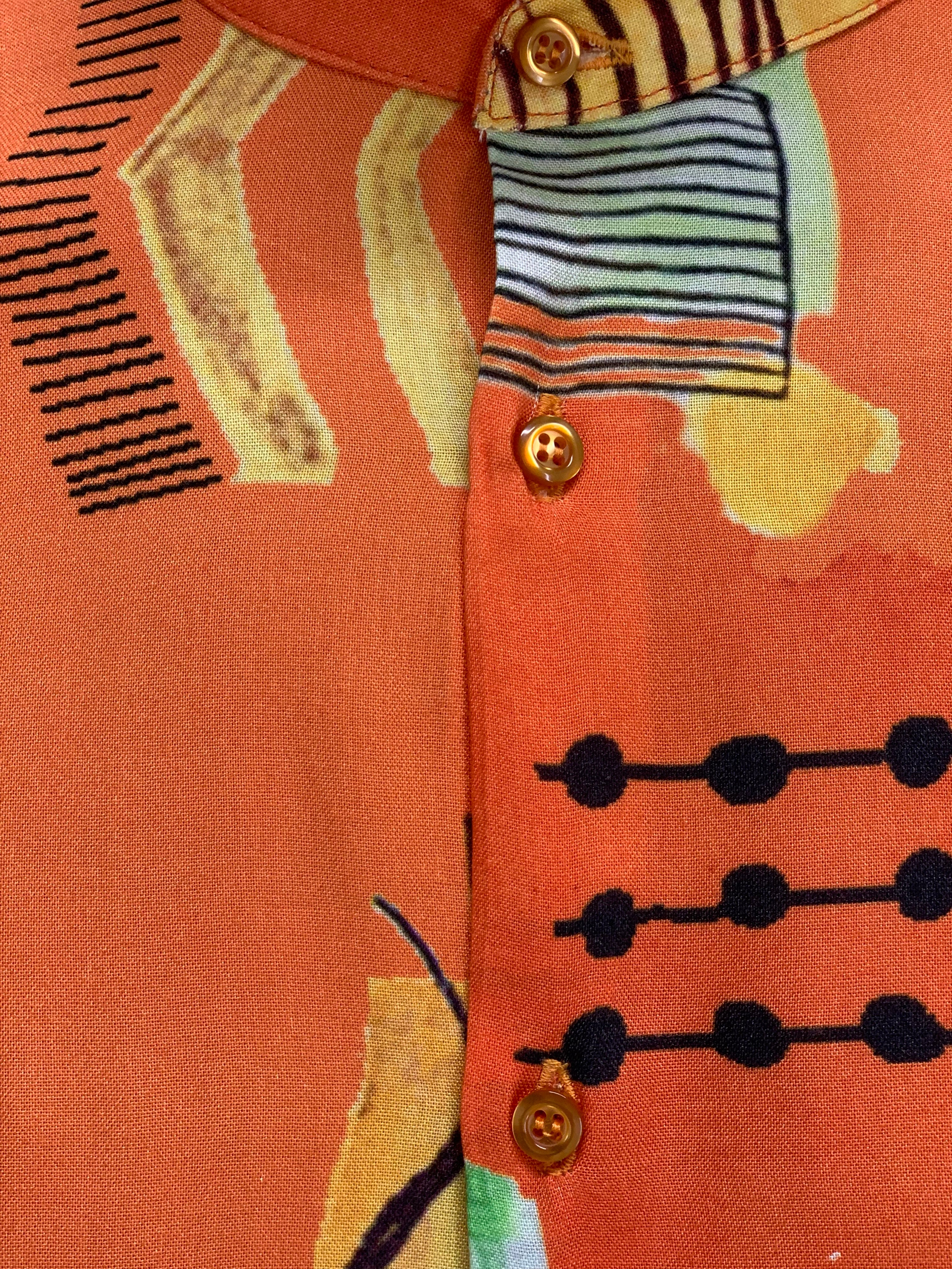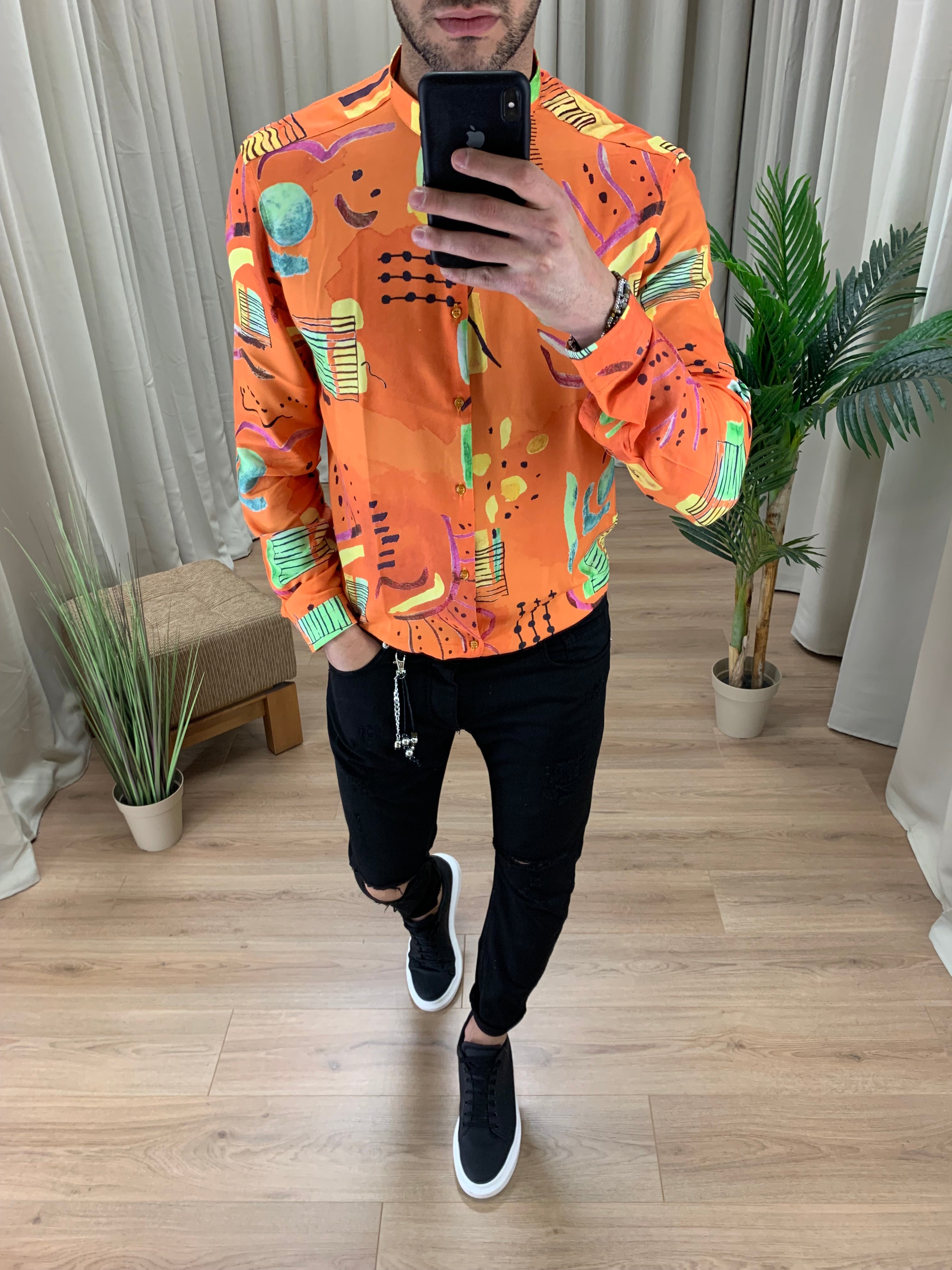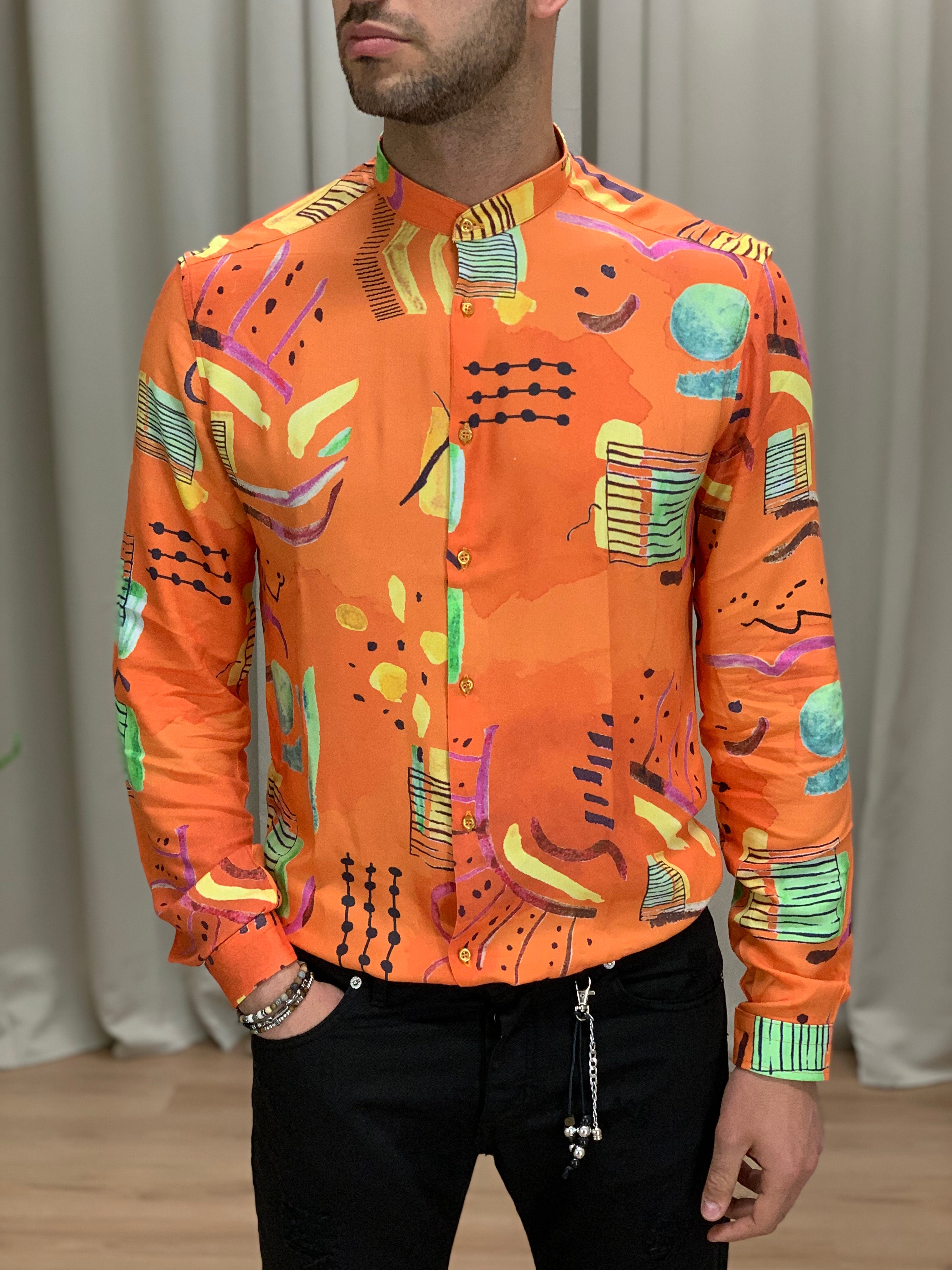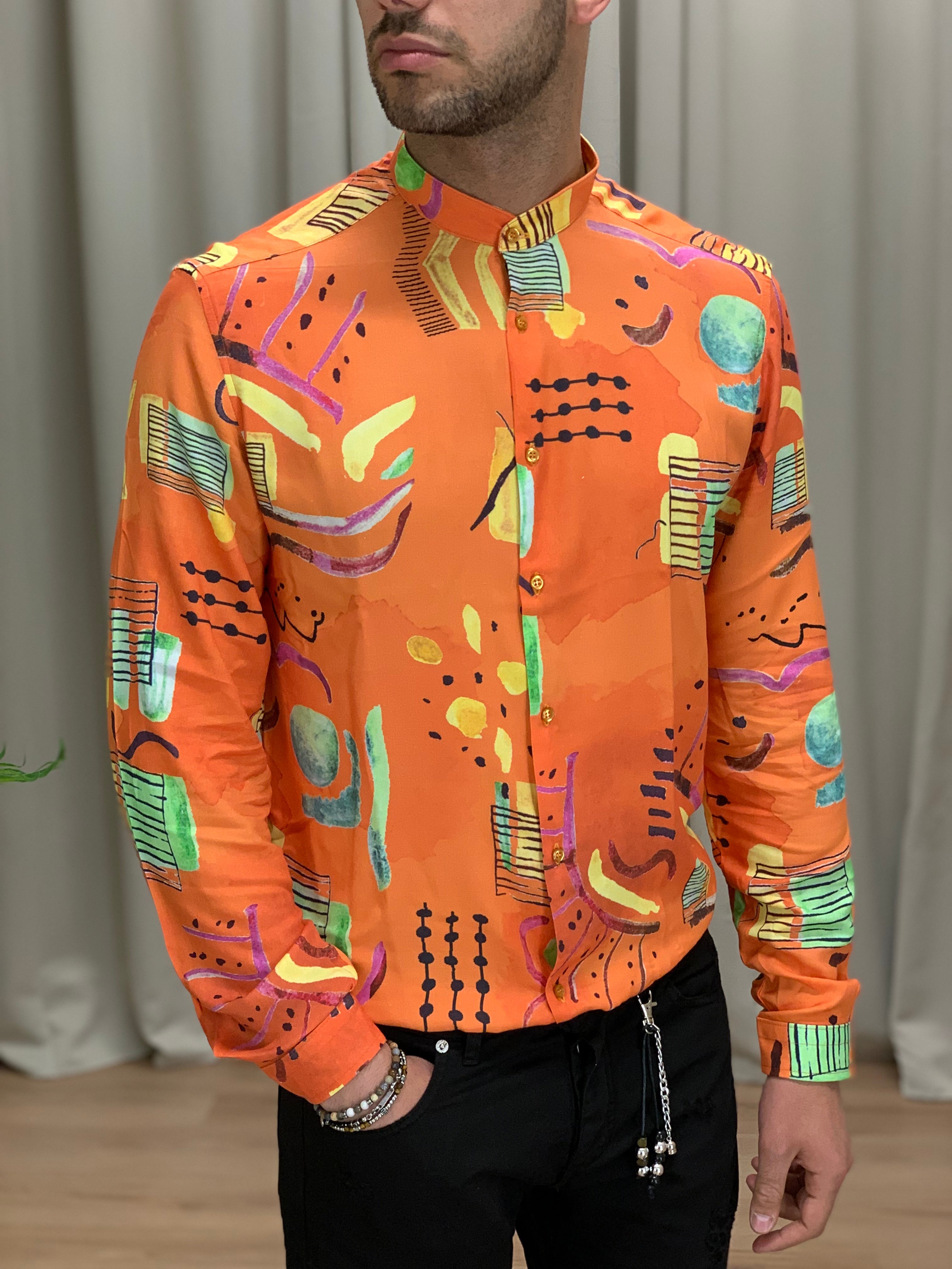 Camicia Ibiza Orange in viscosa col. Fantasia