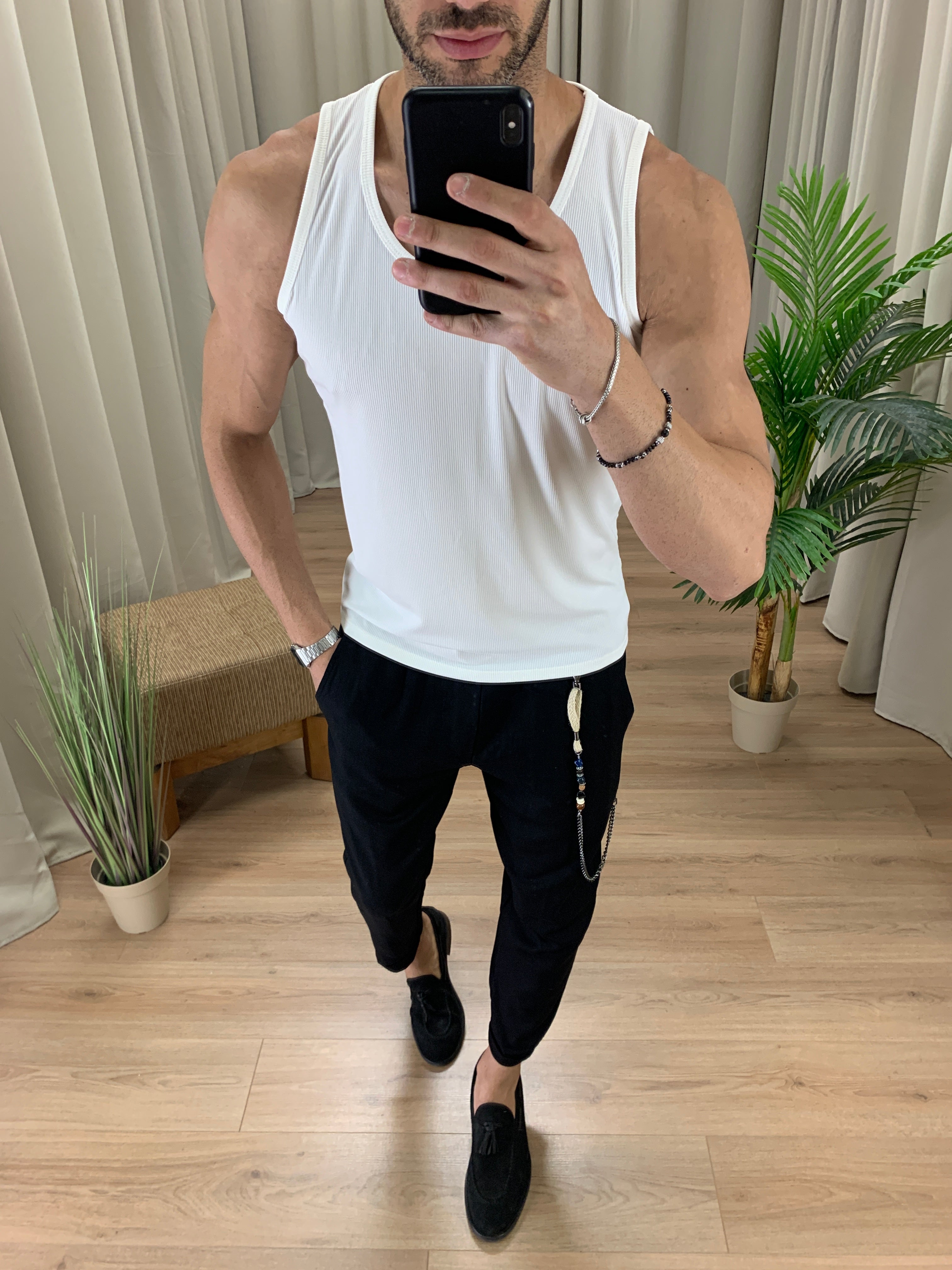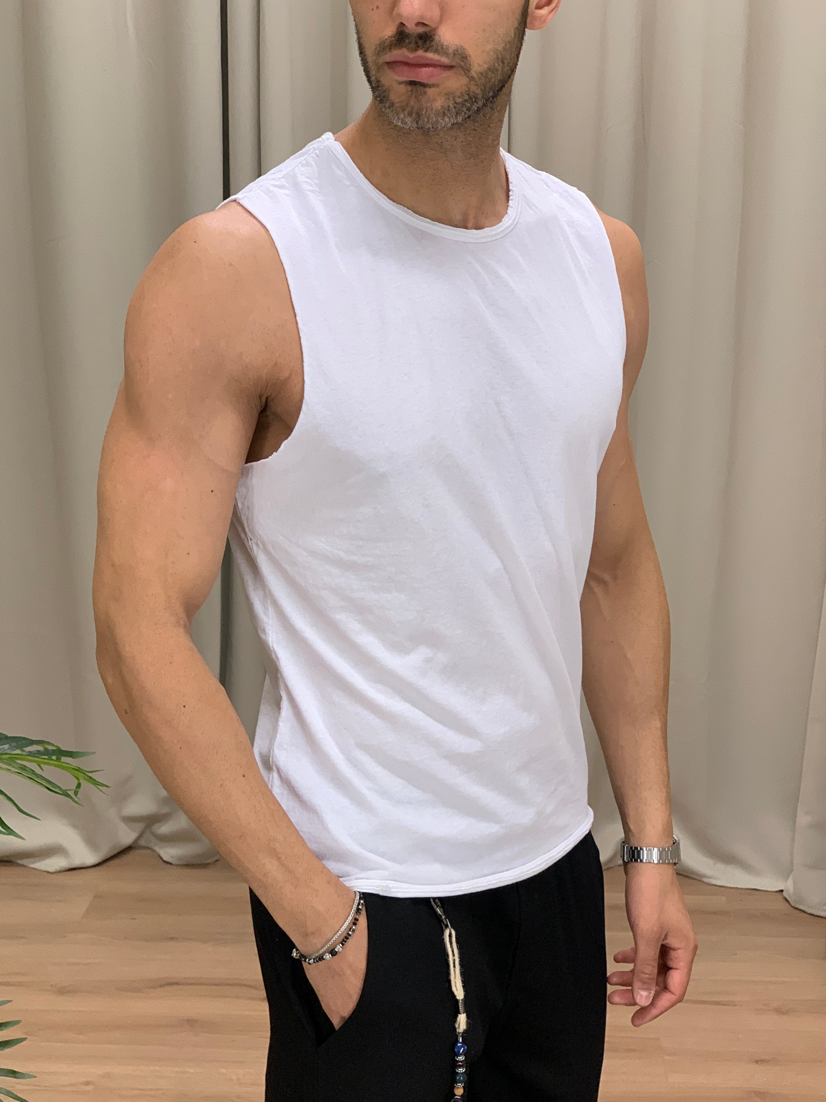 Canotta Vogatore a taglio vivo in Cotone col. Bianco