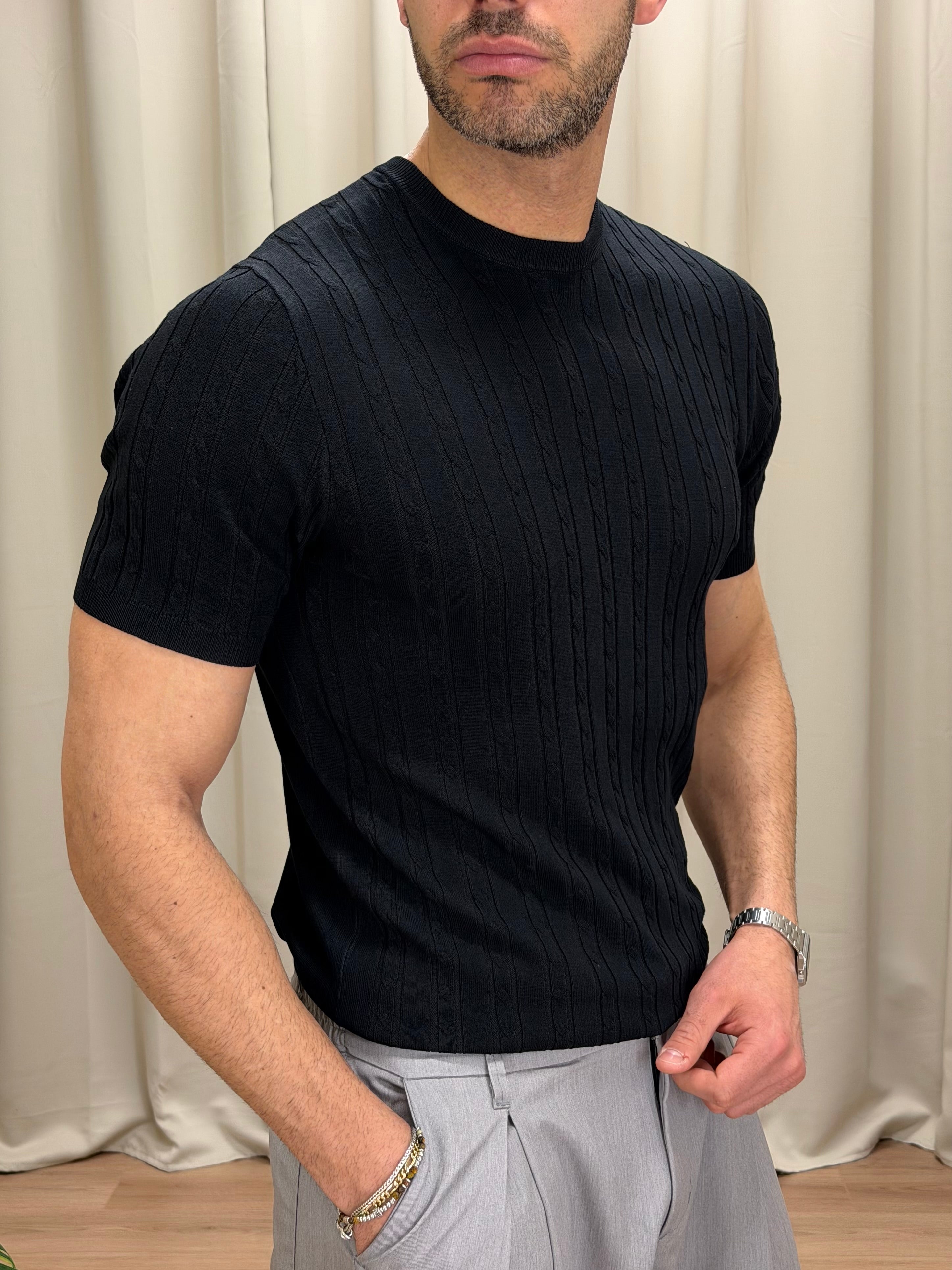 Il modello è alto 189 cm e pesa 89 Kg. Indossa la taglia XL
