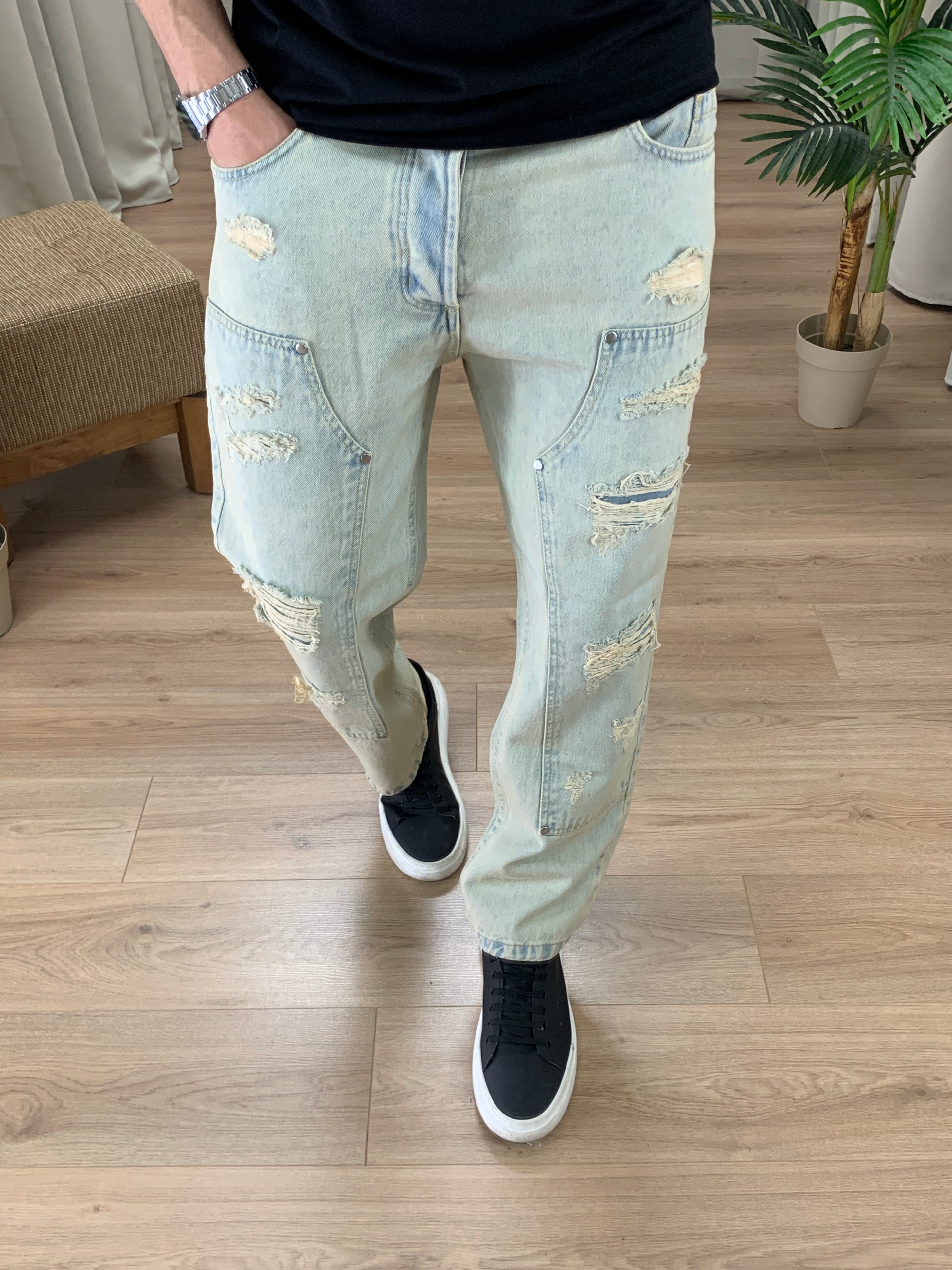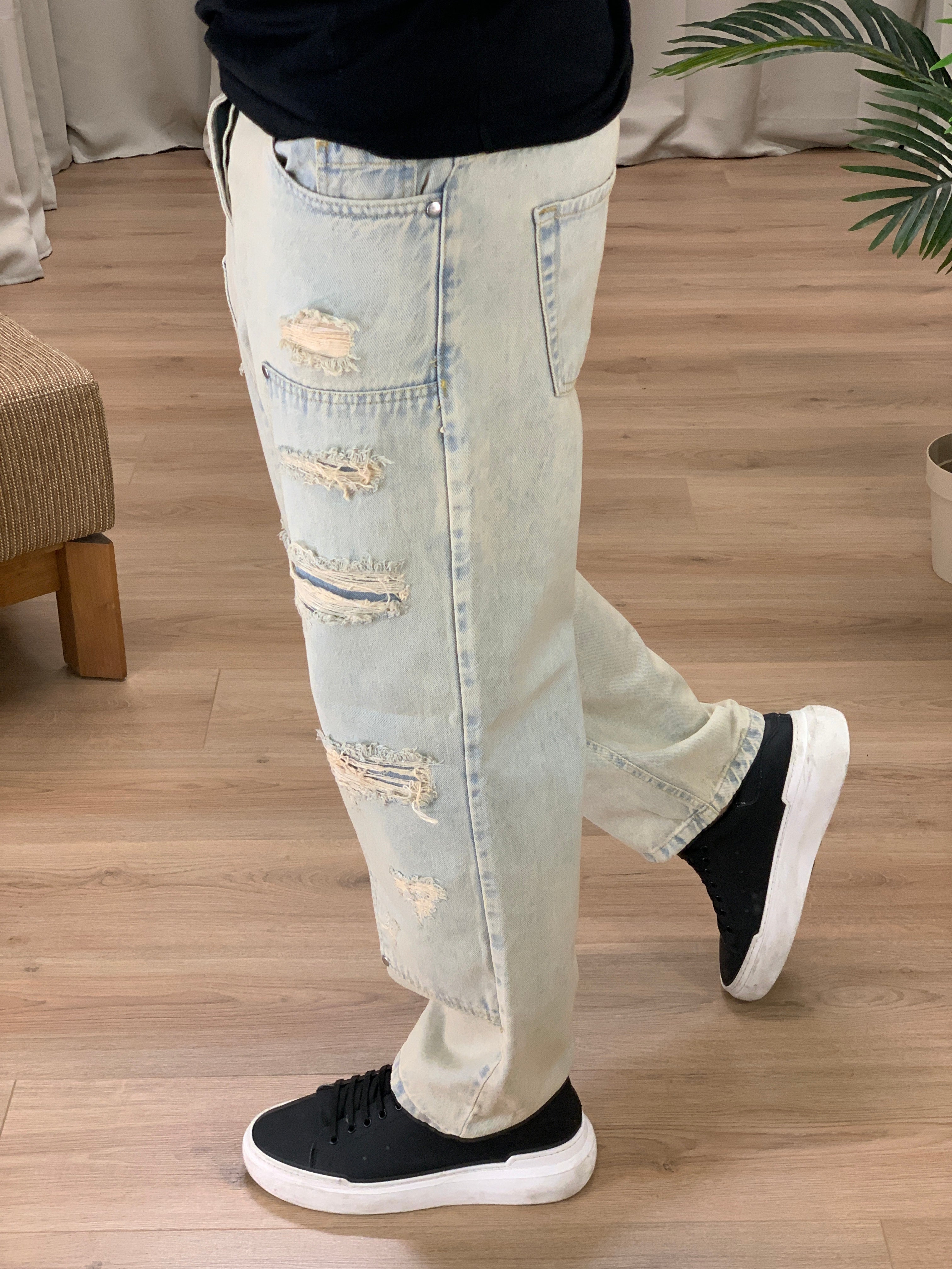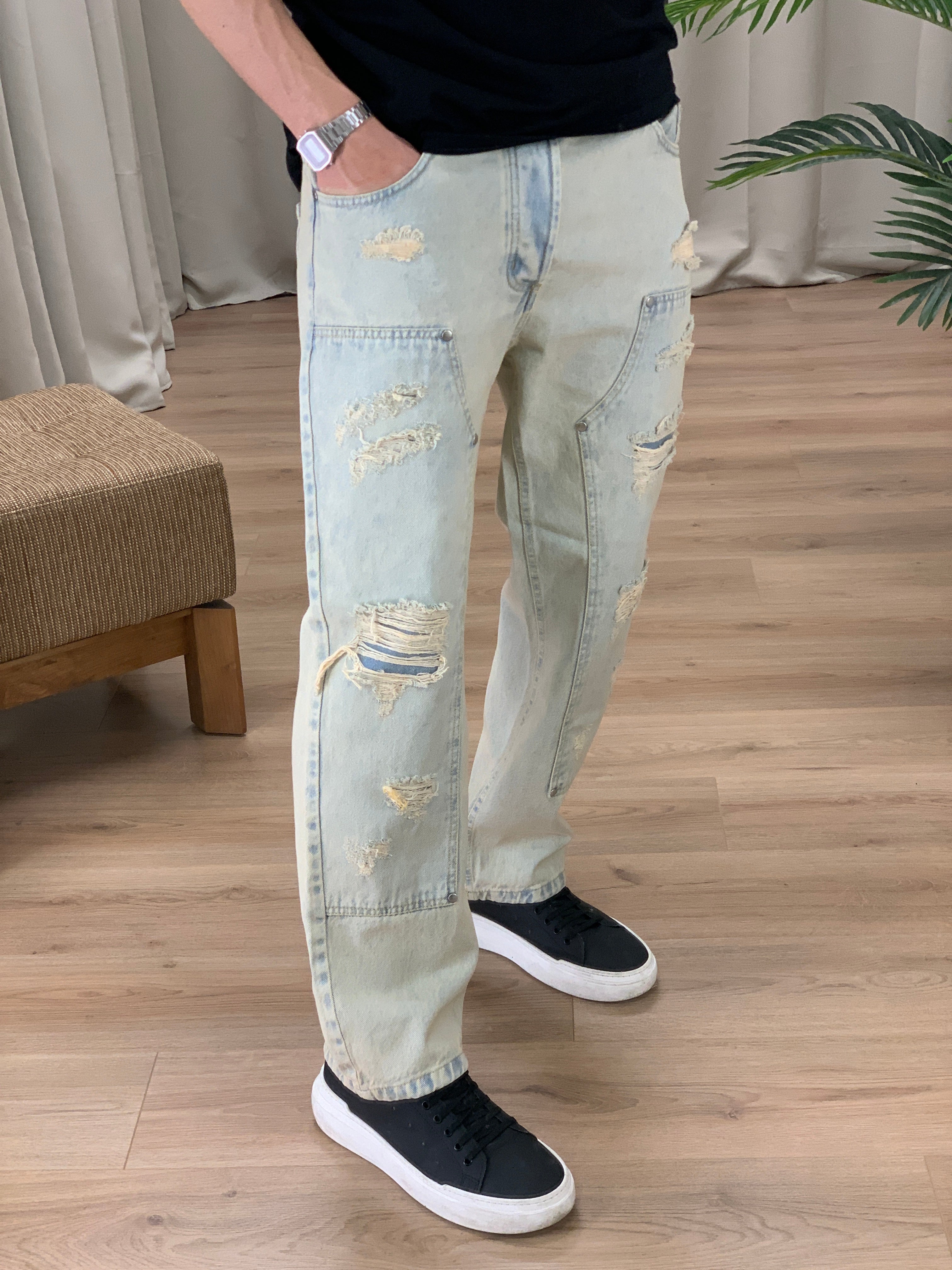 Jeans Corsaro Sabbiato con Rotture col. Denim